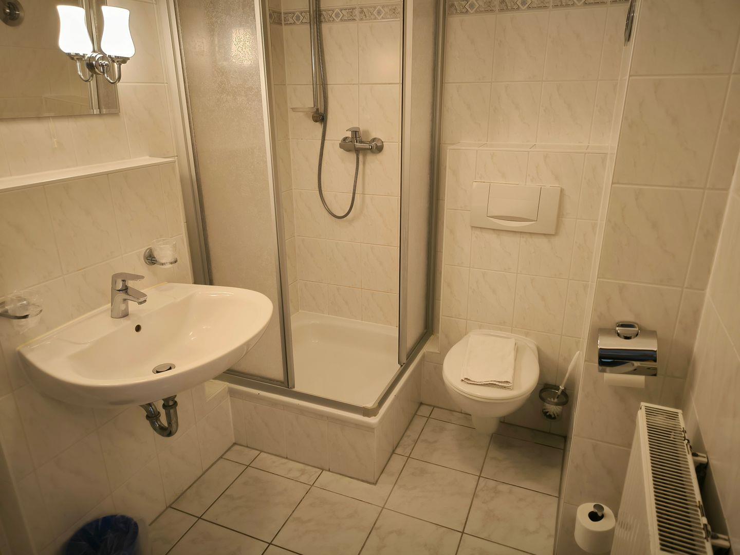 Bad mit Dusche, WC und Föhn