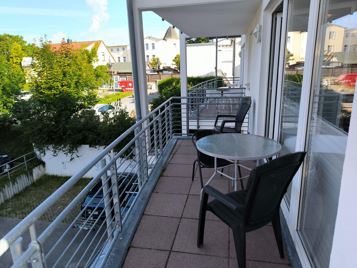 Moderne 2-Raum-Wohnung mit Balkon nahe Strand in Göhren, ideal für bis zu 4 Personen.