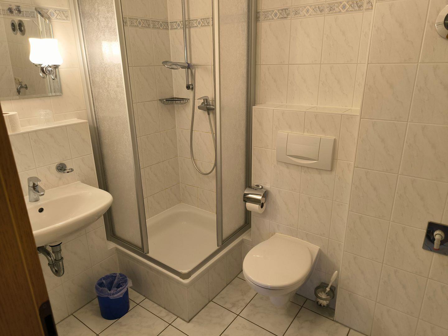 Bad mit Dusche, WC und Föhn