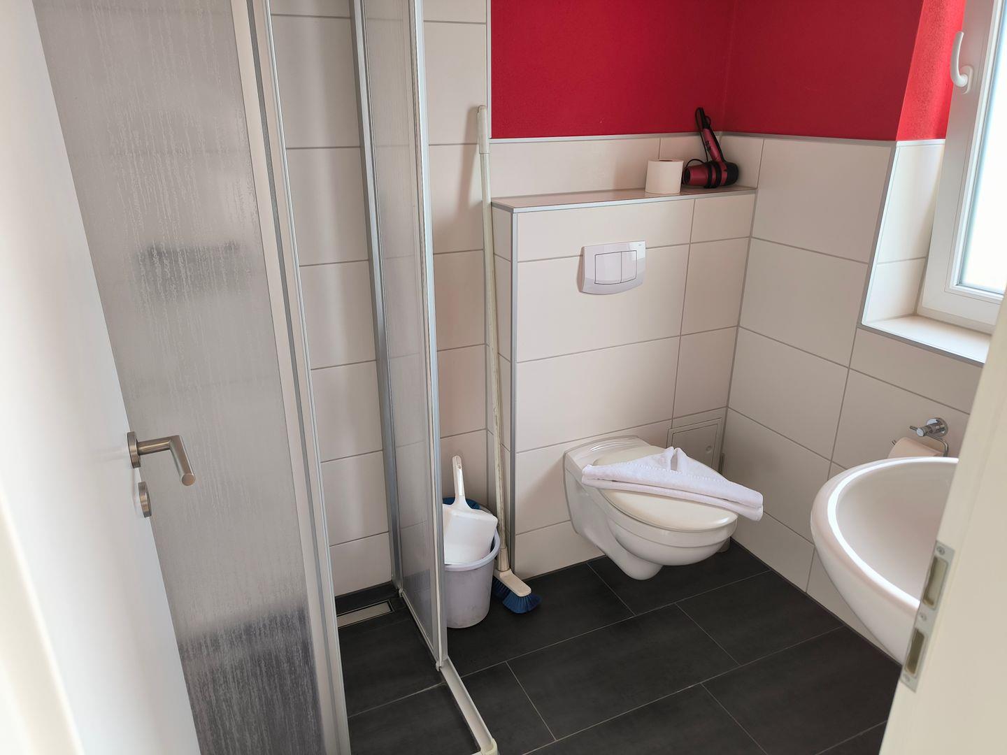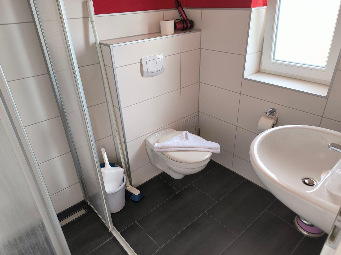 Bad mit Fenster, Dusche und WC