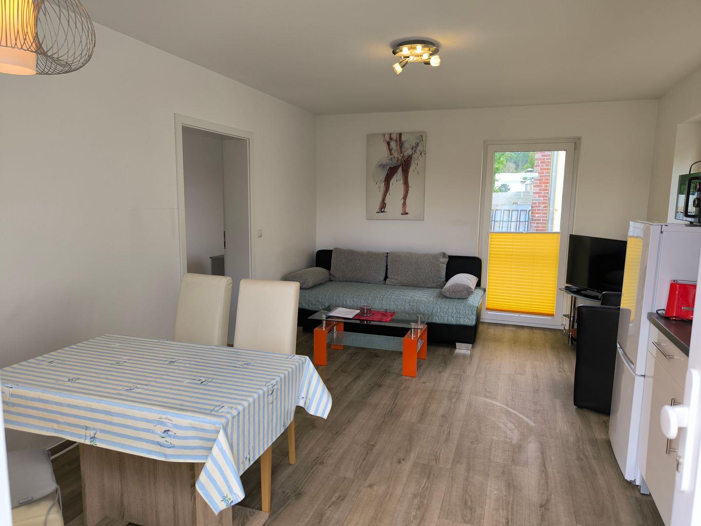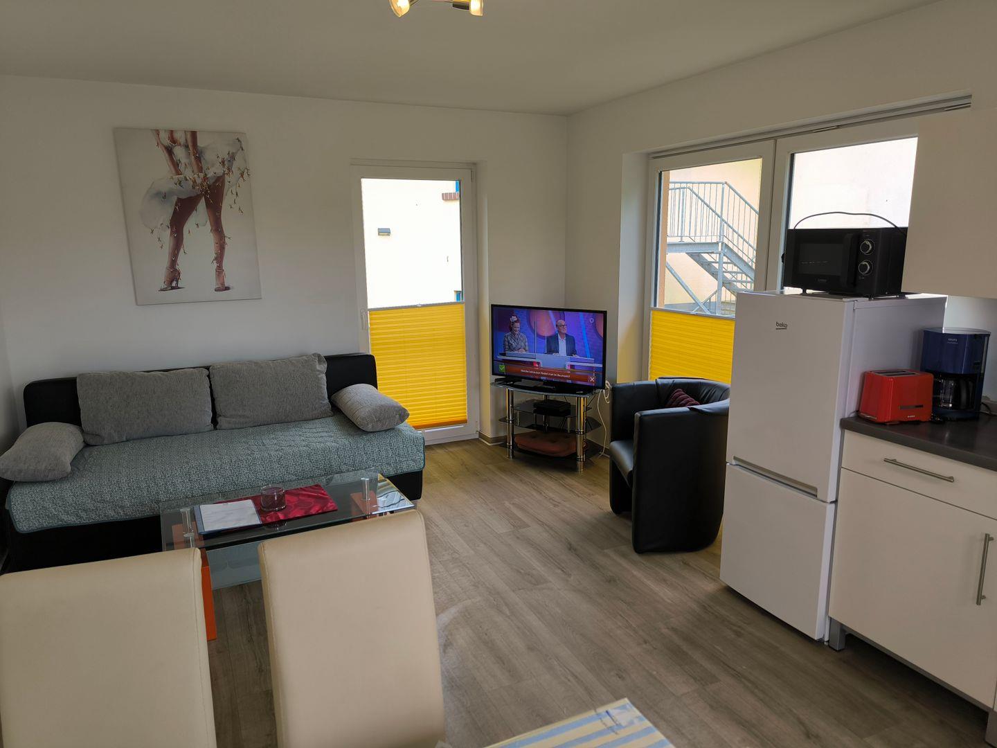 Moderne 1-Raum-Wohnung in ruhiger Lage Göhrens, nahe Nord- und Südstrand, mit Balkon und kostenfreiem WLAN.
