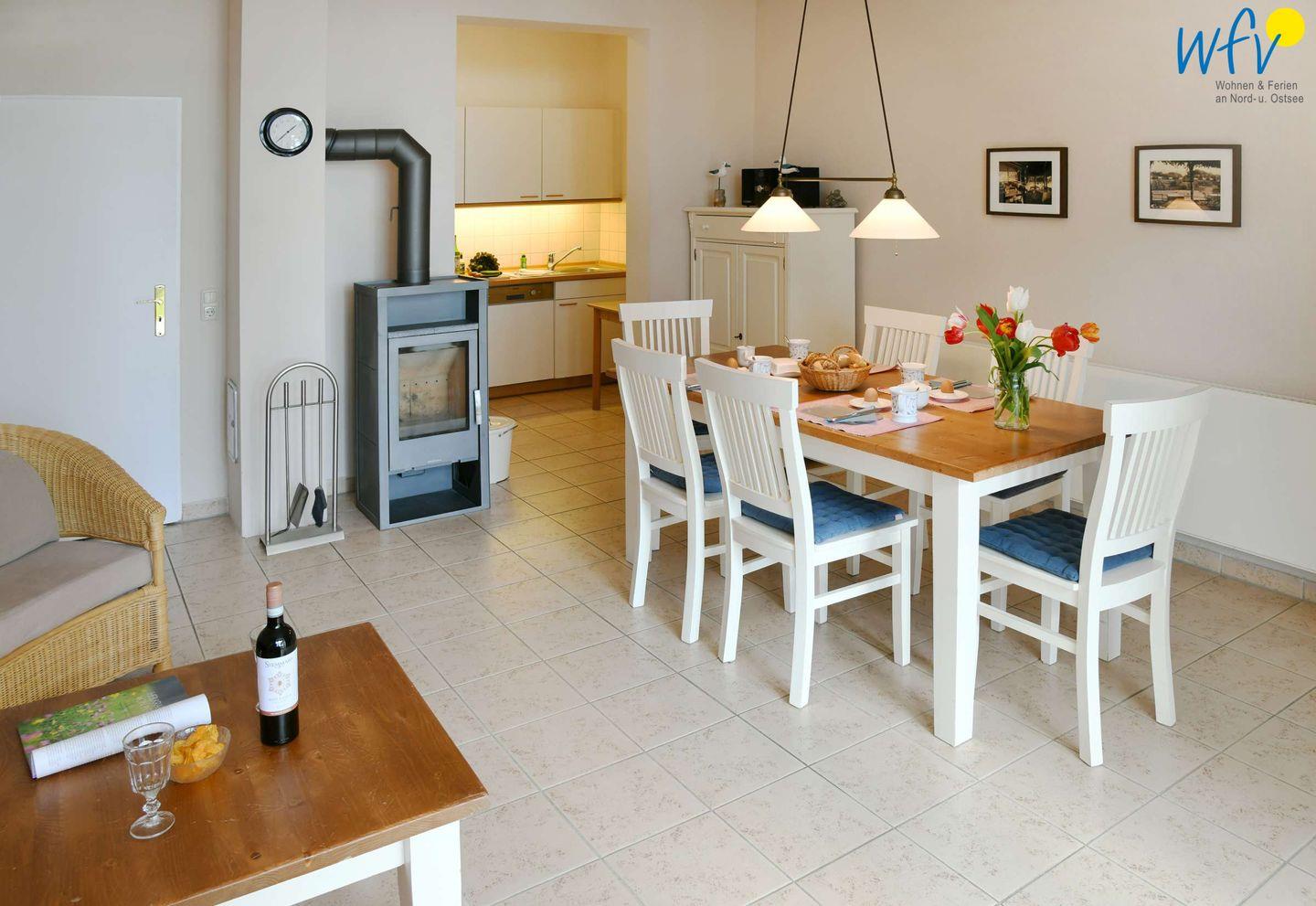 Große Fenster verleihen der Ferienwohnung eine sehr freundliche und gemütliche Atmosphäre, durch die Sie sich auf Anhieb wohlfühlen werden. An kühleren Tagen wird es durch den warmen Kaminofen besonders gemütlich!