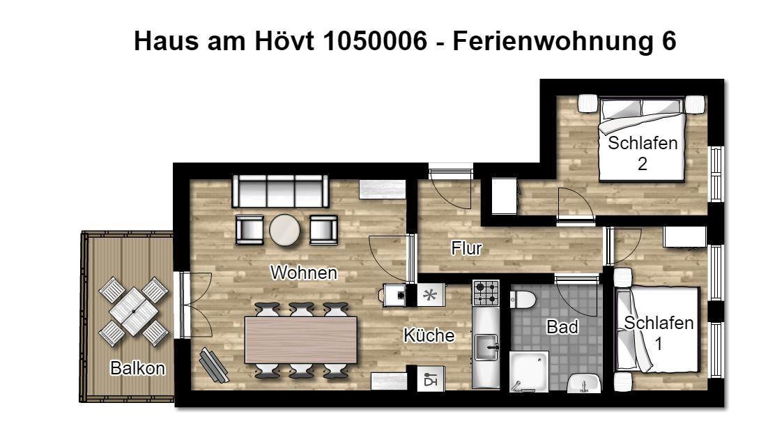 Entdecken Sie die charmante "Ferienwohnung 6" im "Haus am Hövt" in Göhren, nur wenige Minuten von der Ostsee entfernt. Mit 69mm² bietet die modern eingerichtete Wohnung Platz für 4 Personen und ist ideal für Familien oder Paare. Genießen Sie den gemütlichen Wohnbereich mit Kamin, die offene Küche und den überdachten Balkon mit eingeschränktem Meerblick. Für Kinder gibt es Spielmöglichkeiten in der Außenanlage. Auch Ihr Hund ist herzlich willkommen. Es erwarten Sie erholsame Urlaubstage am Meer!