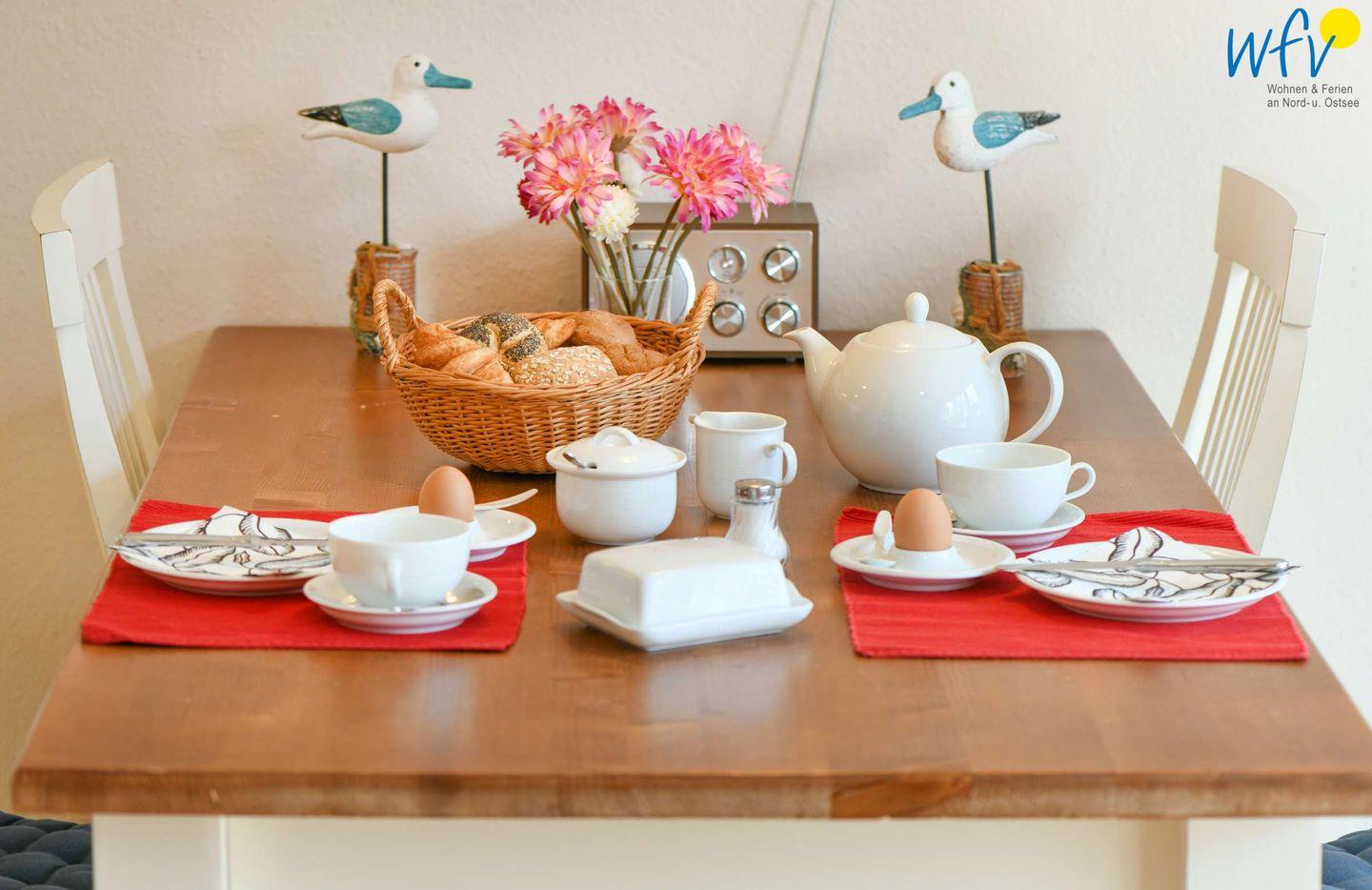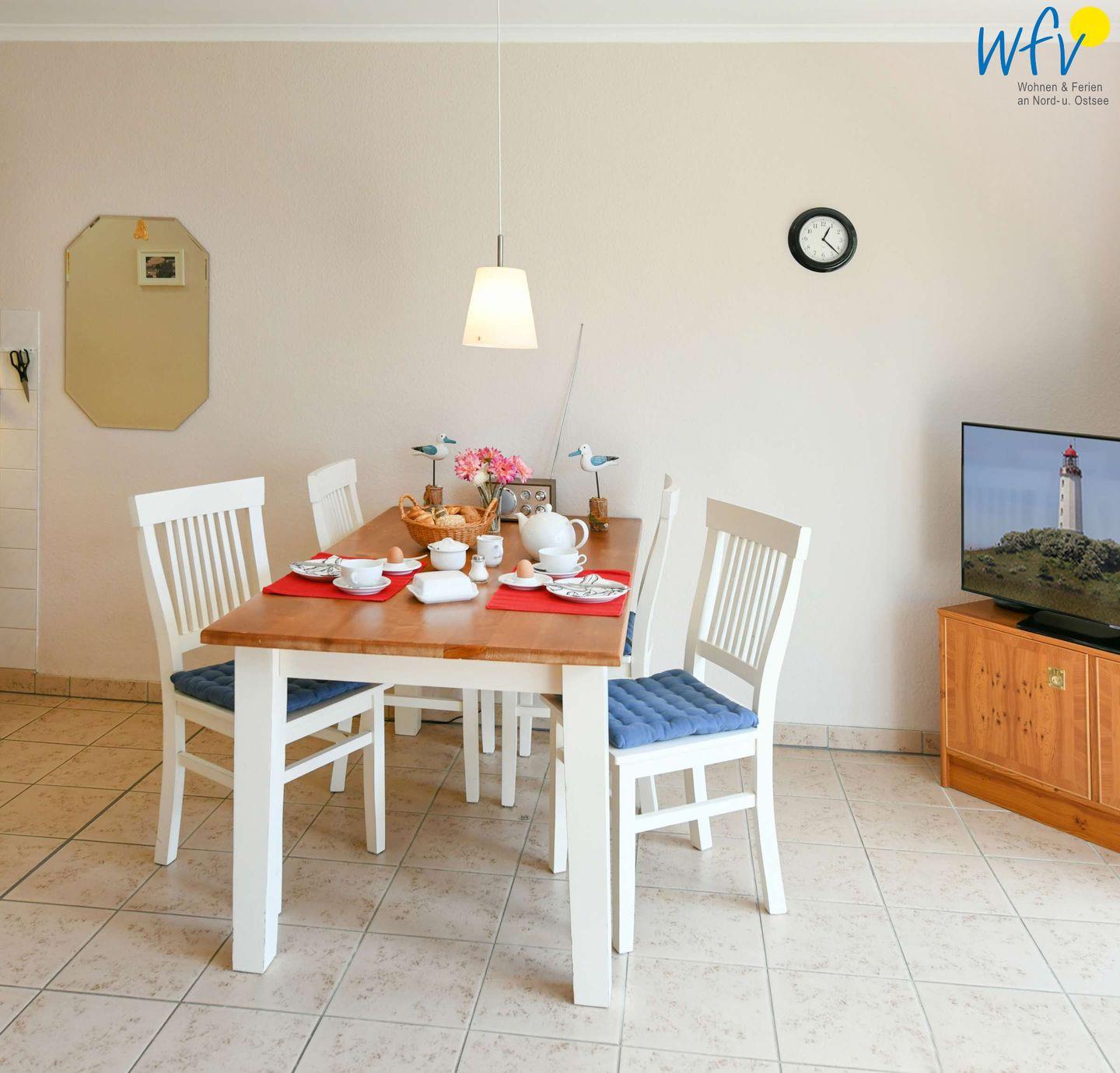 Eine breite Fensterfront, stilvolles Mobiliar und eine optimale Aufteilung sorgen für eine besonders schöne Atmosphäre, in der Sie rundum entspannen können. Von der Ferienwohnung aus können Sie sogar bereits die Ostsee sehen!