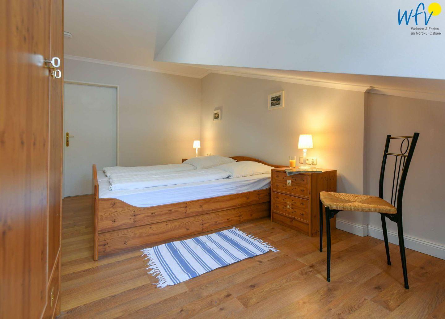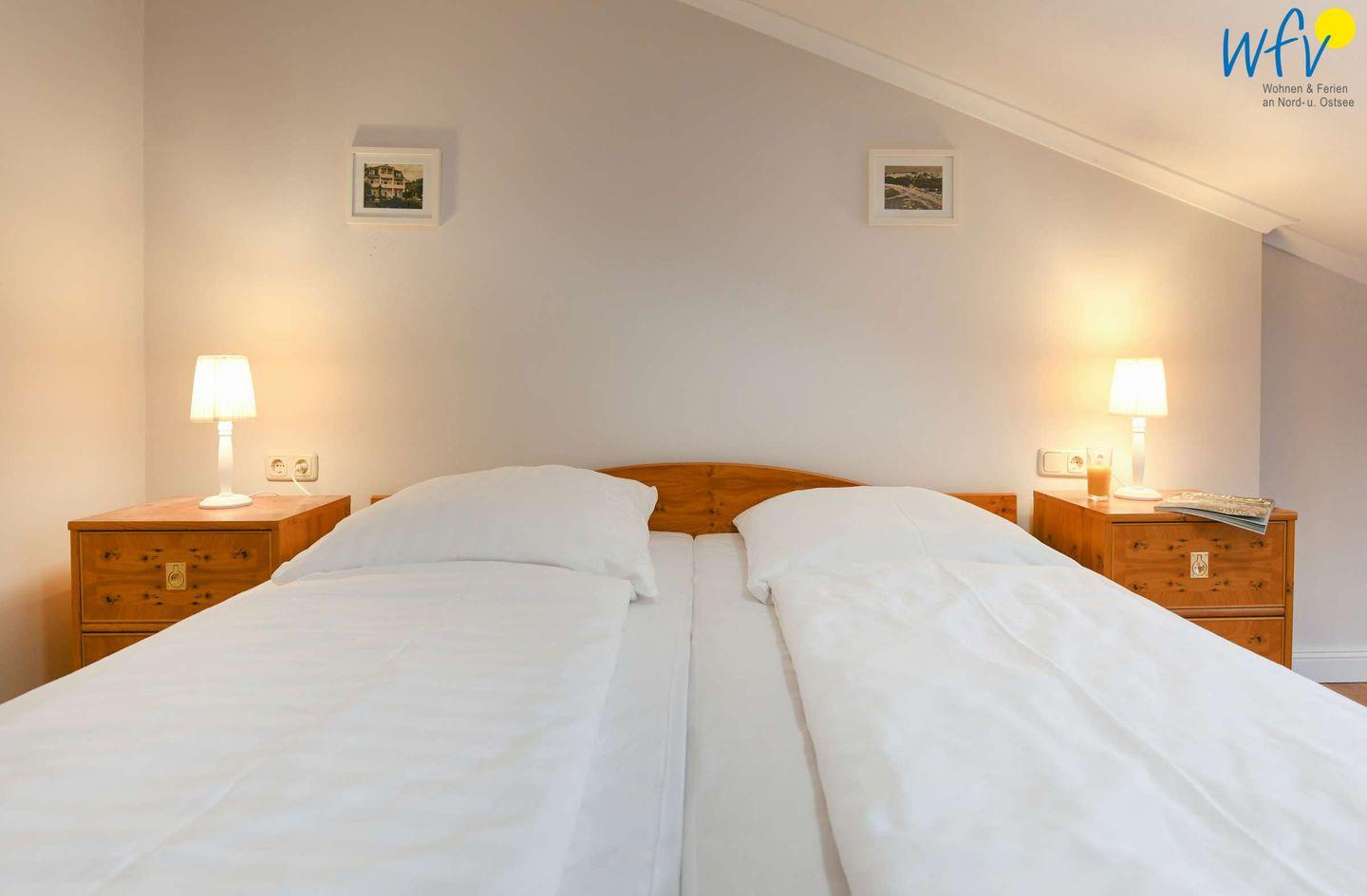 Die zwei separaten Schlafzimmer der Rügener Ferienwohnung sind mit einem Doppelbett (1,80 m x 2 m) bzw. zwei Einzelbetten (90 cm x 2 m) ausgestattet. Eine Aufbettung ist möglich (auf Anfrage).