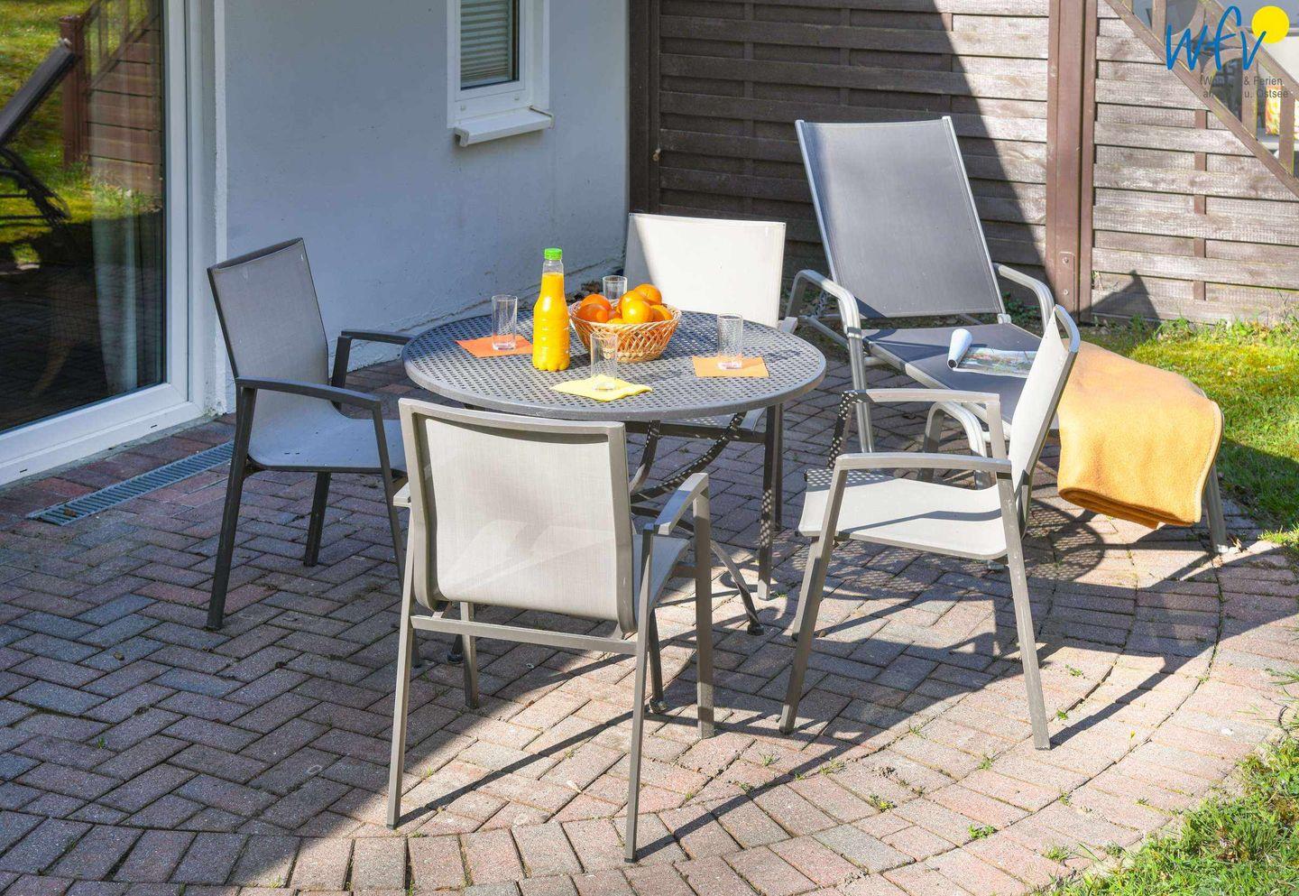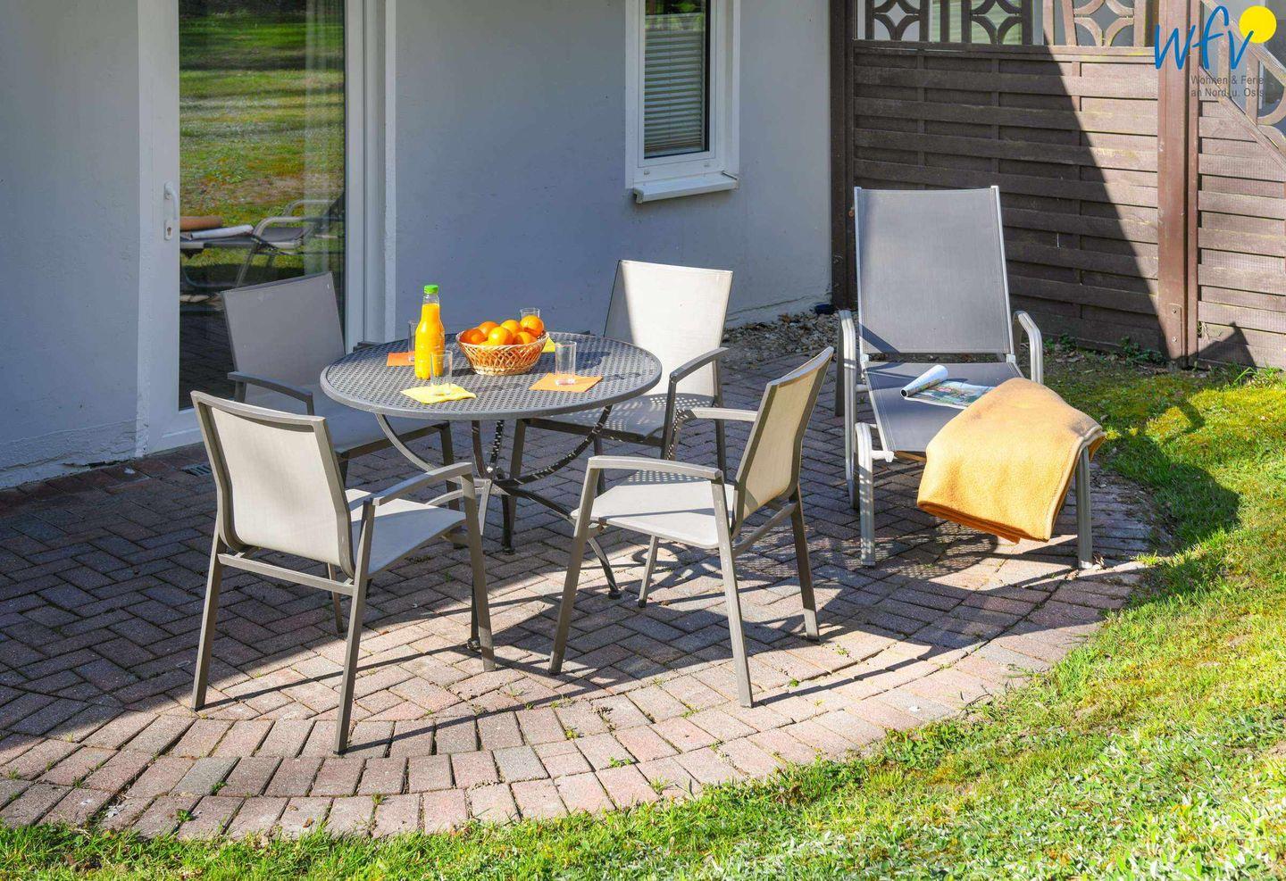 Wunderbar relaxen können Sie vor allem auf der möblierten Nordterrasse! Zu der Ferienanlage „Haus am Hövt“ gehört zudem ein großer Gemeinschaftsgarten mit Grillplatz, Tischtennisplatte und Spielmöglichkeiten, den Sie gerne nutzen dürfen.