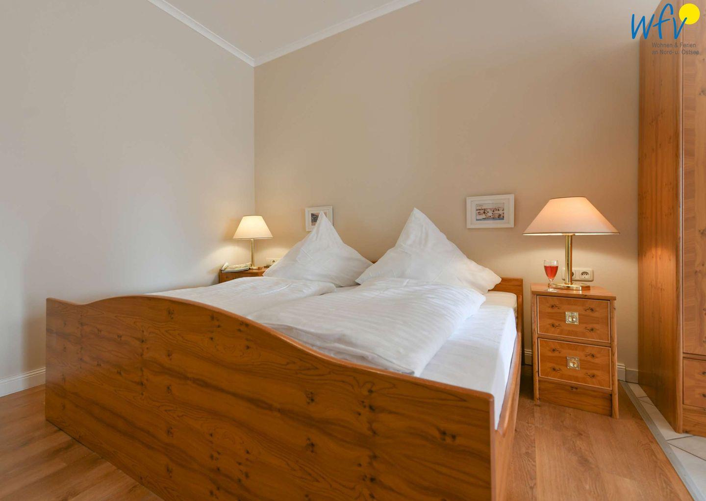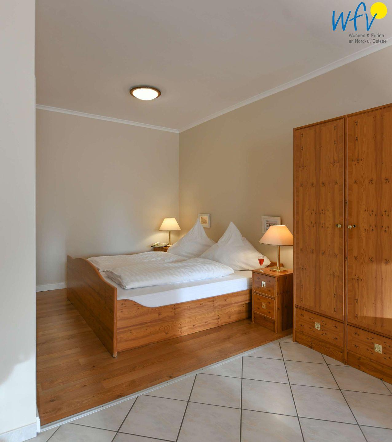 Schlafmöglichkeiten bestehen im Schlafbereich des Wohnraums durch ein Doppelbett (1,80 m x 2 m). Eine Aufbettung ist möglich (auf Anfrage).