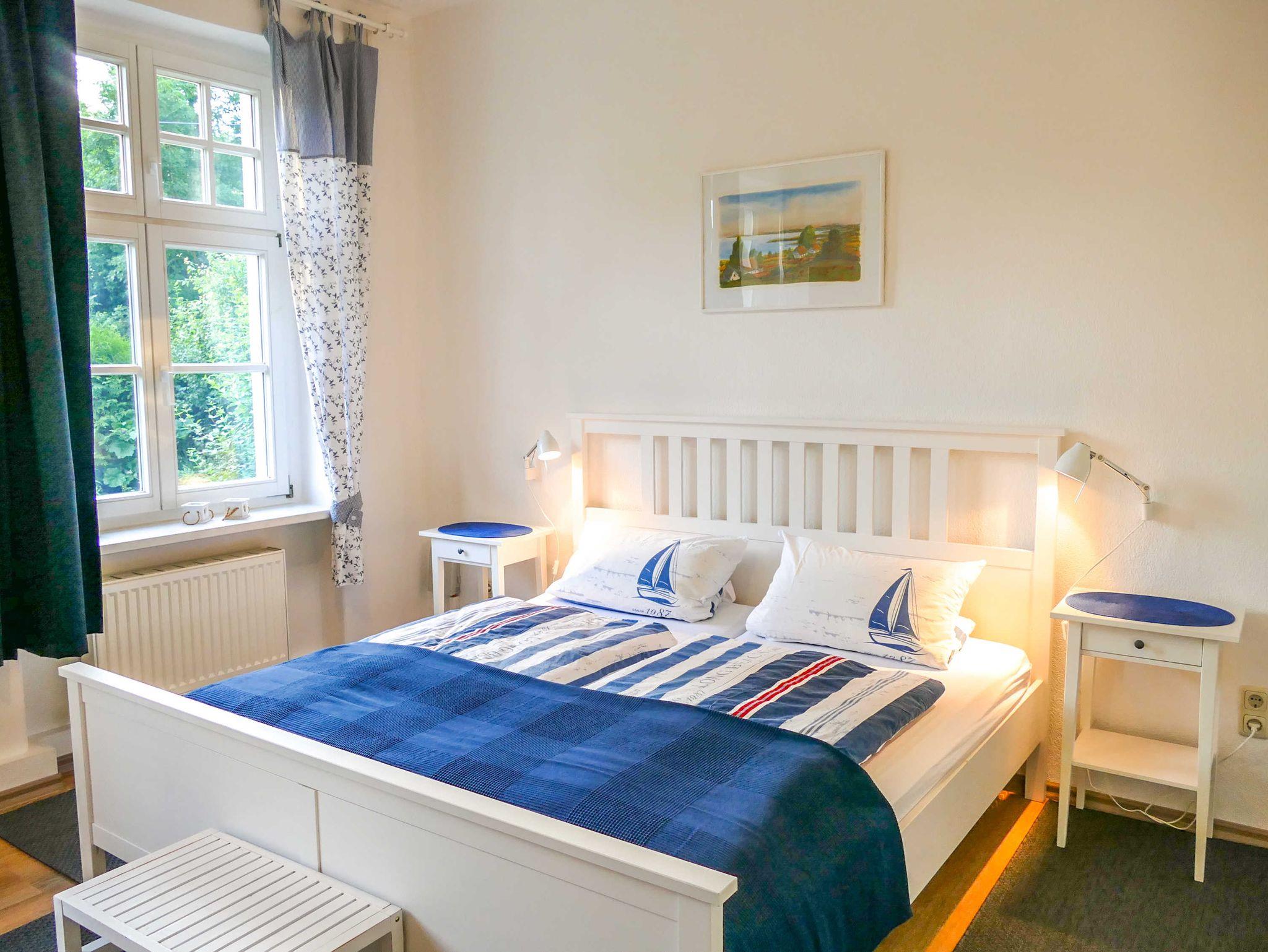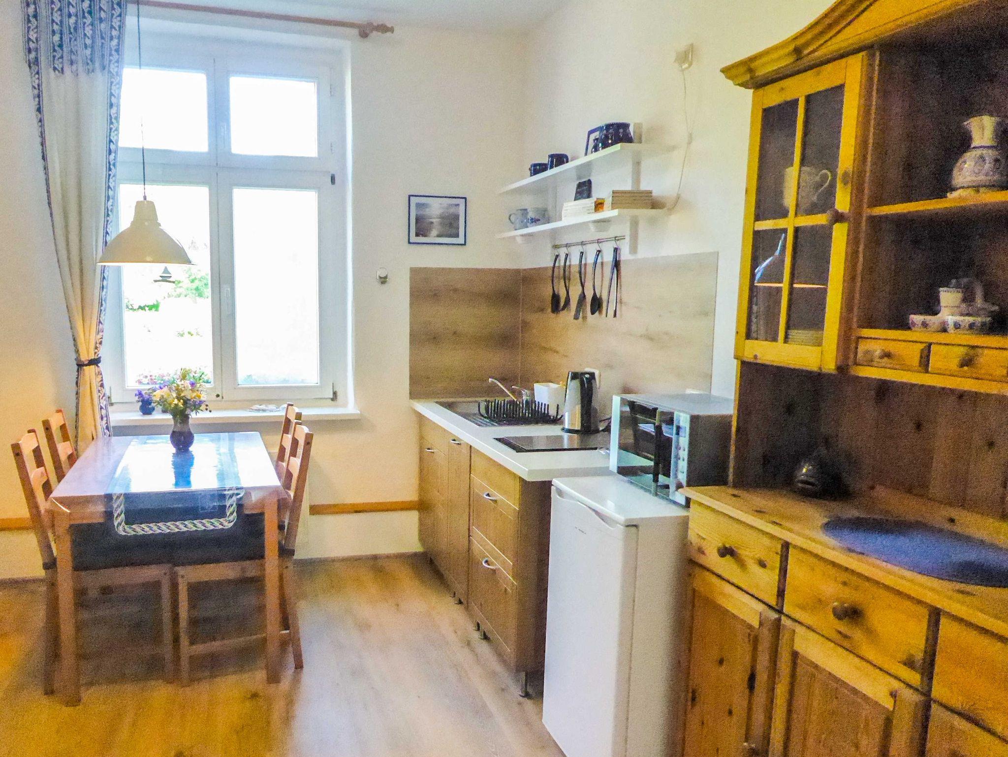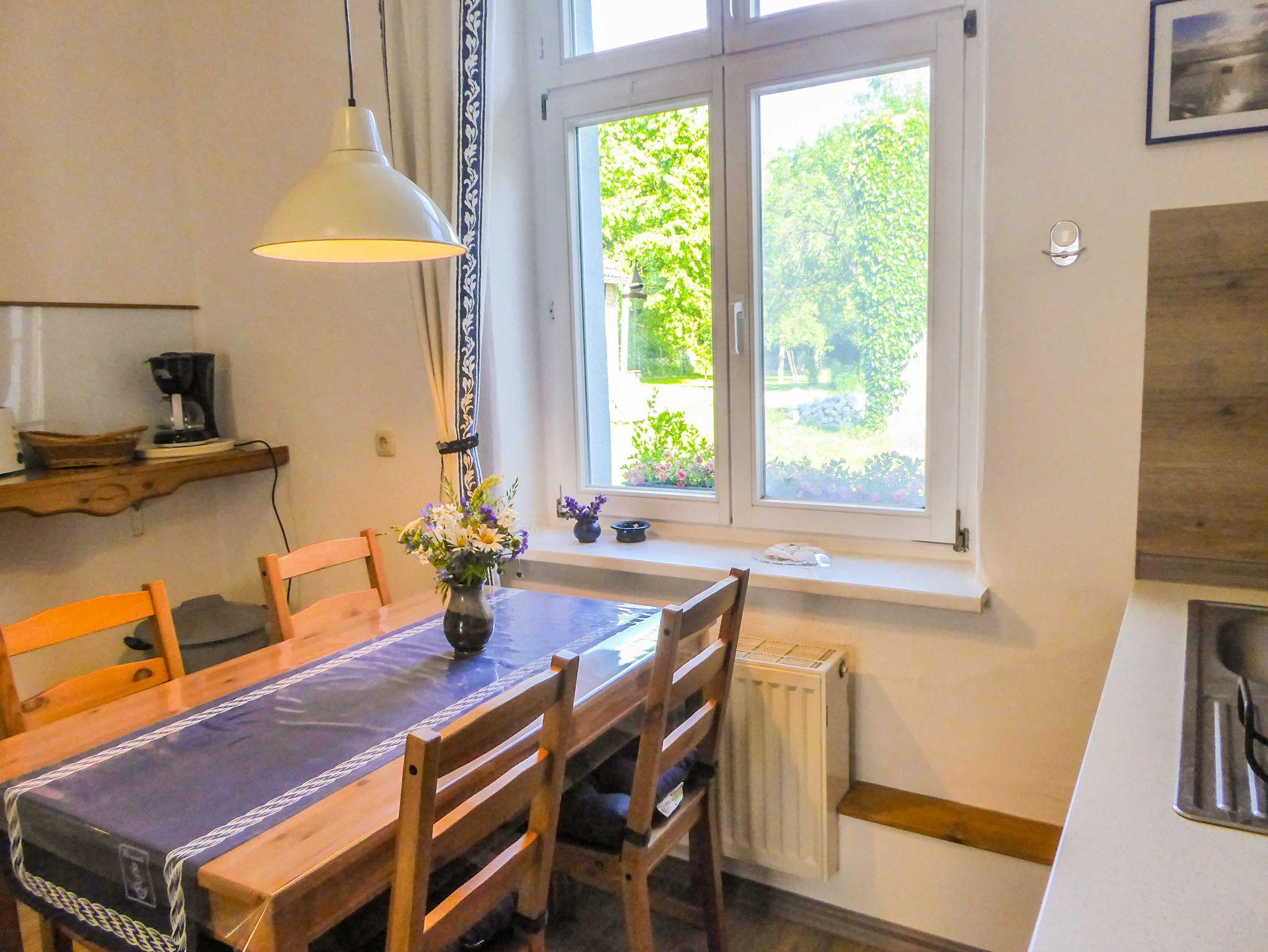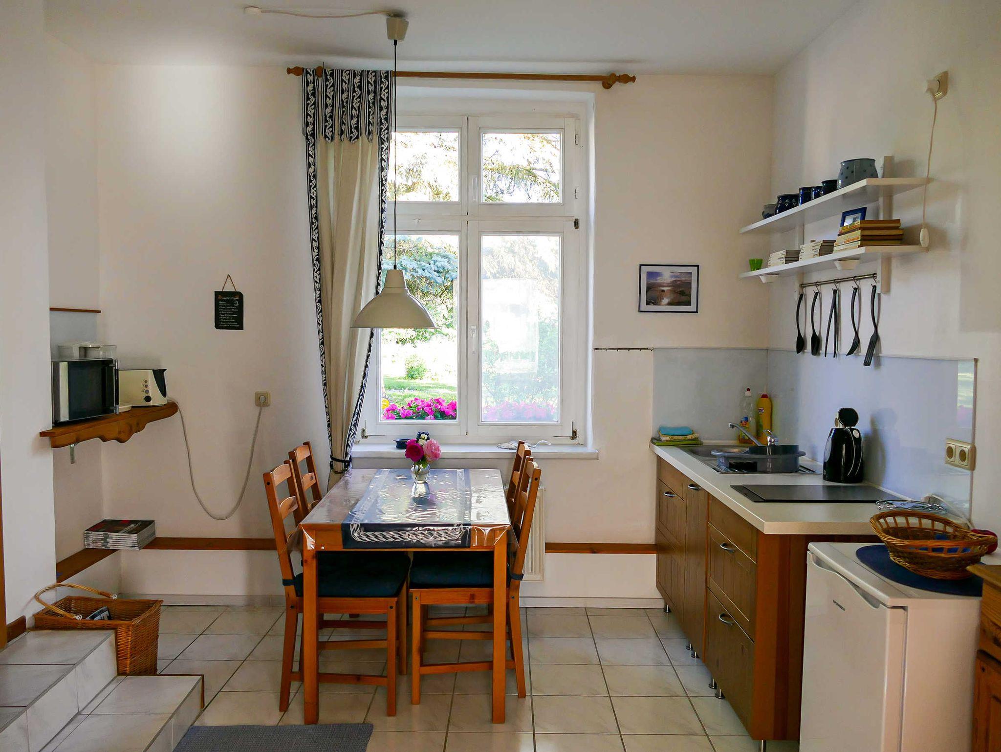Ruhige, moderne Ferienwohnung in der historischen alten Dorfschule von Gützkow mit Gartenblick und kostenfreiem WLAN.
