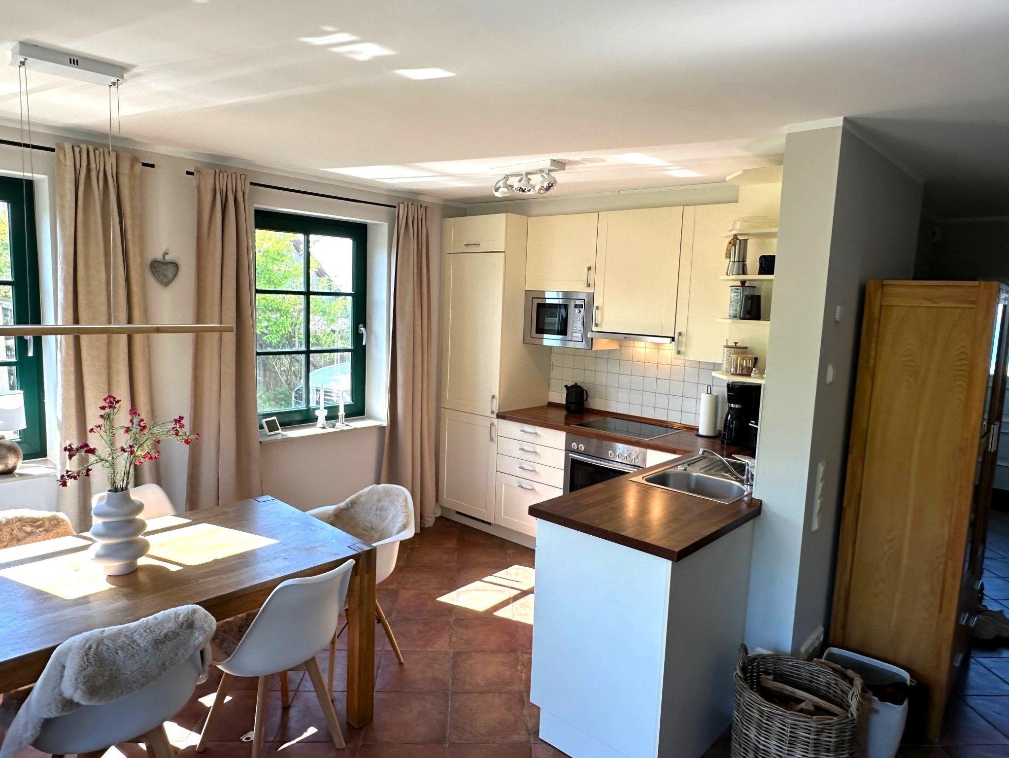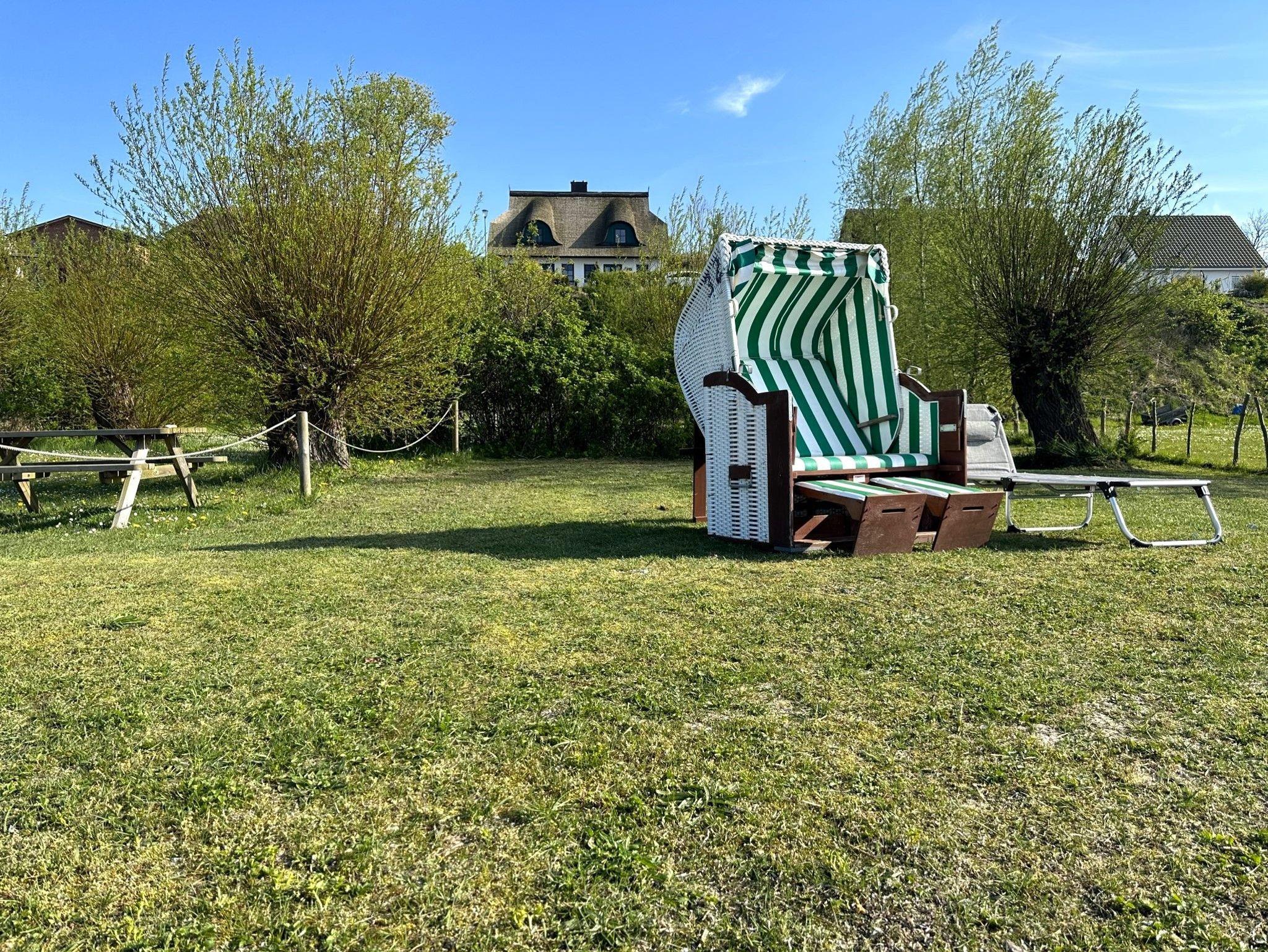 Der Außenbereich wurde mit viel Liebe gestaltet und ist von einem Friesenwall mit Heckenrosen umgeben. Entspannen Sie im Garten oder auf den beiden Terrassen, welche mit Gartenmöbeln und einem eigenen Strandkorb ausgestattet sind. Auf dem Grundstück befindet sich ein Parkplatz für zwei Fahrzeuge, und es gibt auch eine Abstellmöglichkeit für Ihre Fahrräder.