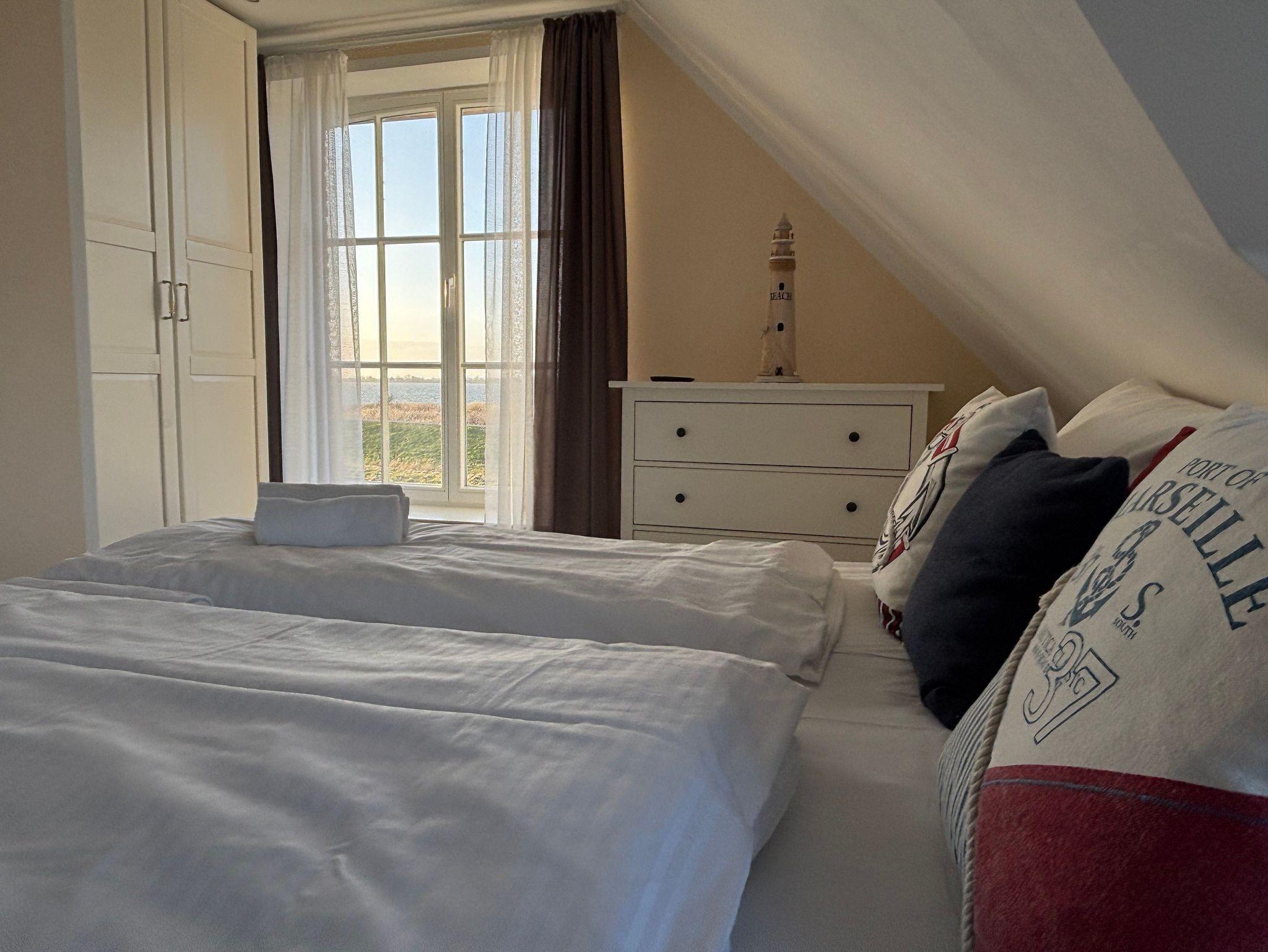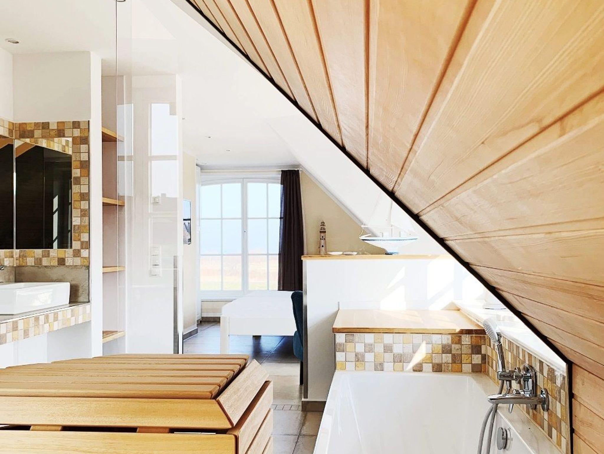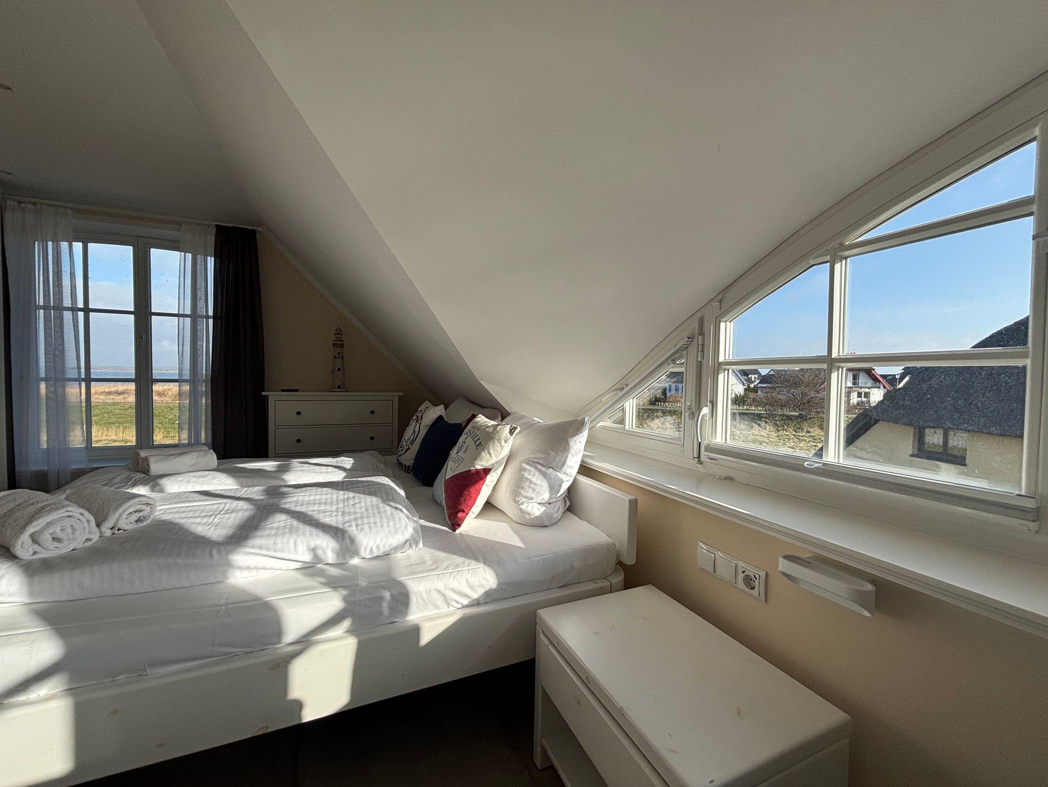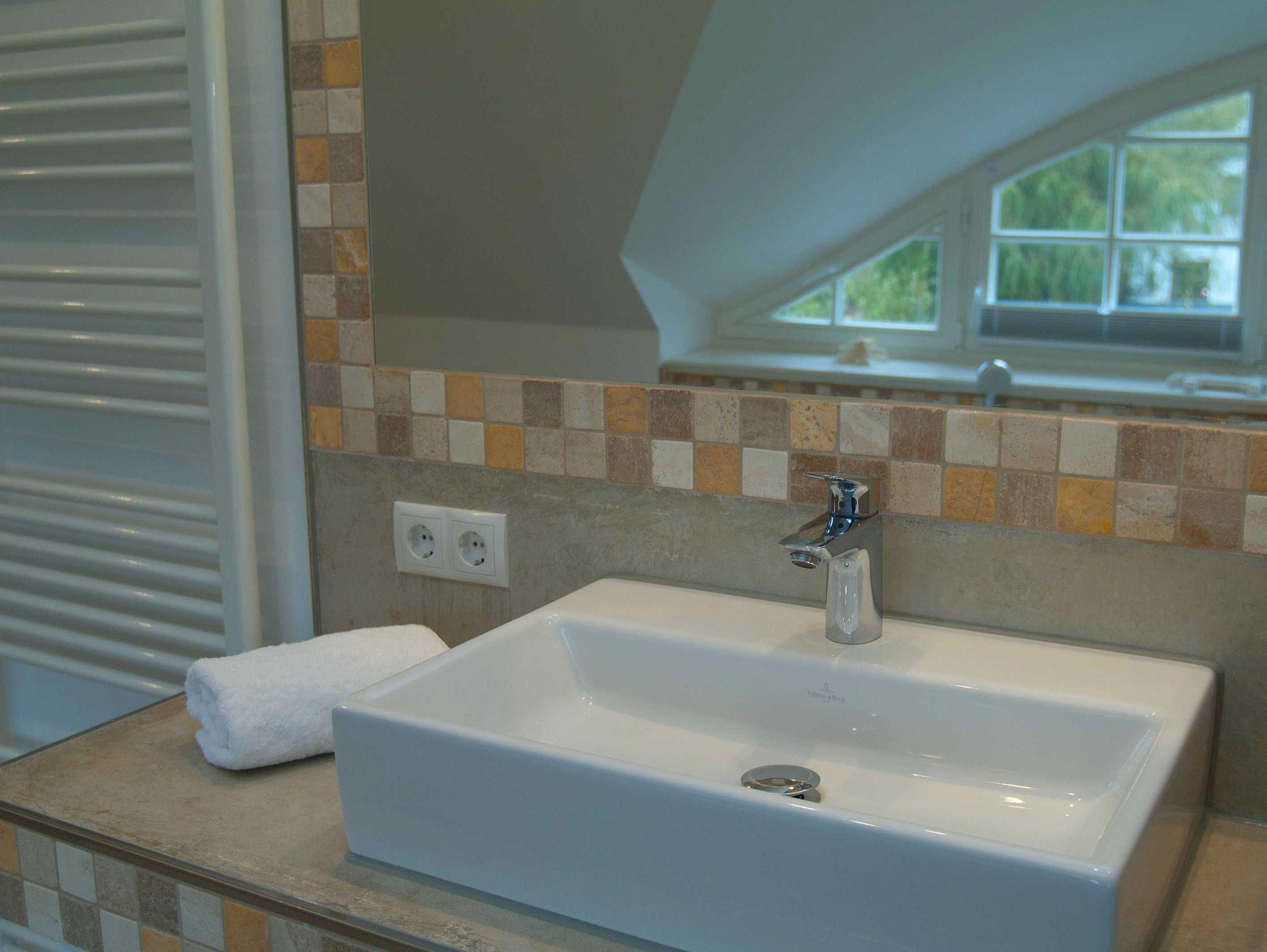 Die liebevoll eingerichtete Ferienwohnung Vilmblick (DG) mit ausgebautem Spitzboden, verfügt über einen großzügigen und maritim eingerichteten Wohnbereich mit einladenden Fledermausgauben für einen außergewöhnlichen Rundumblick für bis zu vier Personen.