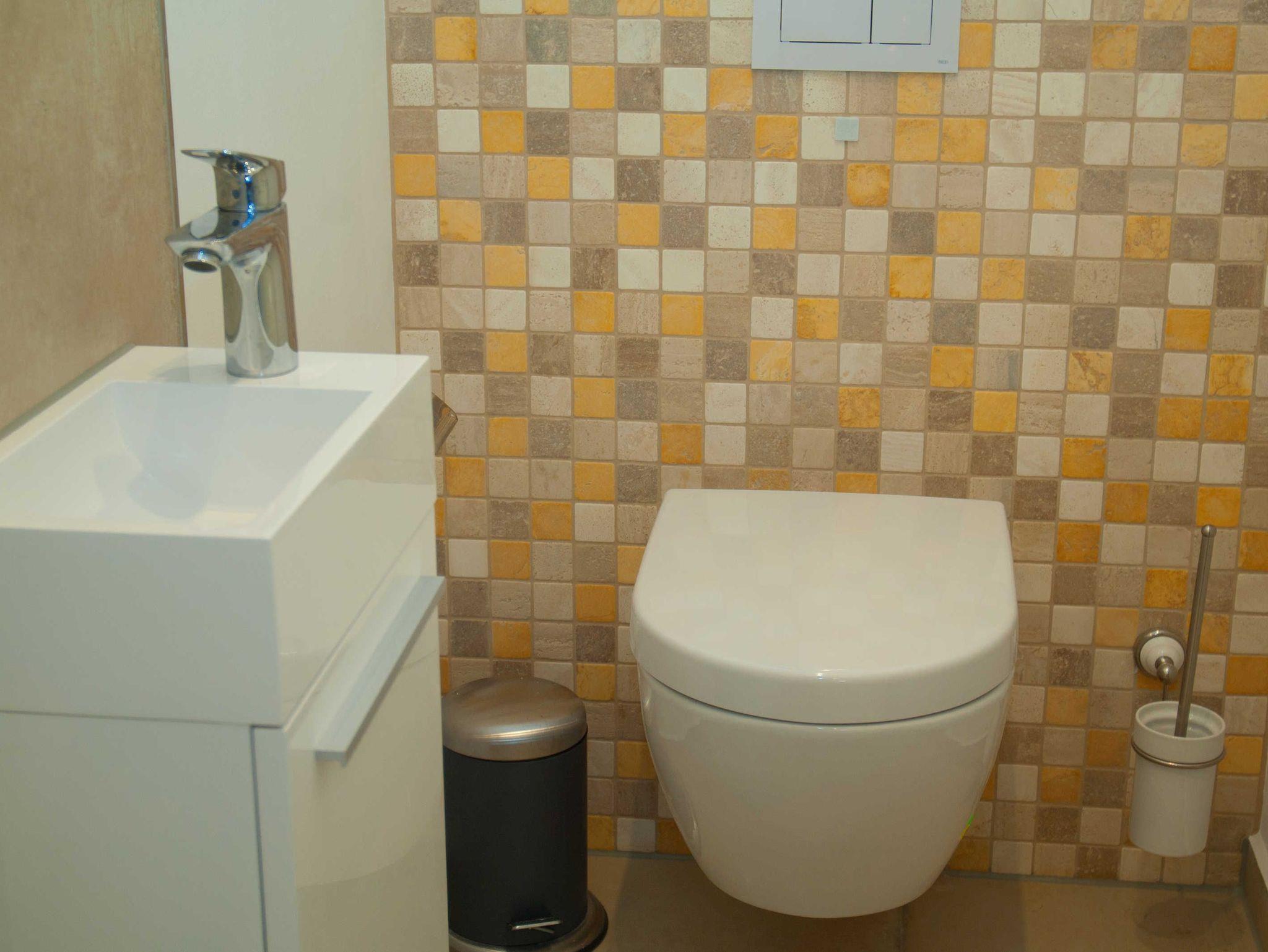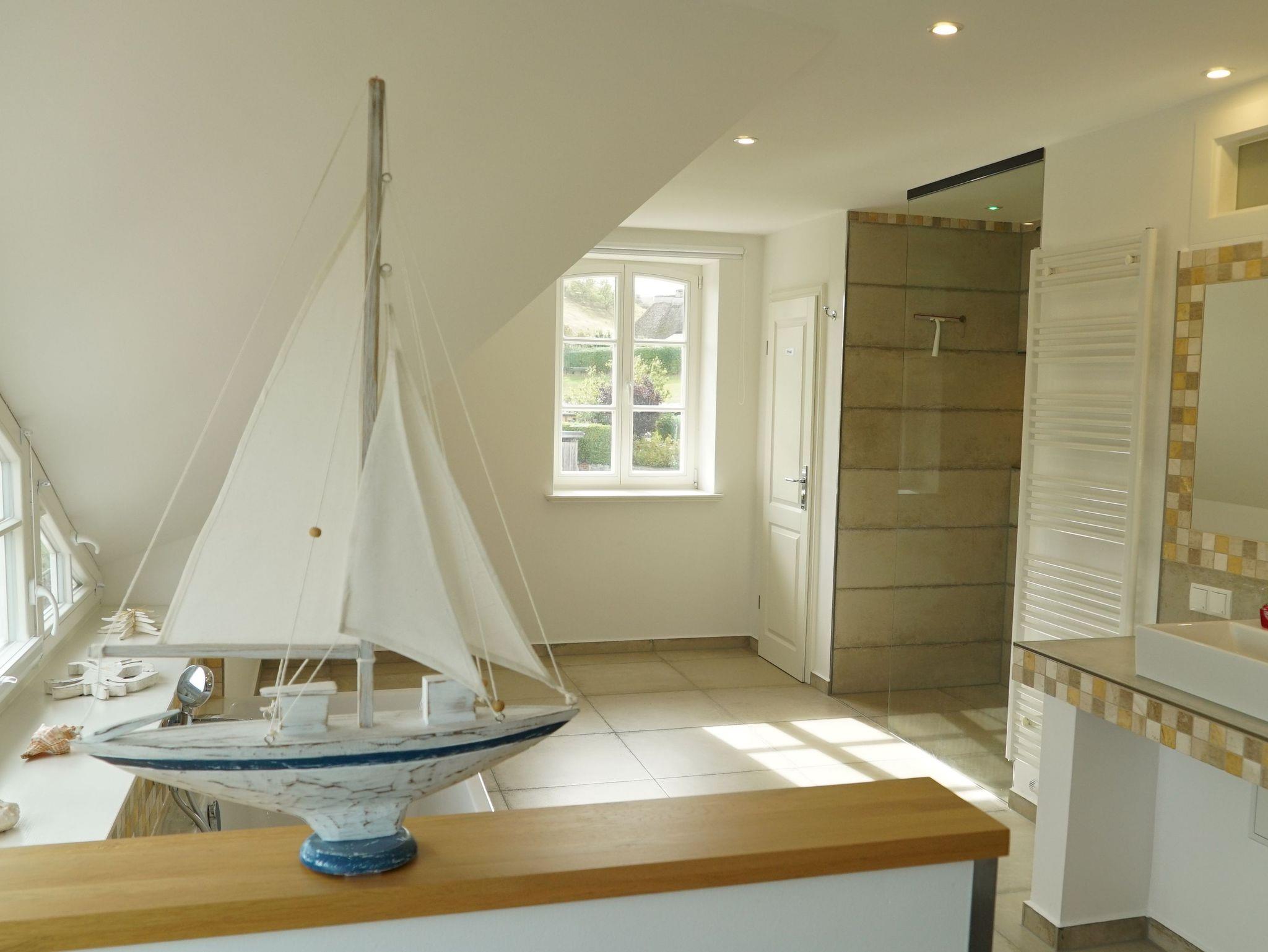 Der Badbereich mit Wellness-Regendusche bietet ausreichend Platz zum Relaxen.
