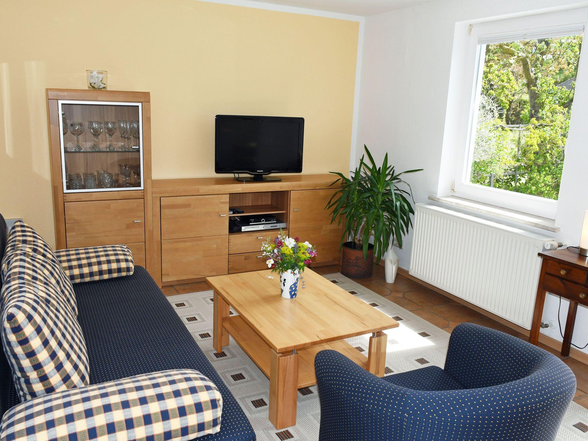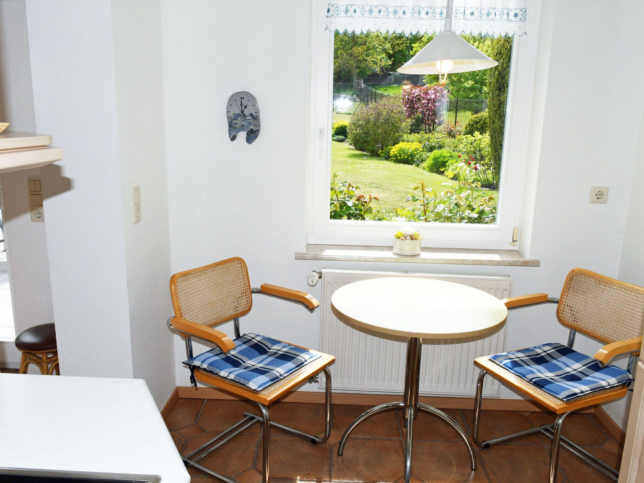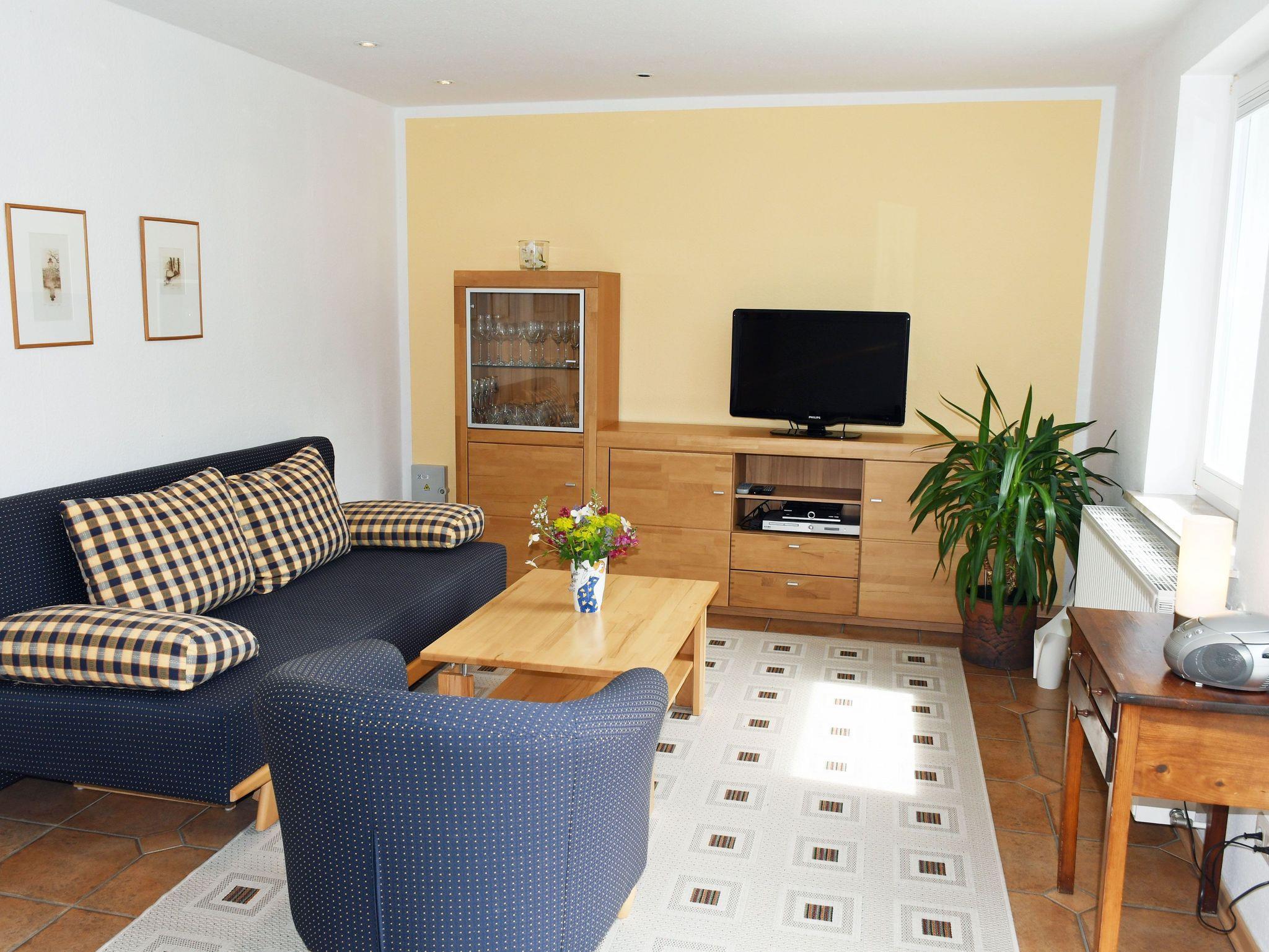 Es wurde sehr liebevoll, modern und komfortabel eingerichtet. Ein Geschirrspüler, ein Herd mit Cerankochfeld und Backofen sowie eine Waschmaschine und ein Haartrockner gehören zur Ausstattung. Über einen kleinen Flur mit Garderobe gelangt man in den Wohnraum mit Couch und Sessel, Tisch, Schrankwand und TV-Gerät. Durch die großen Fenster haben Sie hier einen sehr schönen Ausblick in den Naturgarten und die Zickerschen Alpen.