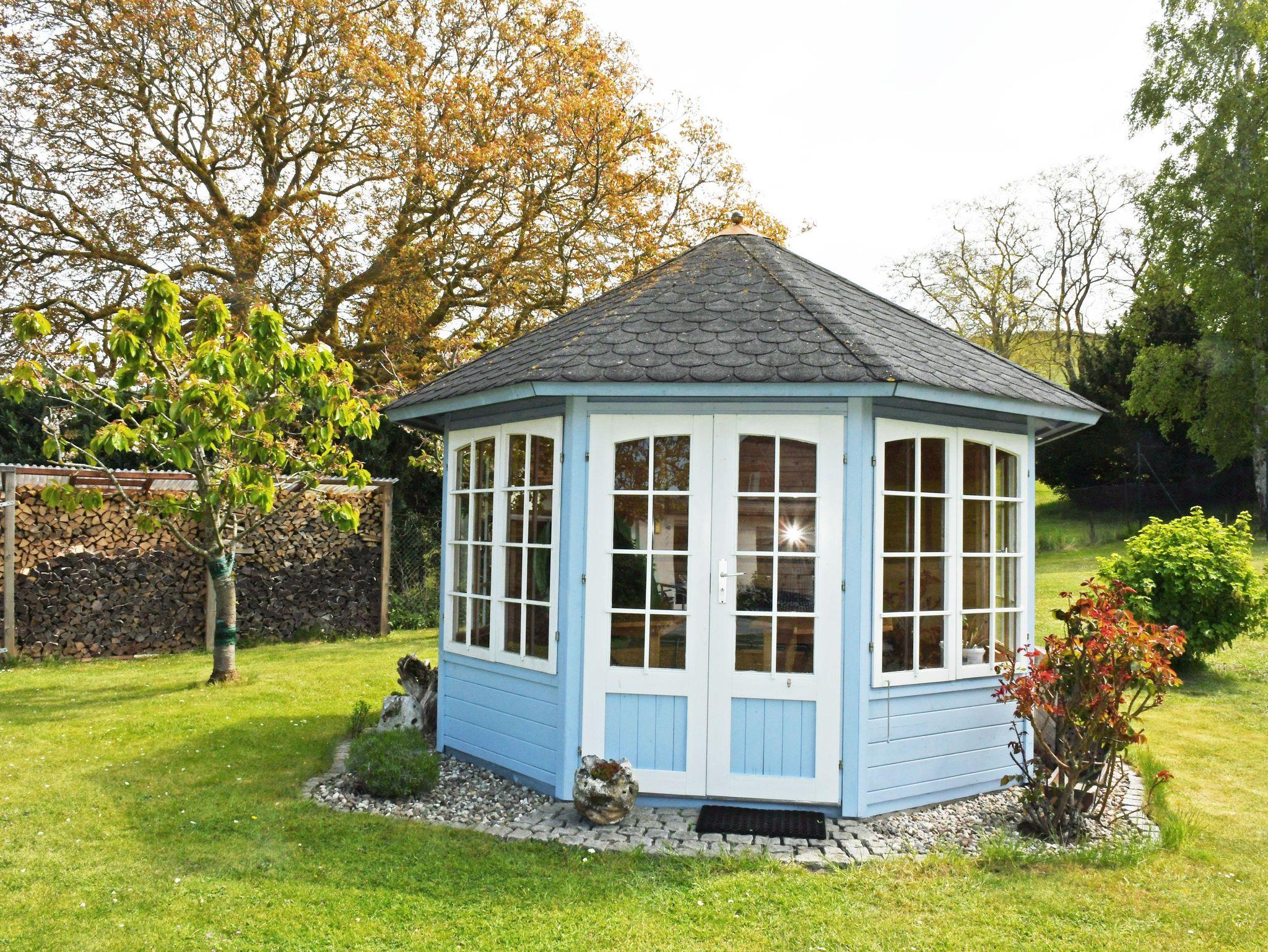 Zum Ferienhaus gehören eine schöne Sonnenterrasse mit Sitzgelegenheiten und ein großer Naturgarten mit Liegewiese, in dem Sie die Seele baumeln lassen können. Am nahe gelegenen Hafen erhalten Sie fangfrischen Fisch oder gehen an Bord eines Ausflugsschiffes. Abends sitzen Sie gemütlich auf der blauen Bank vor dem Haus und erleben spektakuläre Sonnenuntergänge. Parklätze sind auf dem Grundstück ausreichend vorhanden.