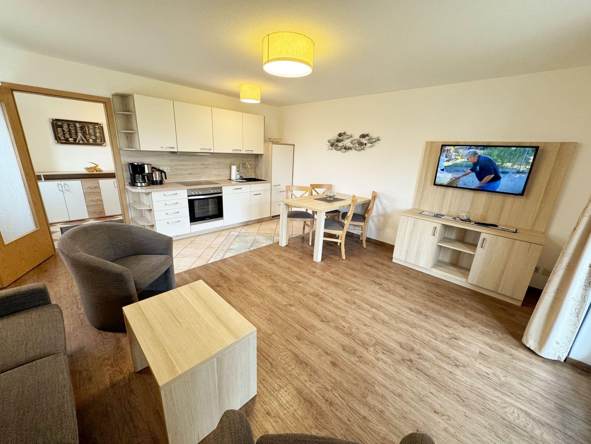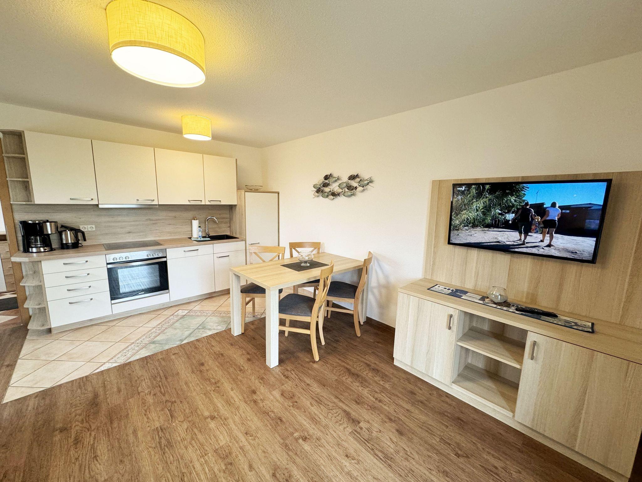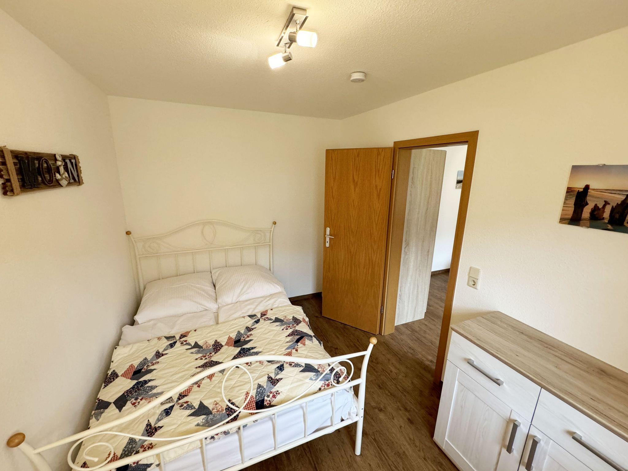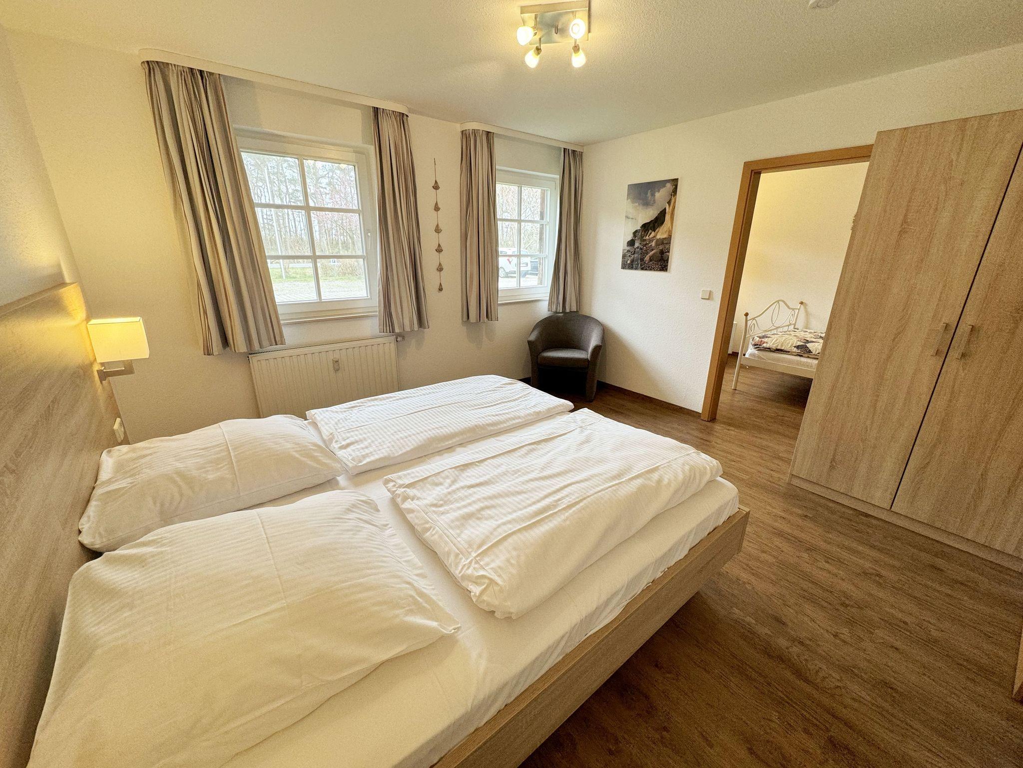 Die Drei-Zimmer-Ferienwohnung Nr. 1 liegt an der Stirnseite des Hauses im Erdgeschoss und verfügt über einen separaten Eingang. Die Terrassenwohnung ist eine Nichtraucherwohnung. Sie wohnen hier auf insgesamt 60 qm mit max. 4 Erwachsene und 1 Kleinkind bis 3 Jahre im Kinderreisebett. Das 1. Schlafzimmer verfügt über einen modernen Schlafraum mit einem Doppelbett mit Komfortmatratzen (2 x 0,90 m x 2,00 m), Nachttischkonsolen, Kleiderschrank und ist mit Vinylboden ausgelegt worden. Hier kann ein Kinderreisebett aufgestellt werden. Das 2. Schlafzimmer verfügt über ein Doppelbett (1,40m x 2,00m), einen Sessel, ein Sideboard, einer Stehlampe und ist über das Elternschlafzimmer erreichbar. Insektenschutzgitter befinden sich in den Schlafzimmern. Der Wohn- und Essbereich ist gemütlich eingerichtet. Neben einem Sofa finden Sie hier auch einen Couchtisch, Flachbild-TV, eine Leselampe sowie einen Essplatz mit vier Stühlen. Die Küchenzeile ist komplett eingerichtet mit Spülmaschine, Ceran-Kochfeld, Backofen, Kühlschrank mit 3 ***Gefrierfach, Toaster, Wasserkocher, Kaffeemaschine sowie diverse Küchenutensilien, die Sie zur Selbstverpflegung benötigen. Vom Wohnbereich gelangen Sie auf die bestuhlte und überdachte Terrasse. Das geflieste Badezimmer verfügt über eine Dusche, einen Waschtisch, einen Fön und ein WC. Haustiere sind nicht erlaubt!! Die Internetnutzung (WLAN) ist für Sie inklusive. Zwei PKW-Stellplätze mit jeweils der Nr. 01 steht Ihnen vor dem Haus zur Verfügung. Auf dem Grundstück können Sie Ihre Fahrräder abstellen. Die Erstausstattung eines Wäschepaketes (komplette Bettwäsche, 1 Duschhandtuch, 1 kleines Handtuch) können Sie bis 14 Tage vor Anreise gegen einen Aufpreis dazu buchen oder durch eigene ergänzen. Ab 2 gebuchten Paketen erhalten Sie einmalig 1 Geschirrhandtuch und 1 Duschvorleger hinzu.