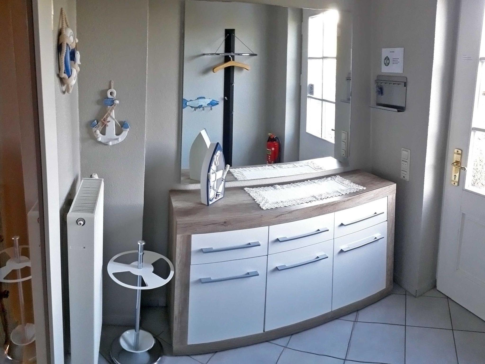 Ein direkt über den Flur zugängliches Bad mit Dusche/WC sowie Fön befindet sich ebenfalls im EG.