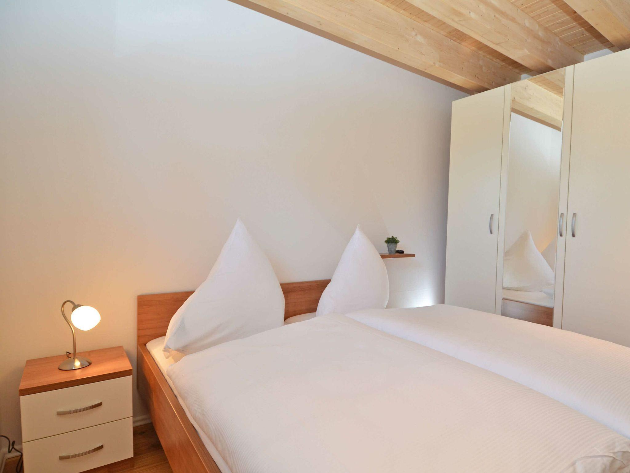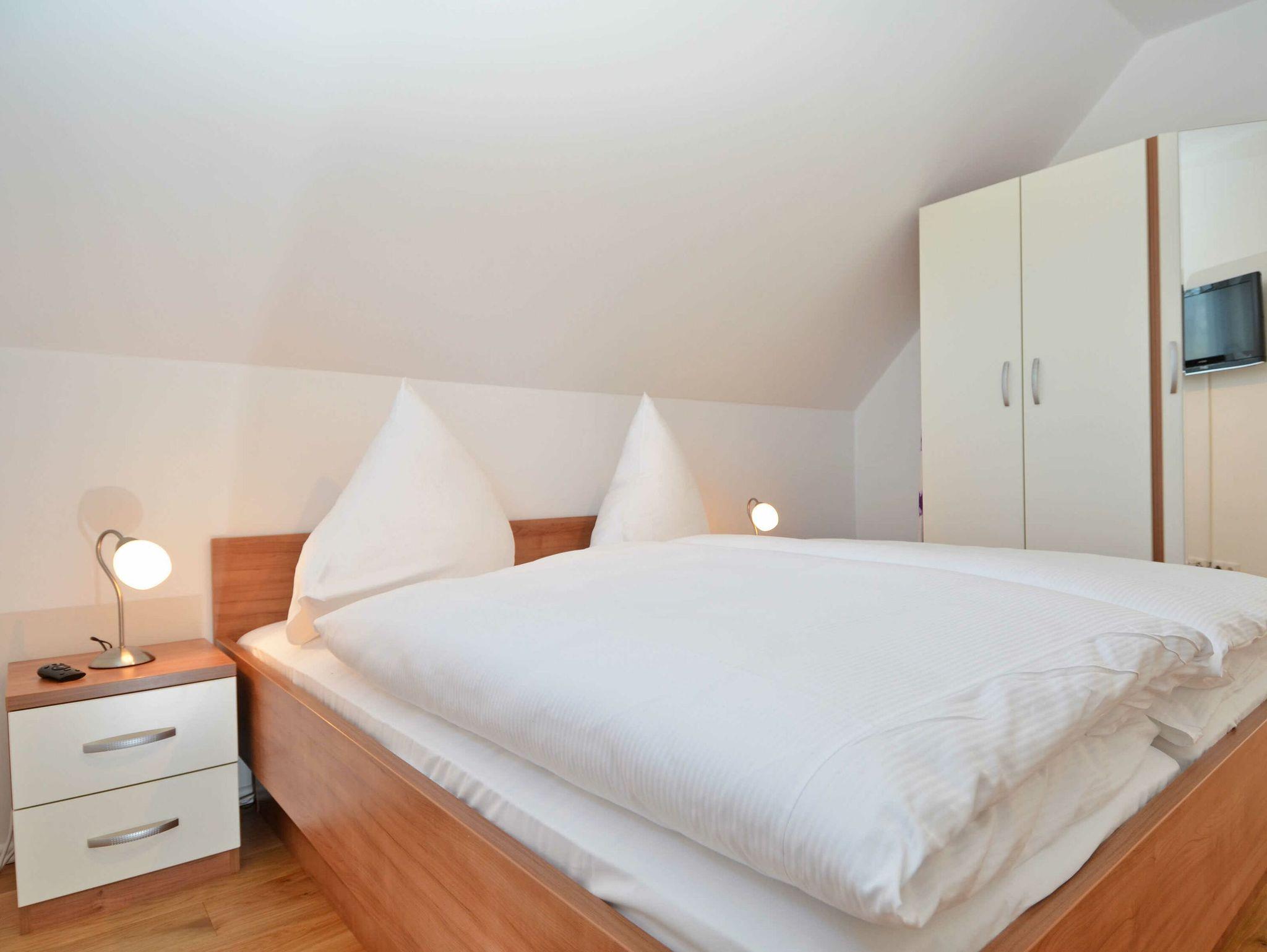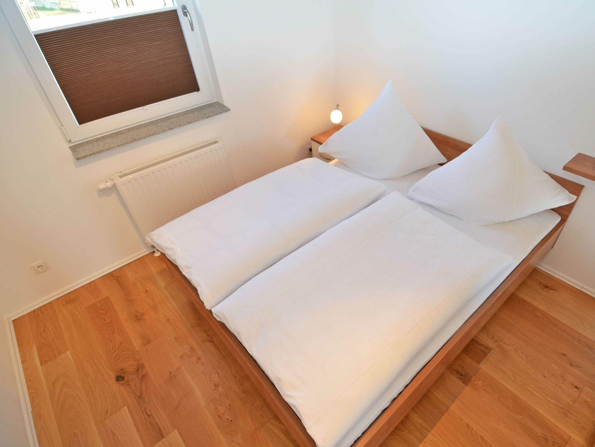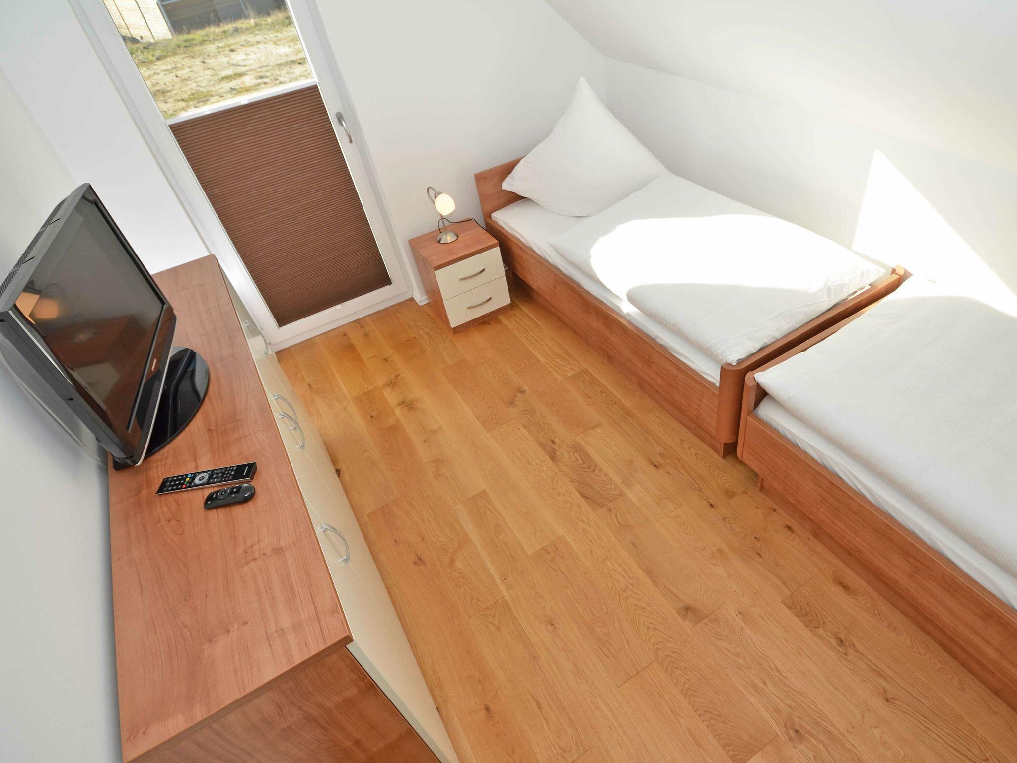 Eines der Schlafzimmer verfügt über ein Doppelbett; die zwei weiteren Schlafzimmer je über zwei hintereinander angeordnete Einzelbetten und einen Zugang auf den ca. 3,5 m² großen Balkon zur Abendsonne.