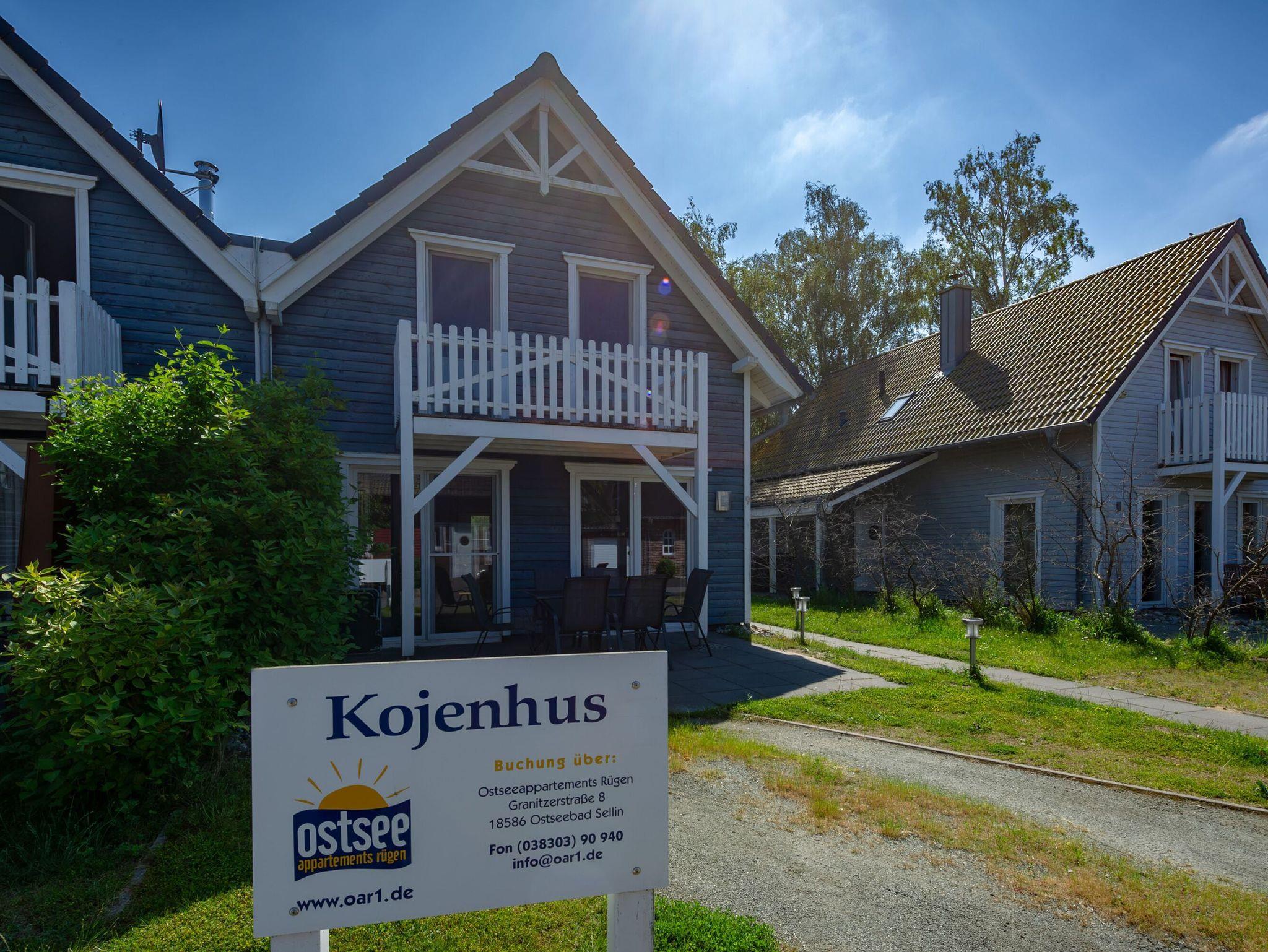 Das rechte Nichtraucher-Ferienhaus ?Kojenhus? hat ca. 130 m² Wohnfläche über zwei Ebenen verteilt mit 4 Schlafzimmern und einem ganz besonderen Wohnambiente. Es verfügt über eine möblierte Terrasse und einen kleinen Balkon zur Nord-West-Seite mit einem schönen Blick auf das Boddengewässer der Hagenschen Wieck und den Hafen von Gager. Die Balkon- bzw. Terrassenmöbel stehen saisonal - in der Regel von Mai bis Ende September - zur Verfügung.