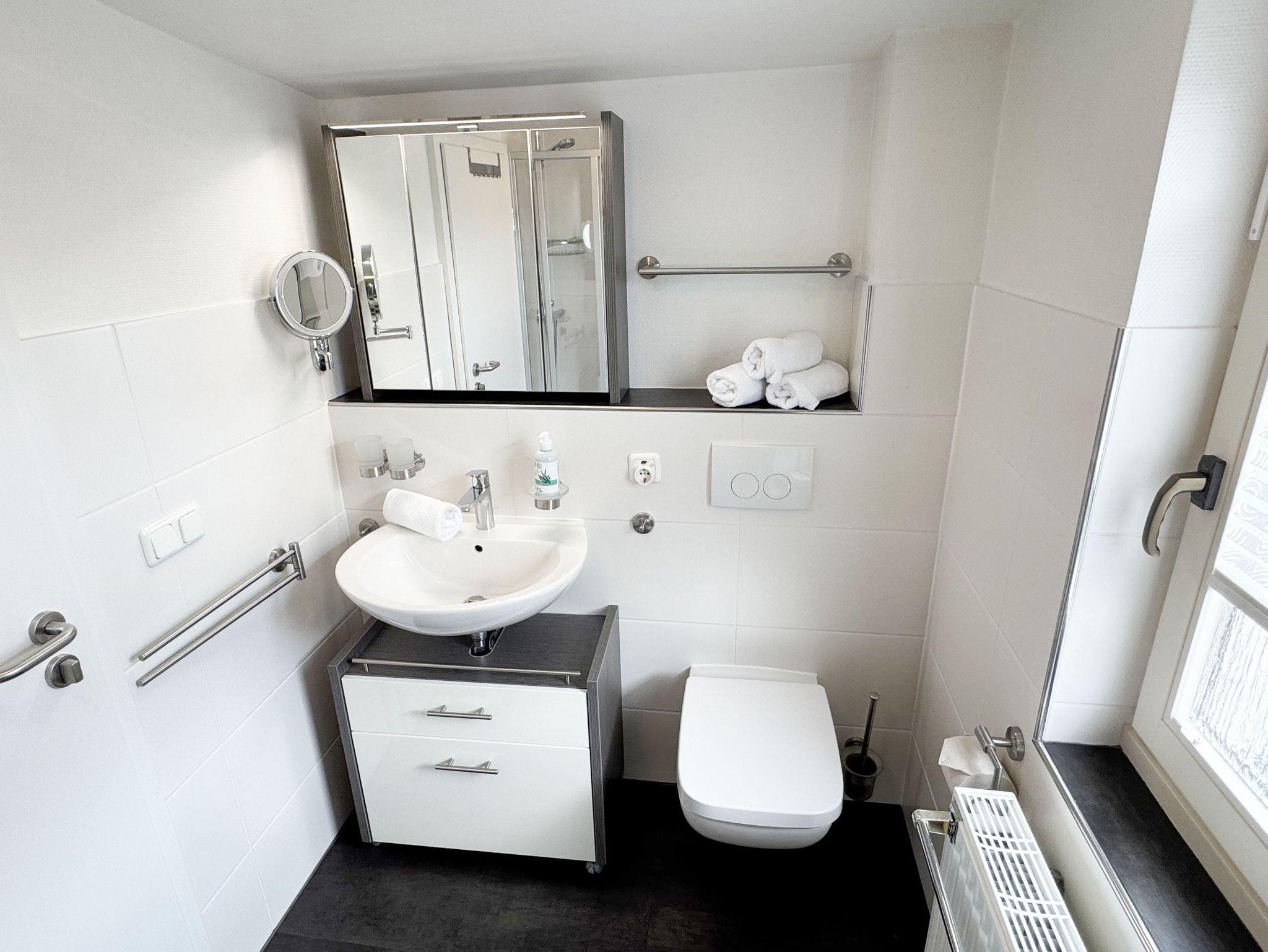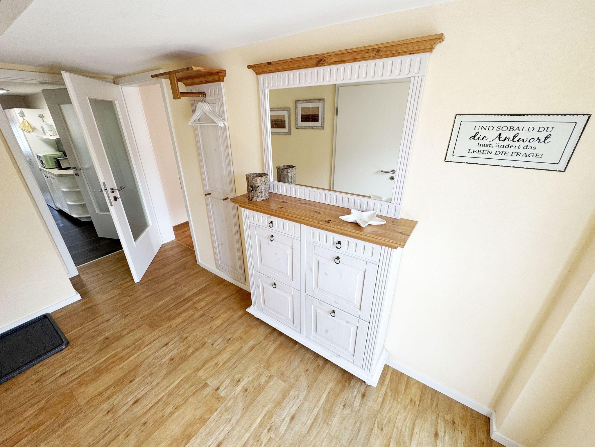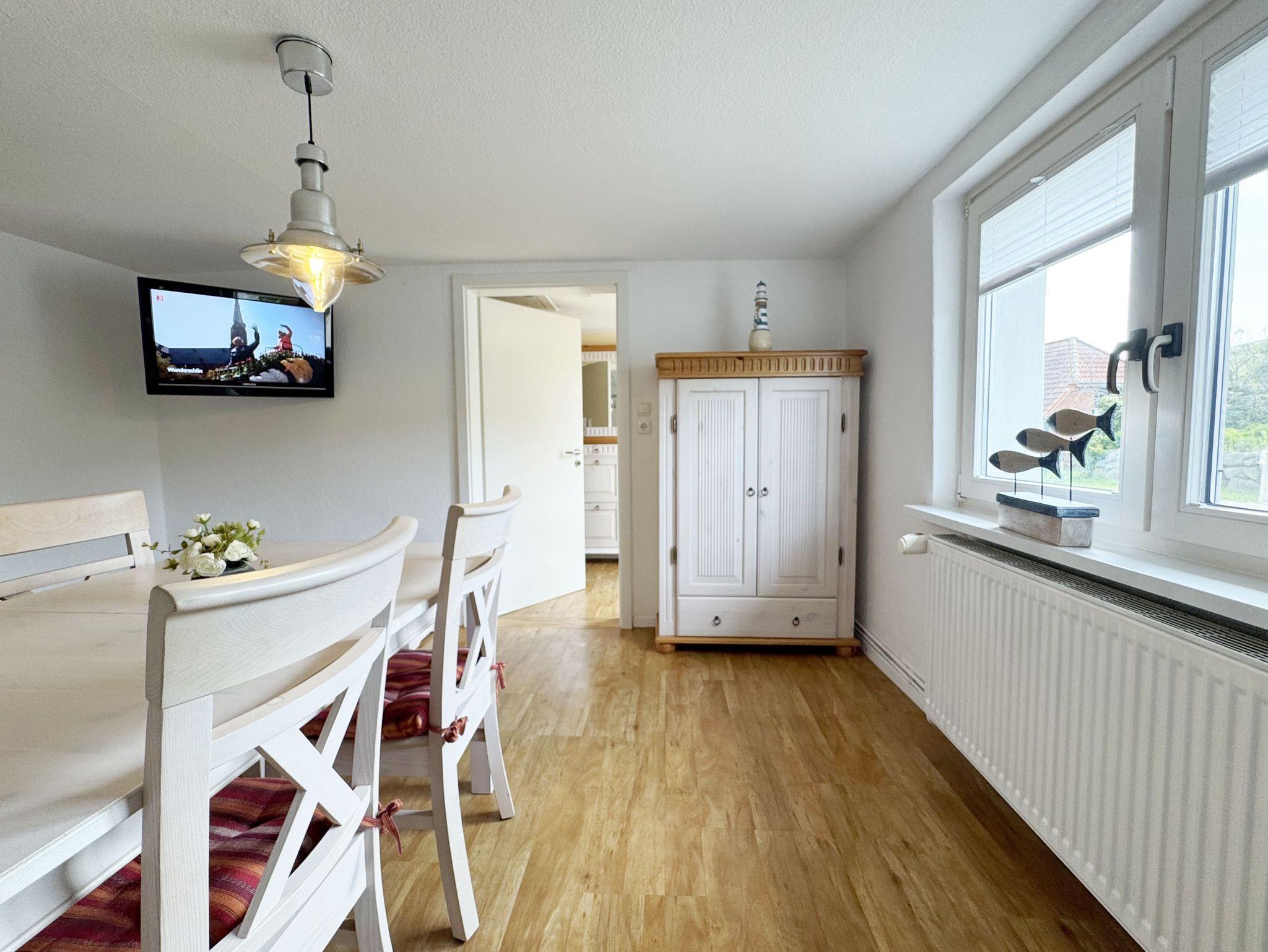 Das ca. 65 m² große alte Fischer-Ferienhaus ?Haus an der Wieck? (Nichtraucher) ist für max. 2 bis 3 Erwachsene + 1 Kleinkind bis 3 Jahre im Kinderreisebett ausgestattet. Im Eingangsbereich befindet sich eine Garderobe mit einem ausreichend großen Schuhschrank im Landhausstil. Von hier gelangen Sie in alle Räumlichkeiten. Das moderne und separate eingerichtete Wohnzimmer verfügt über eine Schlafcouch mit Kaltschaummatratze, welches sich mit ein paar Handgriffen von 0,70m x 2,00m auf 1,40m x 2,00m vergrößern lässt. Ein höhenverstellbarer Couchtisch, eine Leselampe, ein Lowboard mit großem Smart-TV (55 Zoll) mit Sky (Auswahl von Sport, Film, Dokumentation), Netflix und Soundbar, einen Blu-Ray Player mit USB-Anschluss, DAB-Radio, CD-Player mit USB und einer kleinen Auswahl an Büchern und Gesellschaftsspielen komplettiert diesen Bereich. Auch ein inklusiver Netflix Account steht Ihnne zur Verfügung. Der technische Bereich wird durch einen WLAN abgerundet. Die Küche mit Kühlschrank, Geschirrspüler, Mikrowelle, 4-Zonen-Ceranfeld mit Backofen, Brotmaschine, Toaster, Wasserkocher, Kaffeemaschine, Eierkocher, Mixer und diversen Küchenutensilien bietet alles, was zum Kochen benötigt wird. Für ein gemütliches Beisammensein verfügt das Haus an der Wiek über zwei Esszimmer. Ein großes mit Flachbild-TV und Blick auf das Biosphärenreservat Zickersche Alpen und ein kleines mit Blick auf die Hagensche Wiek. Das Schlafzimmer im Landhausstil ist mit einem Doppelbett (1,80m x 2,00m), verstellbare Lattenroste, Nachtschränke, Ganzkörperspiegel und einen großen Kleiderschrank ausgestattet. Verdunklungsplissees, Vorhänge und Insektenschutzgitter sorgen für einen langen und erholsamen Schlaf. Das moderne Tageslicht-Bad ist mit einem WC, einem Waschbecken mit Unterschrank, einem Spiegelschrank, einer großen bodentiefen Echtglasdusche und einem Fön ausgestattet. In einem kleinen Nebenraum befinden sich eine Waschmaschine und ein 42 Liter Gefrierschrank. Durch den Hinterausgang gelangt man auf die einladende und bestuhlte Terrasse (Nord) mit wunderschönem Blick auf die Hagensche Wiek und auf das Jagdschloß Granitz. Die Terrasse kann mit einer hochwertigen Markise beschattet werden. Sonnenliegen mit Auflagen zum Sonnenbaden stehen bereit. Ein schönes Ambiente für Romantische Sonnenuntergänge. Bei kälteren Abenden sorgt ein Infrarotstrahler für wohlige Wärme. Das Haus ist Allergiker freundlich, somit ist das Mitbringen von Haustieren nicht erlaubt. Das Wohn- und Schlafzimmer hat einen Holzparkettfußboden. Der Rest des Hauses ist mit PVC- Fußboden ausgelegt. Zudem verfügt auch jeder Raum über ein Insektenschutzgitter. Ein elektrischer Standgrill, ein Bügelbrett, ein Bügeleisen, Reinigungsutensilien sowie ein Wäscheständer gehören zur Ausstattung dazu. Des Weiteren sind ein Hochstuhl und ein Kinderreisebett (ohne Matratze, ohne Bettinlett) für die kleinen Gäste vorhanden und inklusive. Ihre mitgebrachten oder geliehenen Fahrräder können Sie im abschließbaren Fahrradunterstand einschließen, wo es durch Steckdosen auch die Möglichkeit gibt, Ihre E-Bikes aufzuladen. Ein PKW-Stellplatz steht Ihnen auf dem Grundstück inklusive zur Verfügung. Die Erstausstattung eines Wäschepaketes (komplette Bettwäsche, 1 Duschhandtuch, 1 kleines Handtuch) können Sie bis 14 Tage vor Anreise gegen einen Aufpreis dazu buchen oder durch eigene ergänzen. Ab 2 gebuchten Paketen erhalten Sie einmalig 1 Geschirrhandtuch und 1 Duschvorleger hinzu.