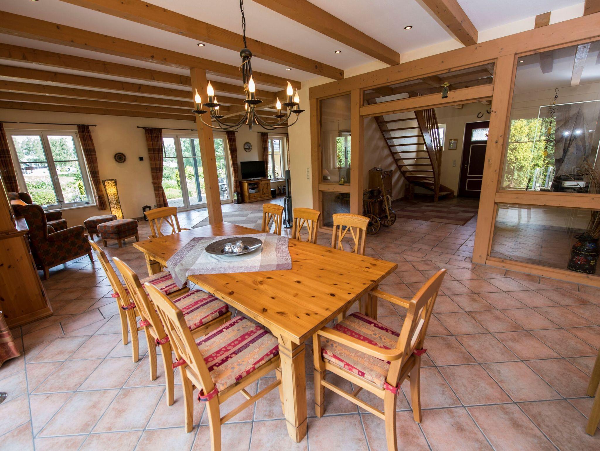 Der Wohnbereich ist komfortabel eingerichtet mit einer großen Eckcouch mit Sessel, einem Kamin, TV, DVD-Player und einer kuscheligen Leseecke mit 2 gemütlichen Ohrensesseln. Im Essbereich gibt es einen großen Esstisch für 6 Personen.