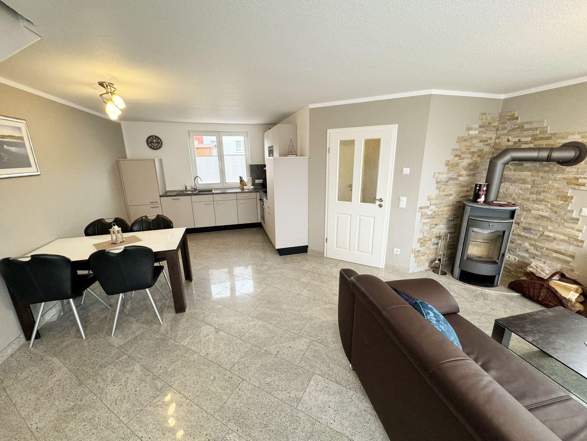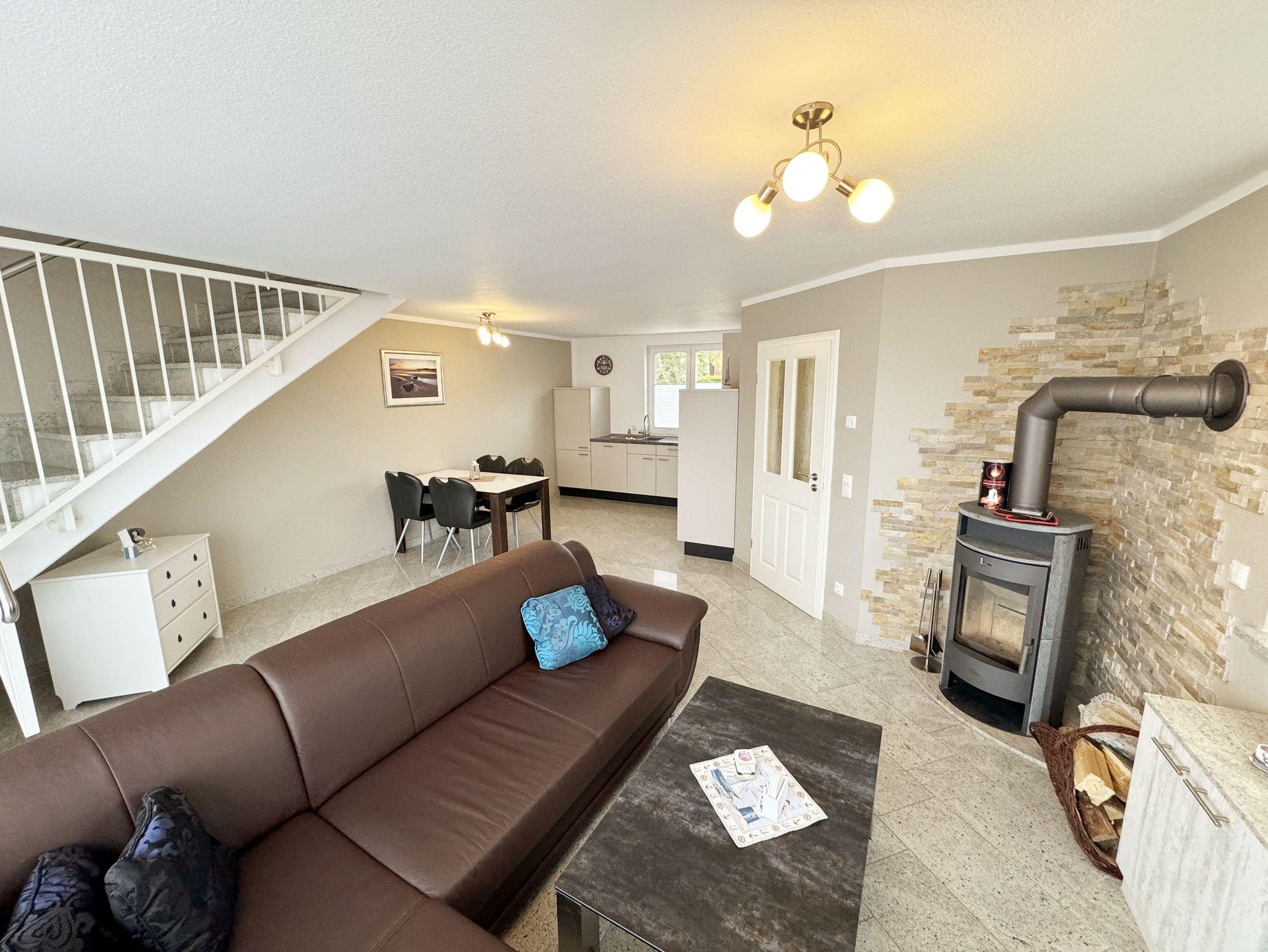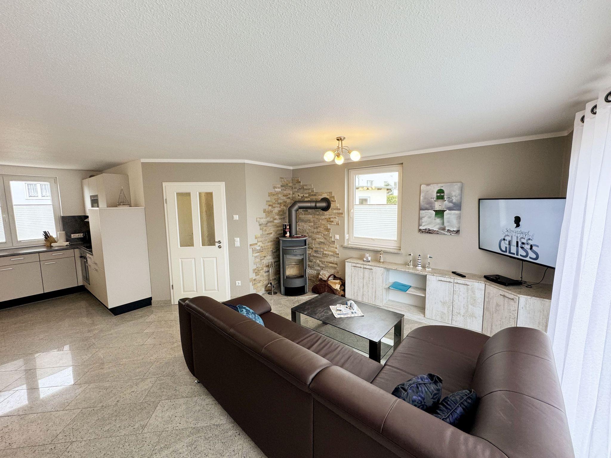 Die Doppelhaushälfte Seebrise ist mit Ihren ca. 75 qm großzügig geschnitten und bietet genügend Platz für bis zu 5 Personen. Die Unterkunft (Nichtraucher) ist auf 2 Ebenen verteilt und verfügt zusätzlich über eine Terrasse mit Bestuhlung und Grill. Im Erdgeschoss verfügt die Doppelhaushälfte Seebrise über einen großen Wohn/Essbereich mit einem Esstisch für 5 Personen, eine gemütliche Couch, Smart-TV mit Blu Ray-Player, DAB-Radio und direkten Zugang über die Schiebetür auf die Terrasse. Auch im Urlaub müssen Sie nicht auf einen Internetanschluss (WLAN) verzichten. Die in dem Wohnbereich integrierte Küchenzeile verfügt über einen Backofen, Ceranfeld, Kühlschrank, Mikrowelle, Geschirrspüler, Spüle und diverse Küchenutensilien. Für die kältere Jahreszeit sorgt ein Kaminofen für gemütliche Abende. Ein Gäste-WC befindet sich im Erdgeschoss. Über die Treppe erreichen Sie das Obergeschoss, wo sich 2 Schlafzimmer, ein Duschbad und ein Wirtschaftsraum mit Waschmaschine und Trockner befindet. Das 1. Schlafzimmer verfügt über ein Doppelbett (1,80m x 2,00m), Kleiderschrank und Kommode. Das 2. Schlafzimmer ist mit einem Einzelbett (0,90m x 2,00m) und einem Tandembett (Einzelbett mit Ausziehfunktion je 0,90m x 2,00m) und einer Kommode ausgestattet. Das großzügig gestaltete Bad verfügt über eine Glasrunddusche, Handtuchtrockner, Waschbecken und WC. Das ganze Haus ist mit einer Fußbodenheizung ausgestattet und komplett mit Natursteinfliesen gefliest. Alle Fenster können durch Außenrollos abgedunkelt werden. Die beiden Schlafzimmer sind mit Laminat versehen. Zu jeder Doppelhaushälfte gehört ein PKW-Stellplatz. Eine Fahrradunterstellmöglichkeit befindet sich auf dem Grundstück. Von der Terrasse aus können Sie den Tag bei einem Gläschen ausklingen lassen und wunderschöne Sonnenuntergänge in Richtung Hafen genießen. Für unsere kleinen Gästen steht 1x Kinderreisebett (ohne Bettinlett und zusätzlicher Matratze) sowie 1x Hochstuhl inklusive zur Verfügung. Es sind keine Haustiere erlaubt! Die Erstausstattung eines Wäschepaketes (komplette Bettwäsche, 1 Duschhandtuch, 1 kleines Handtuch) können Sie bis 14 Tage vor Anreise gegen einen Aufpreis dazu buchen oder durch eigene ergänzen. Ab 2 gebuchten Paketen erhalten Sie einmalig 1 Geschirrhandtuch und 1 Duschvorleger hinzu.