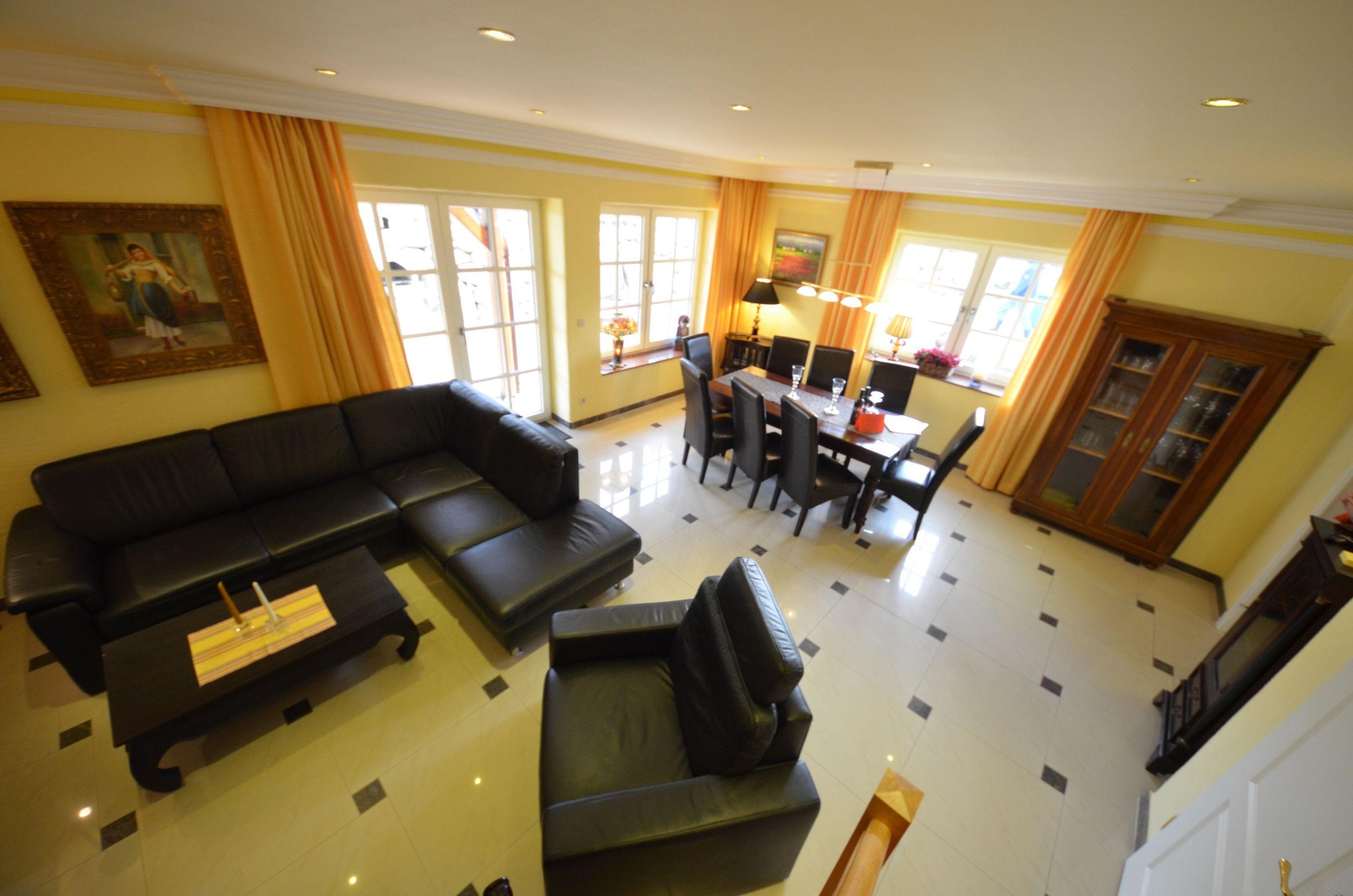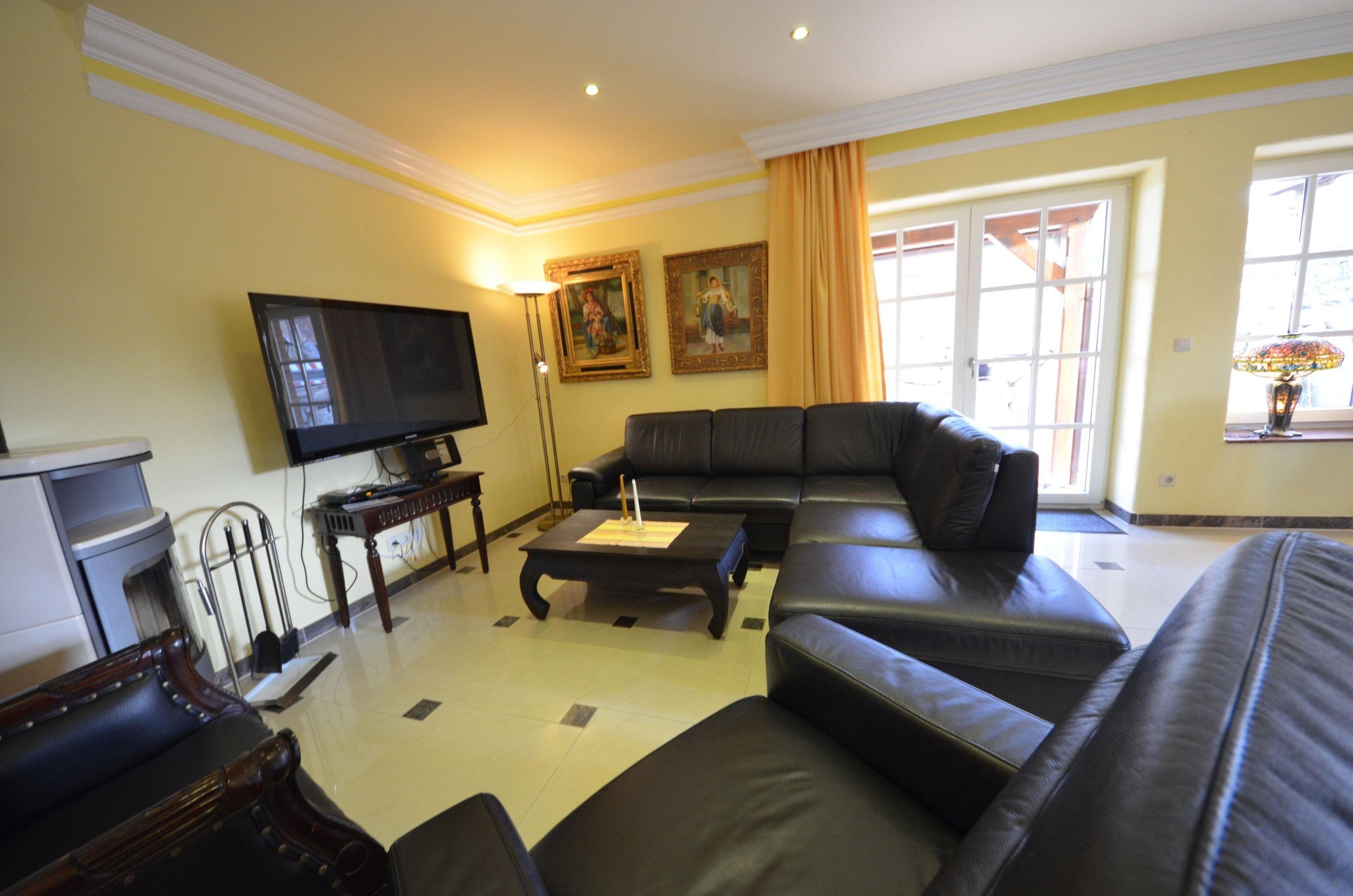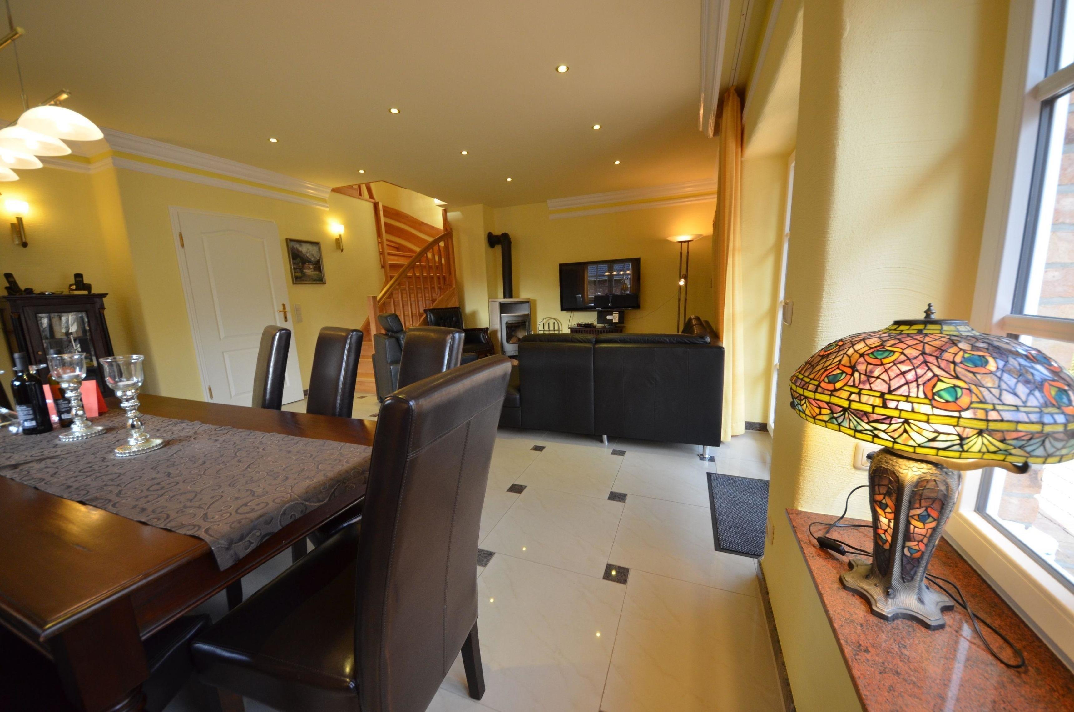 Für 8 Personen, 4 Schlafzi., teils elektr. Rollläden, 4 Granitbäder, große Sauna, Fußbodenheizung 50m² Terrasse, Ledercouch, Hark-Kaminofen, Holz kostenlos ,