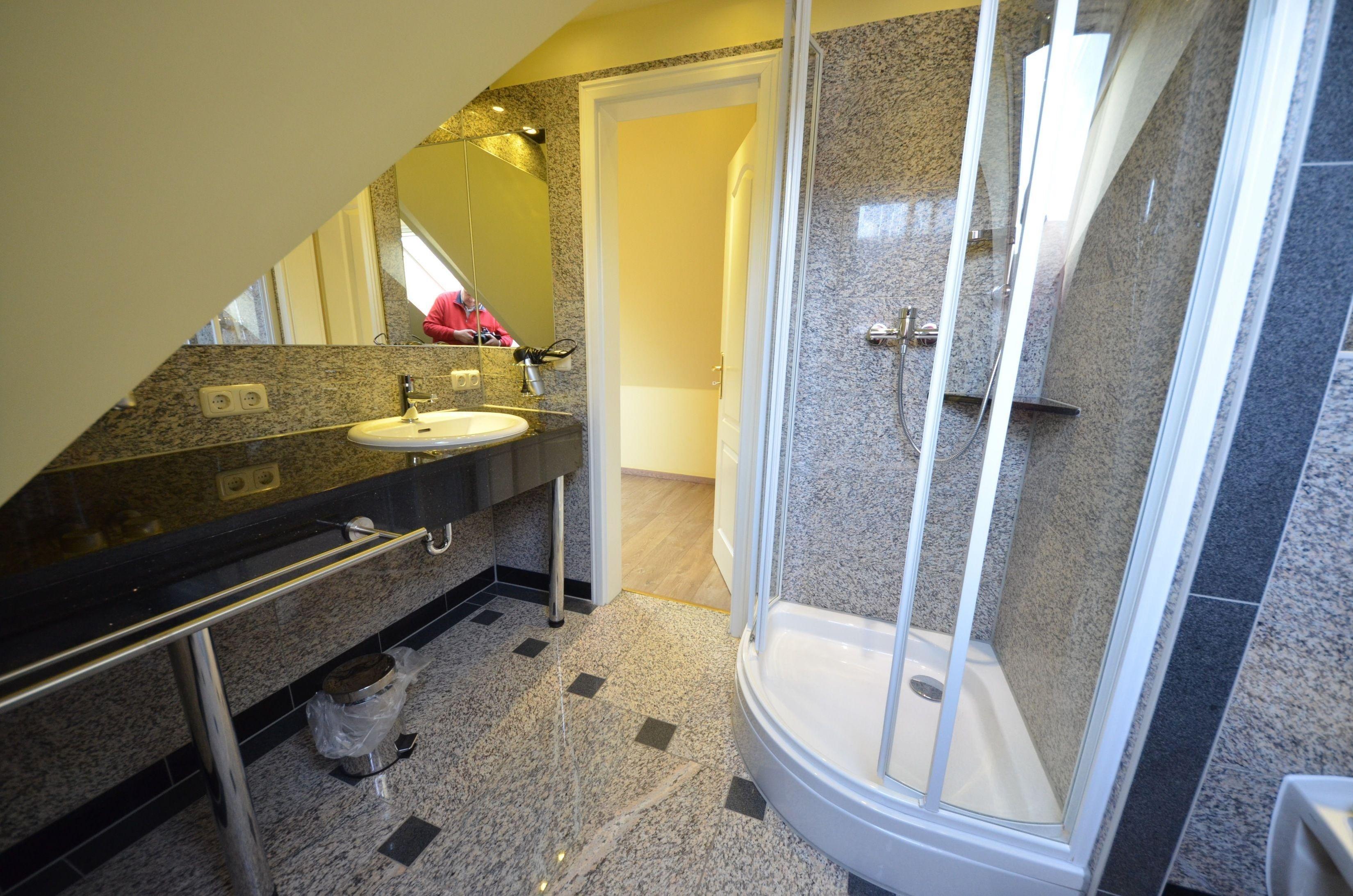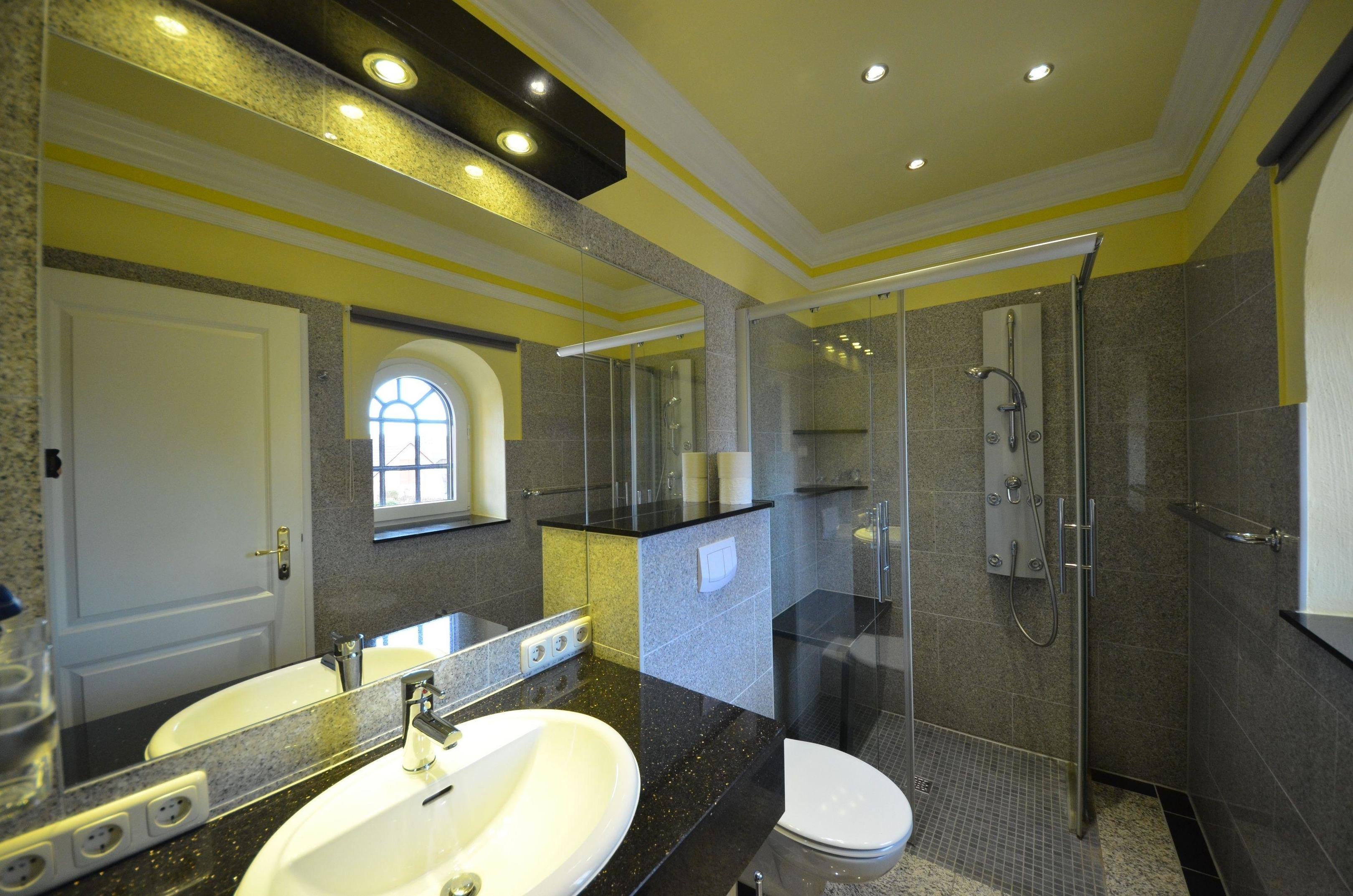 Granit – Abdeckungen, große Spiegel, schöne Sanitärausstattung,