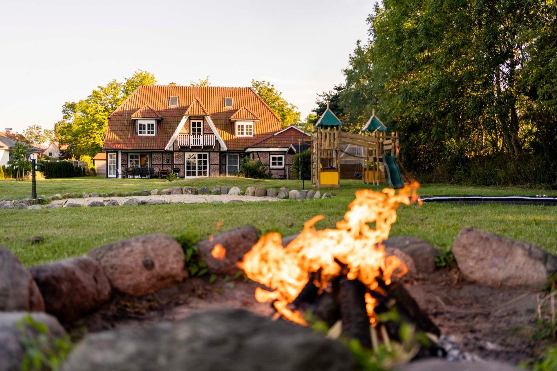 jeden Geschmack etwas dabei ist: ob Spielturm, Sandspielplatz mit Wasserpumpe, bodentiefes Trampolin oder Feuerstelle und Sonnenterrasse! Natürlich ist auch ein Weber Holzkohlegrill vorhanden sowie ein großer Esstisch.