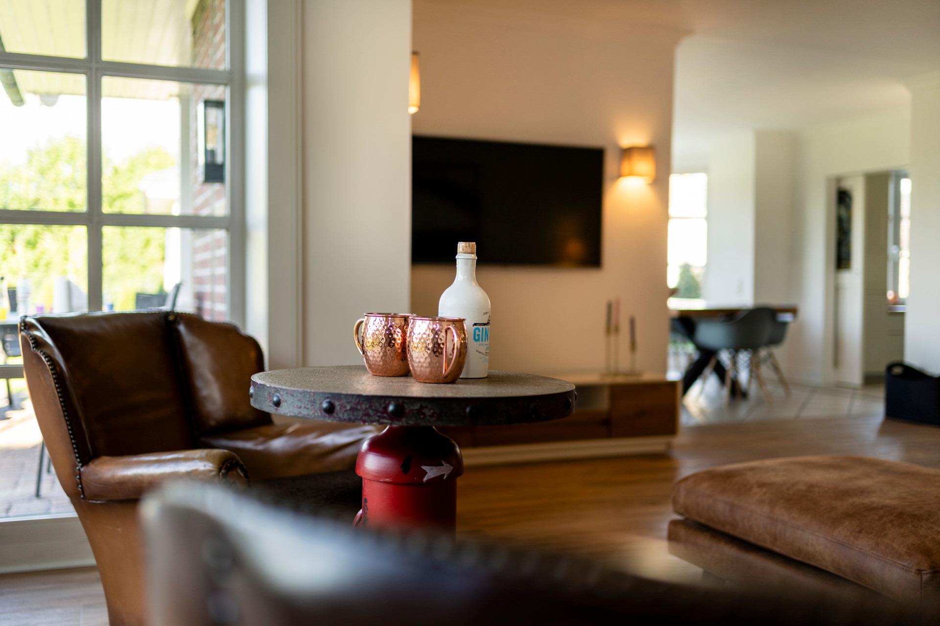 nutzen den oberen Wohn- und Essbereich, der ebenso hochwertig eingerichtet ist.