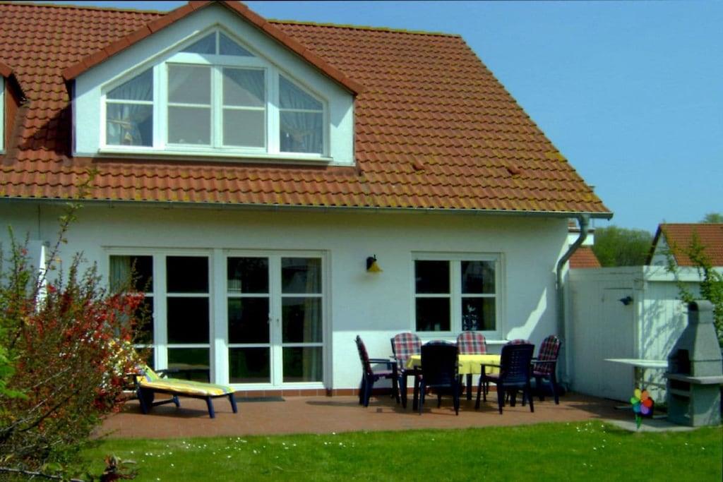 Geräumiges 4-Sterne-Ferienhaus auf Rügen mit Kamin, moderner Küche und Garten für erholsamen Familienurlaub.