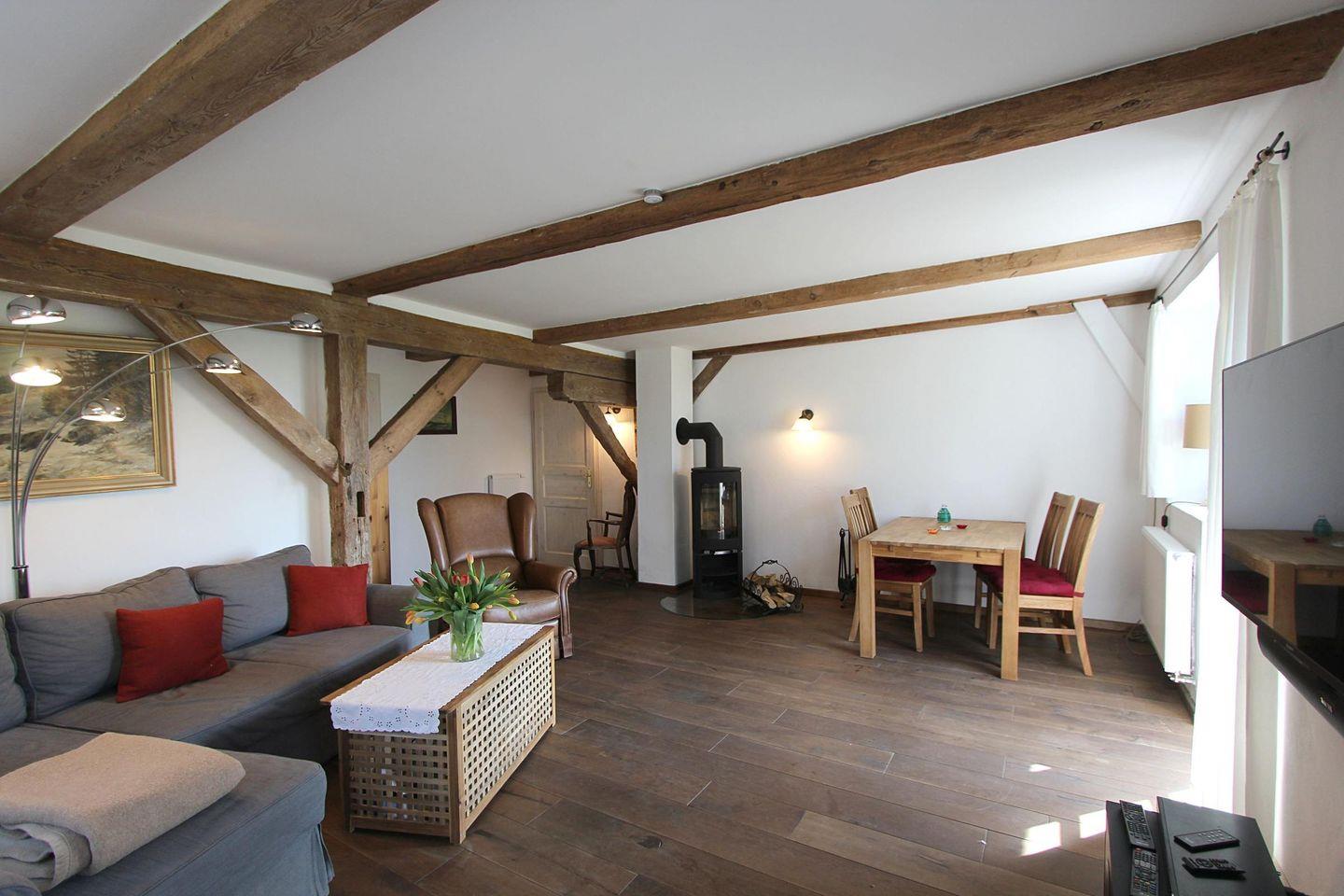 Charmante Ferienwohnung Pfarrhof Rügen mit Garten, Kamin, WLAN und idyllischem Reetdach in Garz auf Rügen.