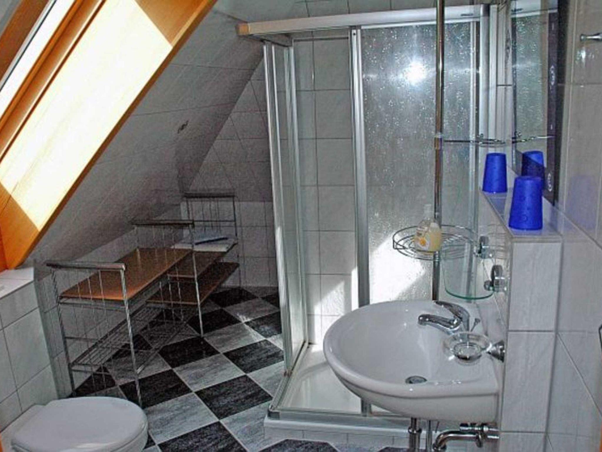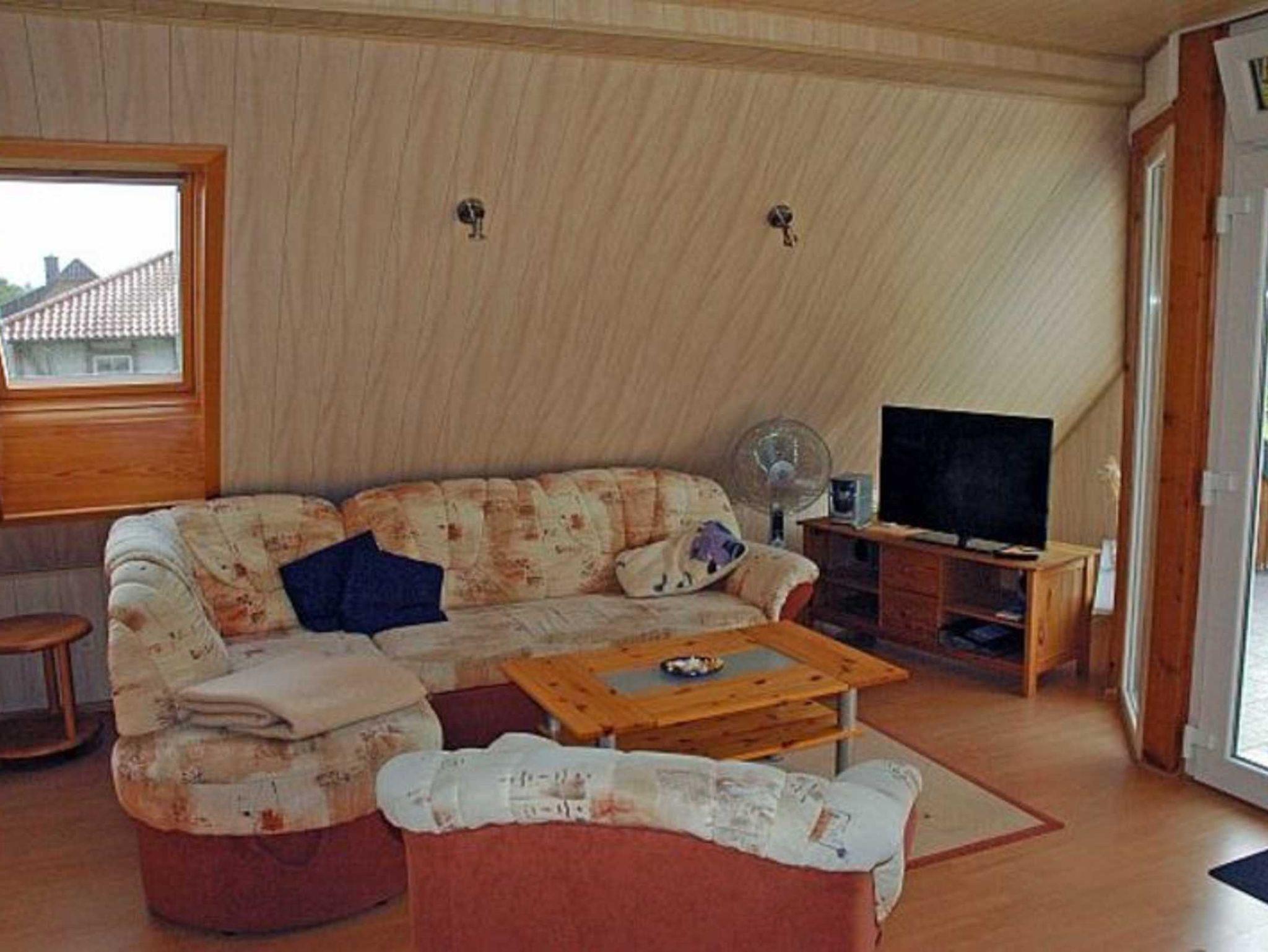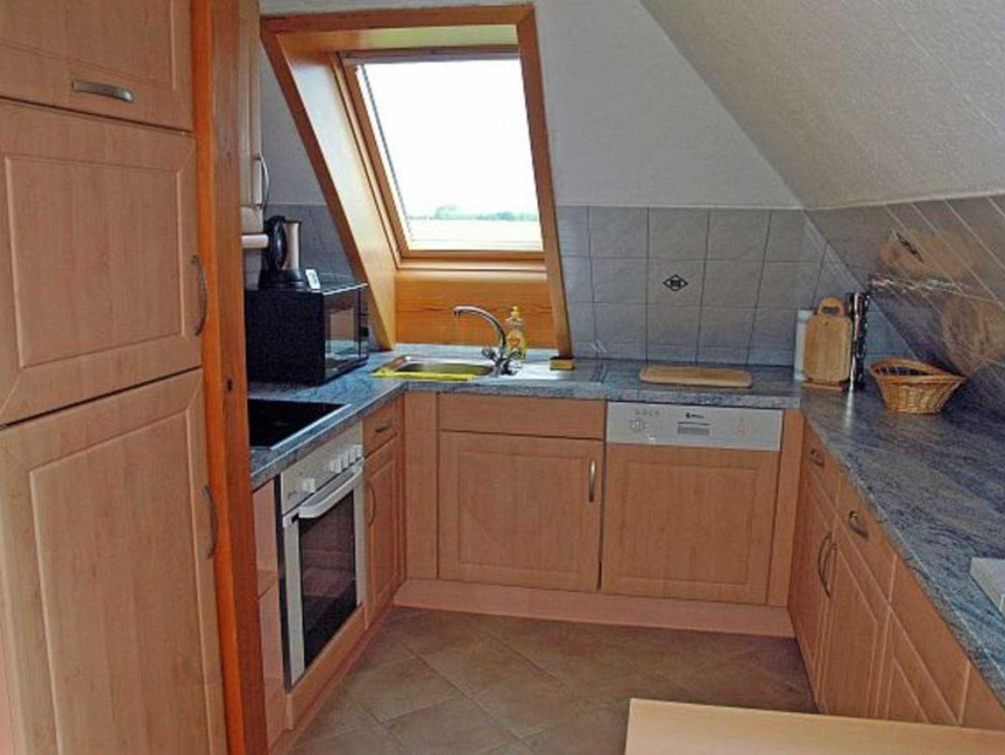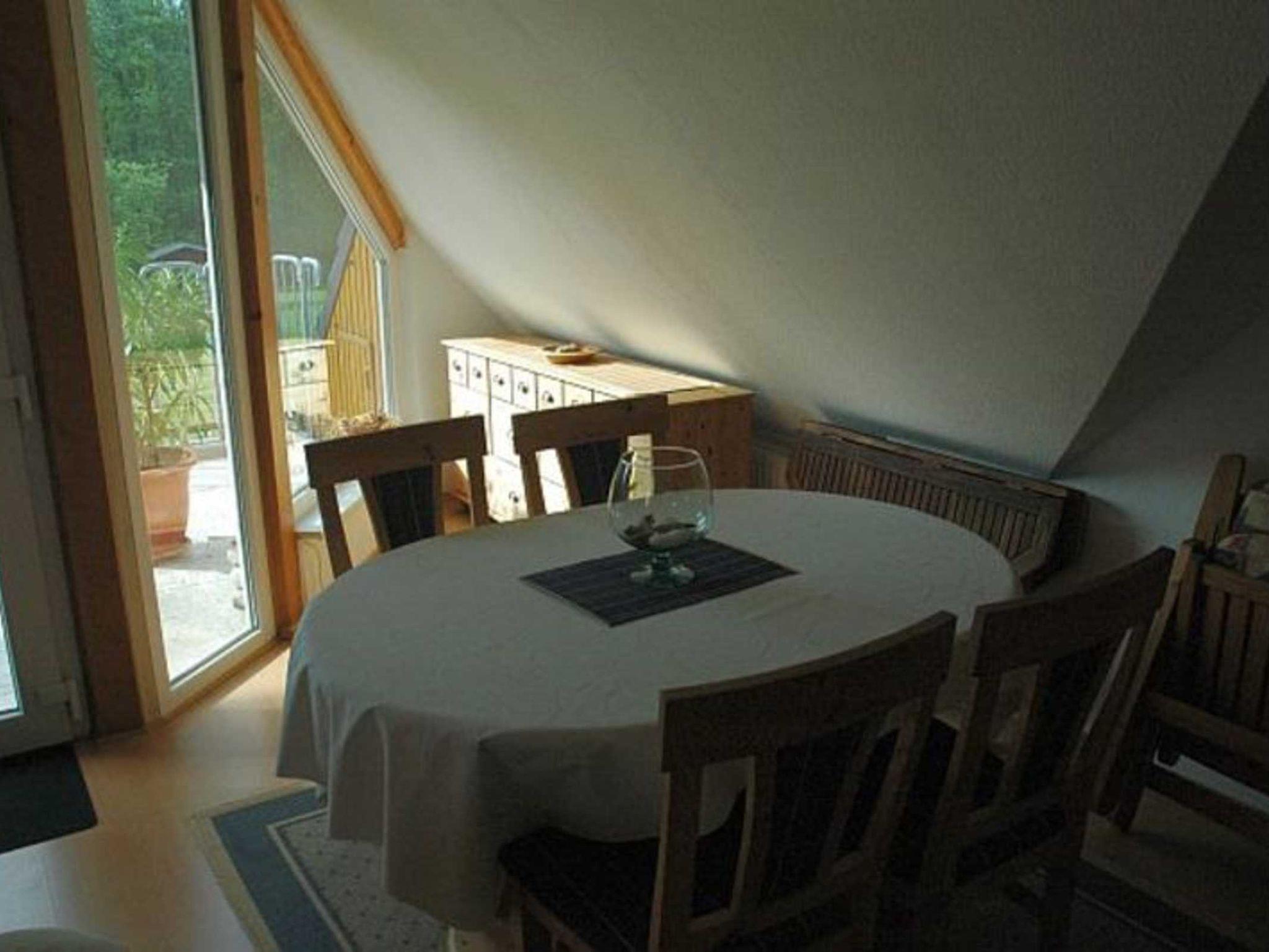 Die Ferienwohnung besitzt einen separaten Eingang über eine Wendeltreppe an der Rückseite des Hauses. Hier haben Sie sehr viel Ruhe und einen wunderschönen Blick auf die Landschaft. Sie ist ausgestattet mit einem großen Wohnzimmer mit gemütlicher Eckcouch, Radio und TV-Satellitenanlage, sowie einem Esstisch. An den Wohnbereich schließt sich eine komfortabel ausgestattete Küche mit Kühl-und Gefrierkombination, Microwelle, E-Herd und Geschirrspüler an. Bad mit Dusche und WC. Das Schlafzimmer hat ein Doppelbett und eine Kinderaufbettung ist auf einer Klappmatratze möglich. Zur Ferienwohnung gehört eine großzügige Sonnenterasse mit Blick auf den Garten.