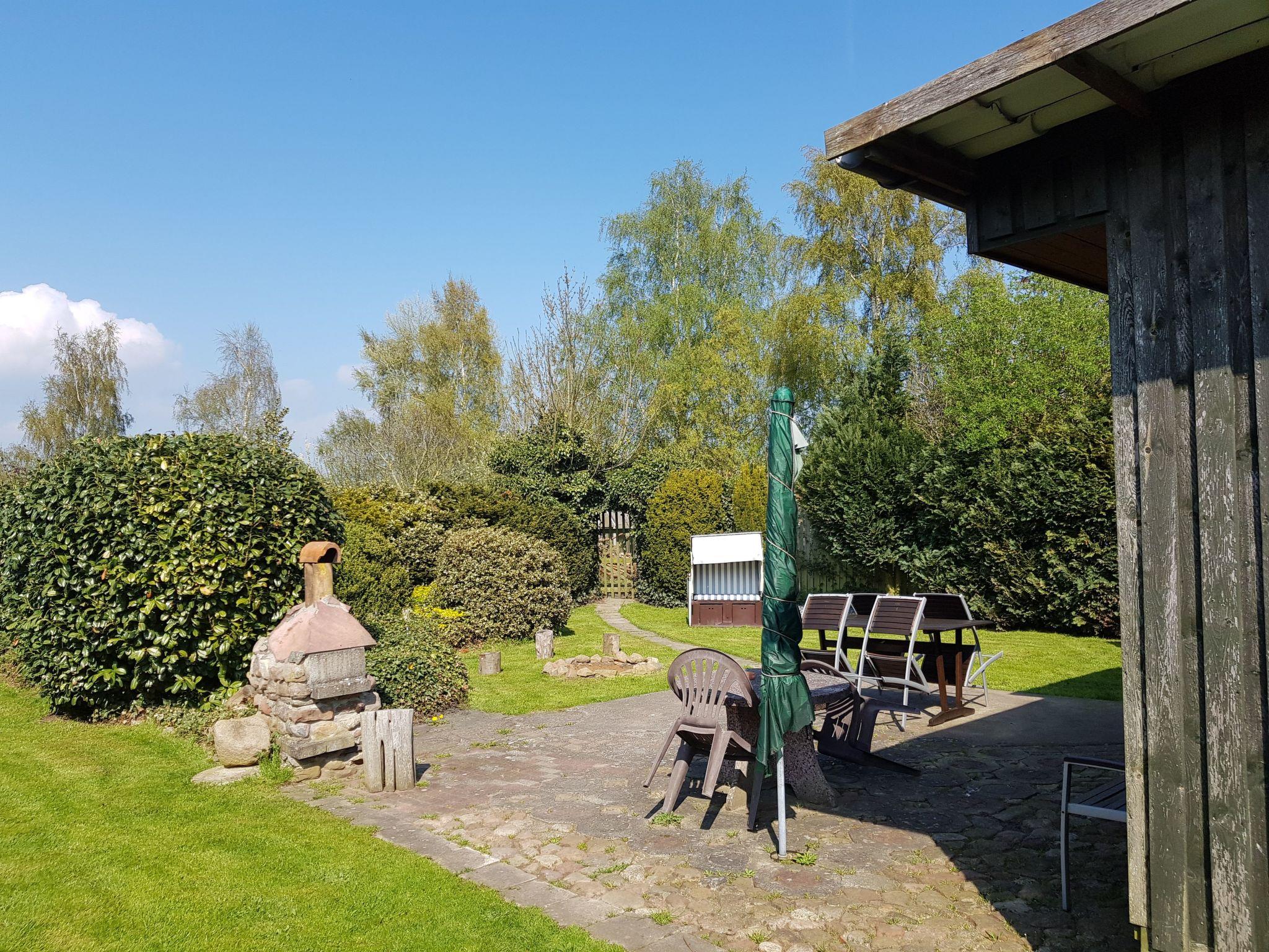 Ins Freie lockt eine sonnenreiche Terrasse mit Kamin-Holzkohlegrill, Feuerplatz, Strandkorb und Liegestühlen. Auch ein Stellplatz für Fahrräder ist vorhanden. Das abgeschlossene Grundstück ist sowohl für Kinder als auch für Hunde geeignet und bietet ausreichend Platz und Spielmöglichkeiten. Ein privater Parkplatz steht ebenfalls für Sie bereit.