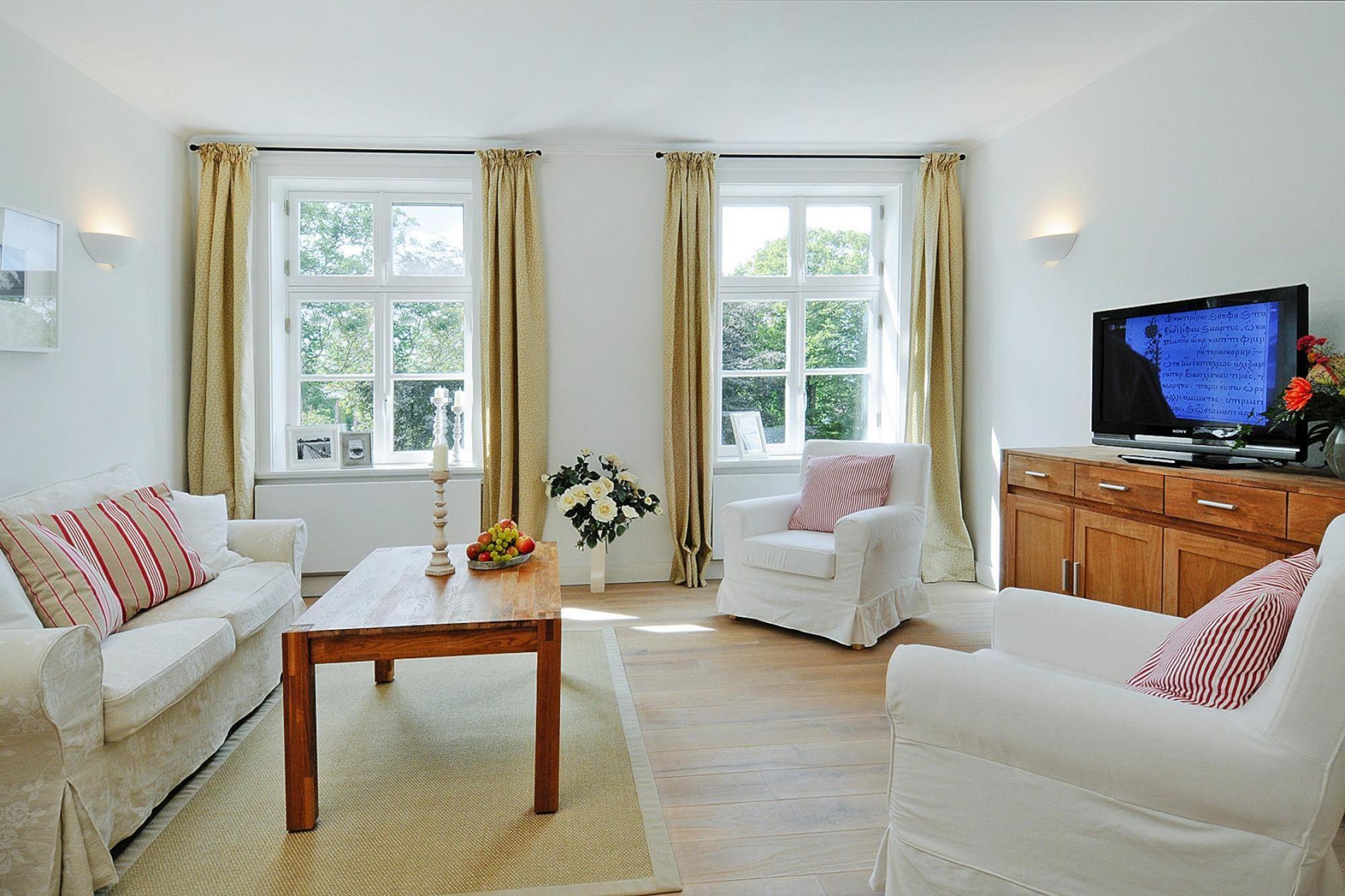 Luxuriöse 5-Sterne-Ferienwohnung im historischen Gutshaus Zicker auf Rügens idyllischer Halbinsel Zudar, 600 m von der Ostsee entfernt.