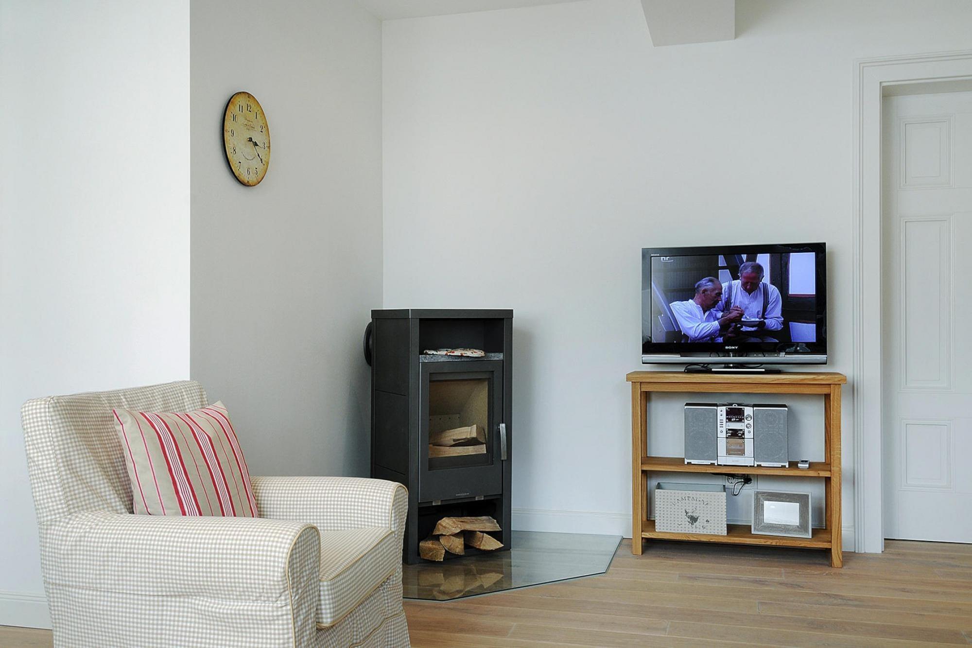 In der 1. Etage: (Küche(Toaster, Kochherd(4 Kochplatten, Ceranfeld), Kaffeemaschine, Backofen, Mikrowelle, Spülmaschine, Kühlschrank(+ Gefrierfach)), Wohn/Esszimmer(TV(Satellit), Esstisch(6 Personen), Kaminofen, Radio, CD-Spieler), Schlafzimmer(Einzelbett, Einzelbett, Einzelbett), Schlafzimmer(Doppelbett), Badezimmer(Dusche, Waschbecken, Toilette), Badezimmer(Badewanne, Waschbecken, Toilette)) Trockner(Gemeinschaftliche Nutzung mit anderen Gästen, gegen Gebühr), Waschmaschine(Gemeinschaftliche Nutzung mit anderen Gästen, gegen Gebühr), Garten(Gemeinschaftliche Nutzung mit anderen Gästen), Fahrradabstellraum(Gemeinschaftliche Nutzung mit anderen Gästen), Gartenmöbel, Grill, Parkplatz, Hochstuhl, Babybett (kostenlos), Wäschepaket inklusive