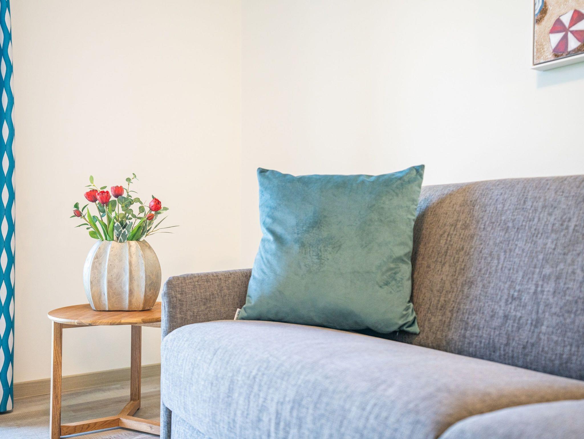 Informationen für Gäste mit Mobilitätseinschränkung: Der Zugang vom Carportstellplatz bis zum Hauseingang ist barrierefrei gestaltet. Direkt vor dem Haus befindet sich eine Kurzzeitparkfläche, die für Be- und Entladevorgänge genutzt werden kann. Die Distanz von der Carportanlage bis zur Hauseingangstür beträgt etwa 30 Meter. Die Breite der Haustür beträgt 100 cm und weist eine Schwelle von etwa 1,5 cm Höhe auf. Der Aufzug im Treppenhaus bedient alle Etagen des Hauses, einschließlich des Freizeit- und Saunabereichs im Untergeschoss. Die Türbreite des Aufzugs beträgt 90 cm, die Tiefe liegt bei 130 cm. Die schwellenlose Wohnungstür weist eine Breite von 90 cm auf. Die Breiten der schwellenlosen Zimmertüren liegen bei 80 cm (Ausnahme: Türbreite von der Abstellkammer beträgt 70 cm). Der schwellenlose Duscheingang im en suite Badezimmer weist eine Breite von 90 cm auf, die Tiefe liegt bei 200 cm. Auf Wunsch kann ein Duschhocker kostenfrei zur Verfügung gestellt werden. Die Waschtische sind nicht unterfahrbar und Haltegriffe sind nicht in den Badezimmern vorhanden. Der Duscheingang im zweiten Badezimmer weist eine Breite von 80 cm auf. Die Höhe der Duschtasse beträgt 2 cm. Die Betten weisen eine Höhe von 65 cm auf und sind unterfahrbar (max. 10 cm). Die Balkonschiebetür lässt sich auf eine Breite von 130 cm öffnen, die Höhe der Schwelle beträgt 1,5 cm. Die Sauna im Untergeschoss ist schwellenlos erreichbar. Die Schwelle am Saunaeingang beträgt 10 cm, die Breite der Saunatür beträgt 60 cm. Die Breite der Tür zum Ruheraum beträgt 90 cm und weist eine Schwelle von etwa 2 cm auf.