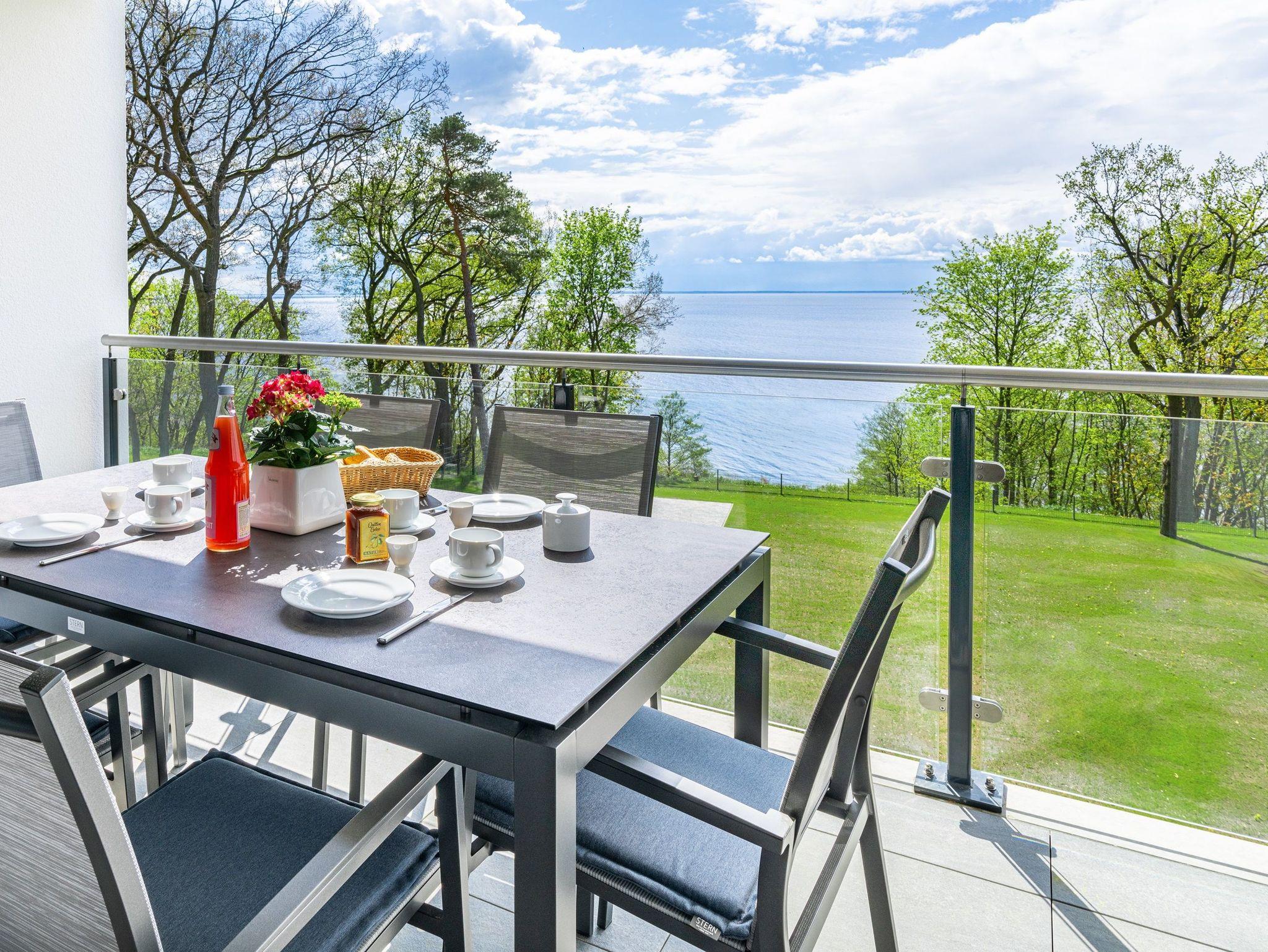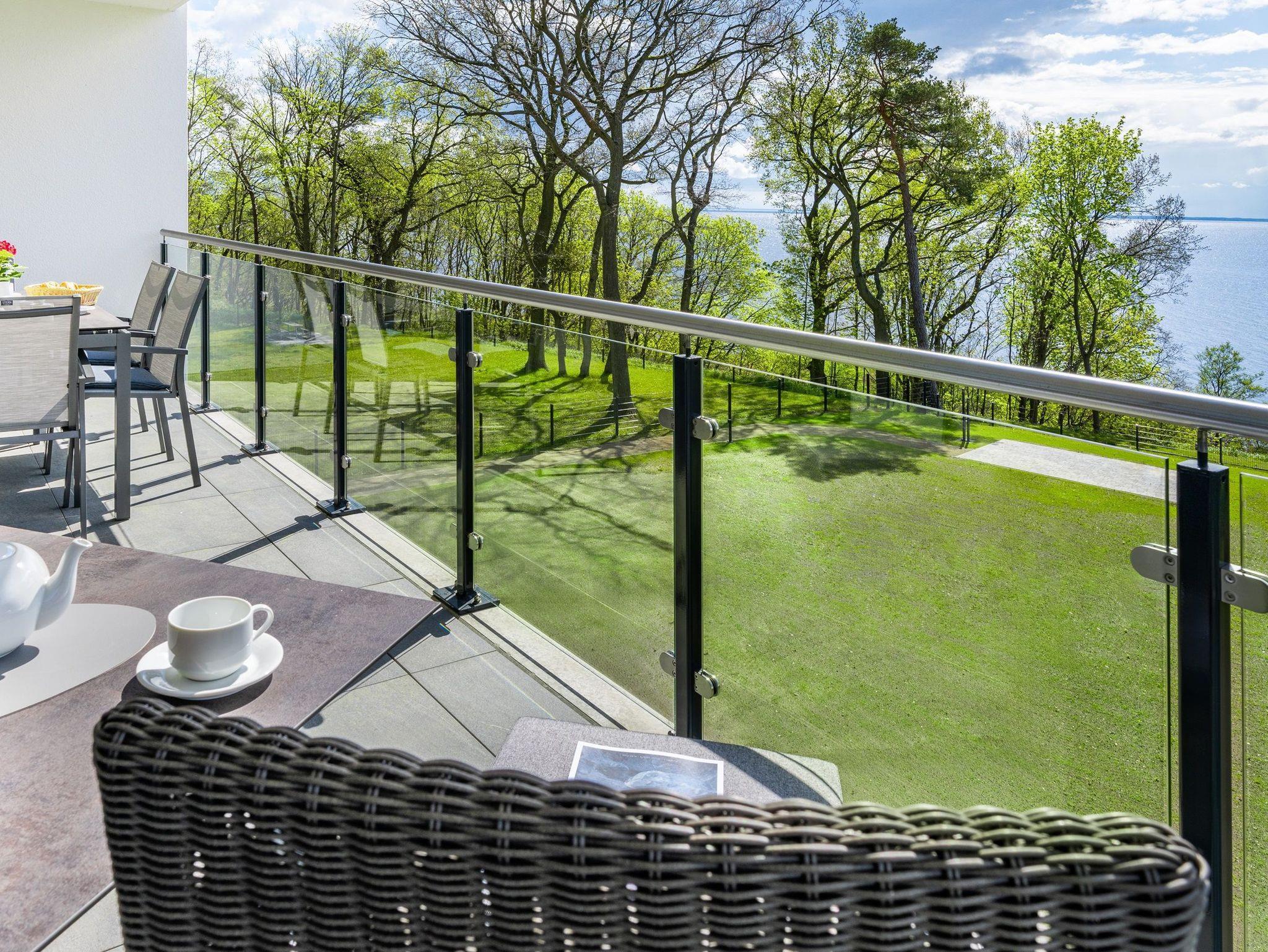 Freuen Sie sich auf den atemberaubenden Meerblick auf das Stettiner Haff vom 18 m² großen, überdachten Sonnenbalkon, der schnell Ihr Lieblingsplatz in diesem Ferienapartment wird.