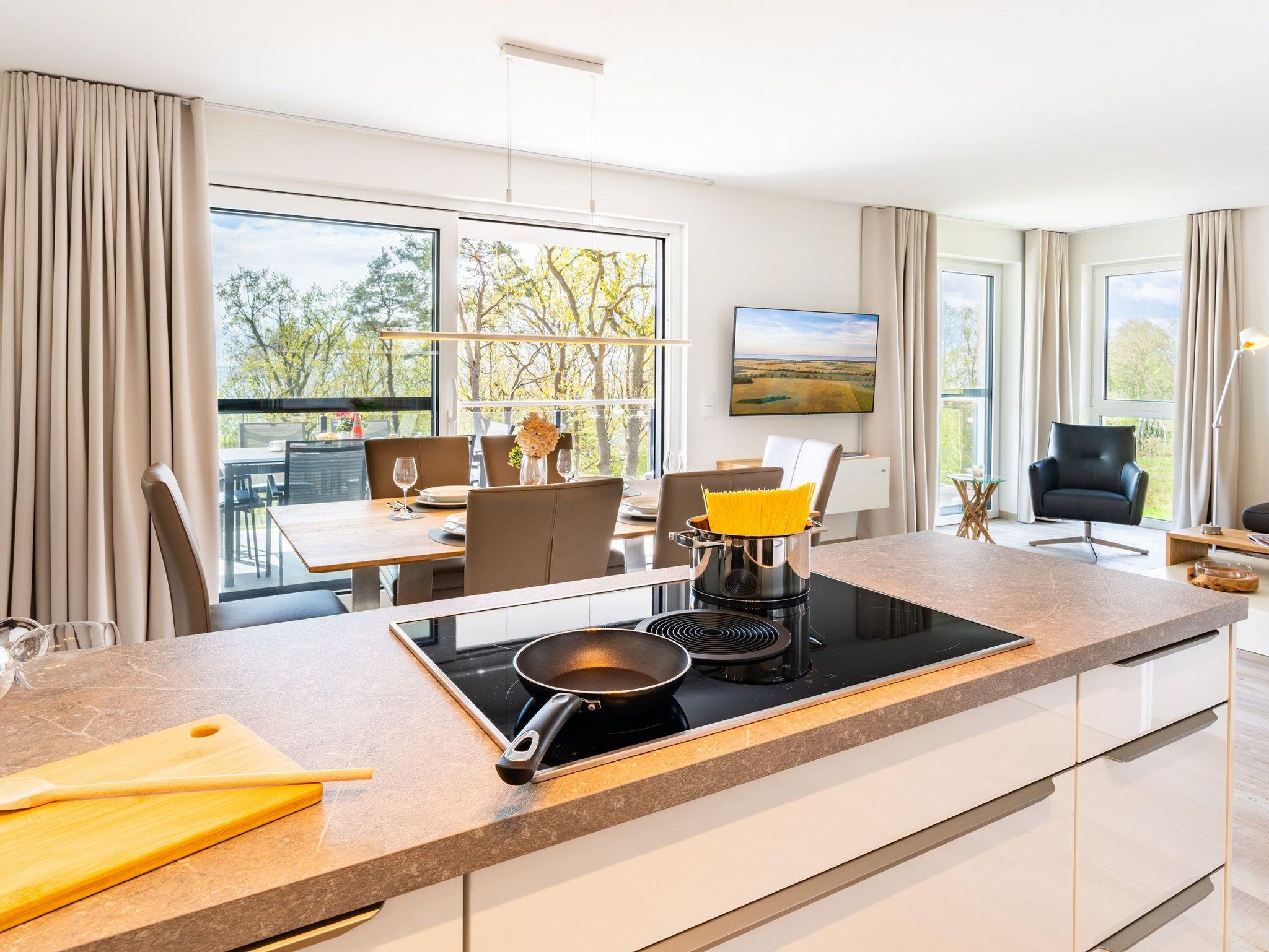 Das Induktionskochfeld mit Bora-Abzug ermöglicht Ihnen beim Kochen einen ungestörten Blick auf das Wasser ? einfach fantastisch!