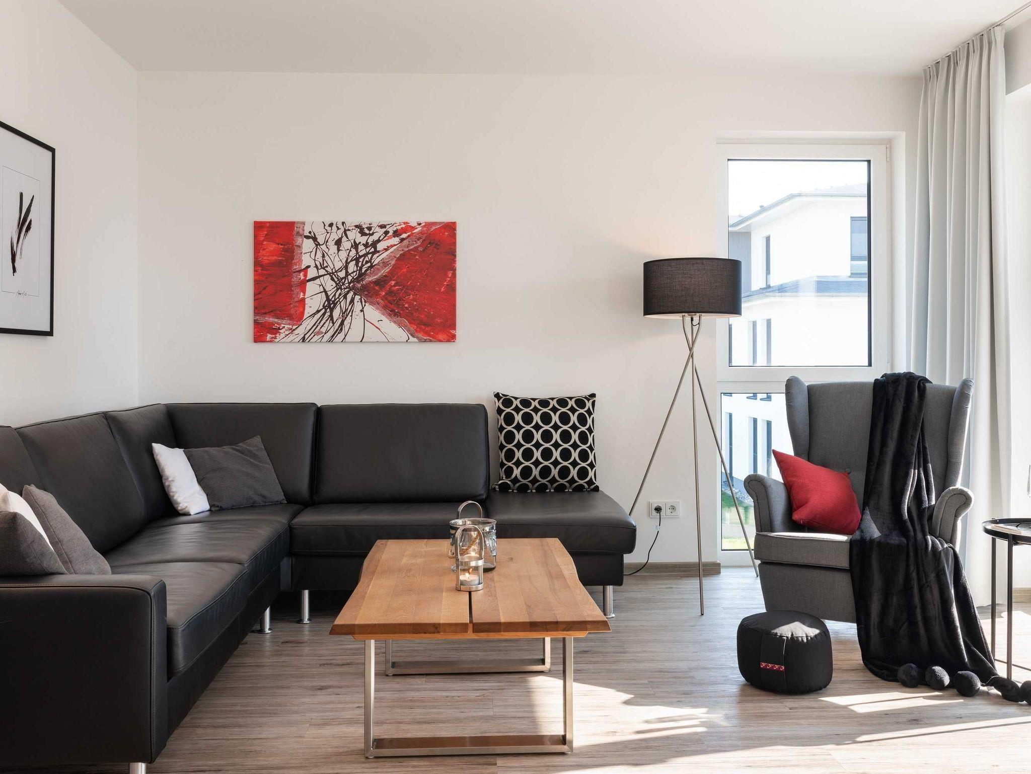 Die Wohnung ist modern eingerichtet mit offenem Wohn-Essbereich, großem Esstisch, Ledersofa sowie Flat-TV (inkl. Sky-Abo). Die hochwertig ausgestattete Küche, offen zum Wohnbereich, lässt keine Wünsche offen. Erholsamer Schlaf in den beiden Schlafzimmern mit Boxspringbetten und Flat-TV ist garantiert. Im dritten Schlafzimmer befindet sich ein komfortables Schlafsofa (Liegefläche: 1,80 x 2,00 m) und Flat-TV. Das Badezimmer en Suite ist mit einer begehbaren Dusche ausgestattet. Das zweite Badezimmer liegt dem zweiten Schlafzimmer gegenüber.
