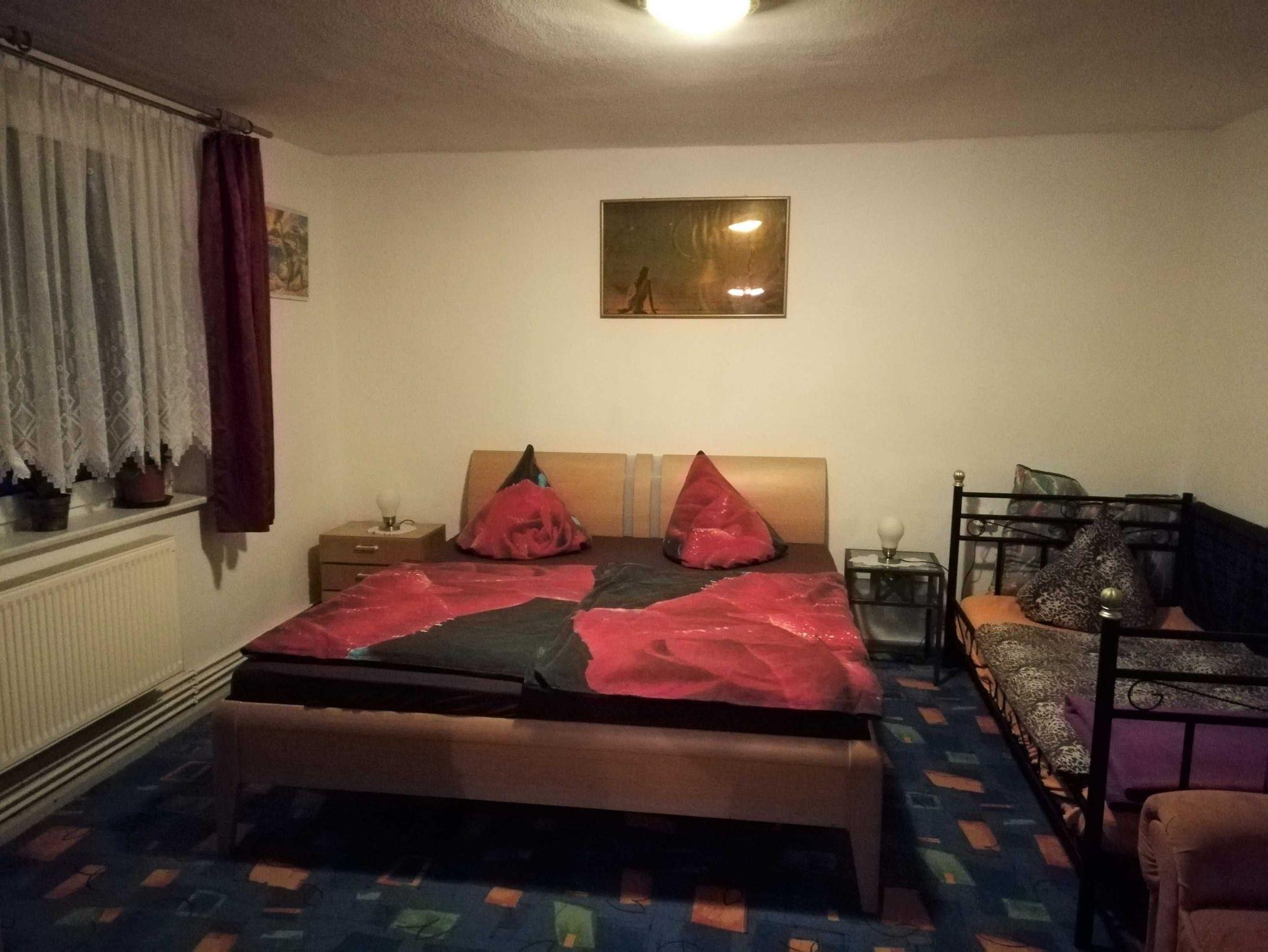 Die Ferienwohnungen ist einfach ausgestattet und bestehen aus einem Wohnzimmer (Radio und TV) und einer Küche mit Esstisch (Elektroherd mit Backofen, Toaster und Kaffeemaschine), einem Schlafzimmer mit Doppelbett und einem Bett für eine dritte Person, die Aufbettungsmöglichkeit besteht aus einem zusätzlich aufzustellendem Beistellbett. Ein geräumiges Bad mit Du/WC sowie einer Waschmaschiene steht zu Ihrer Verfügung. Satelliten TV, Abstellplatz für den PKW auf dem Grundstück und Terrasse mit Gartenbestuhlung gehören selbstverständlich zur Grundausstattung der Ferienwohnungen.