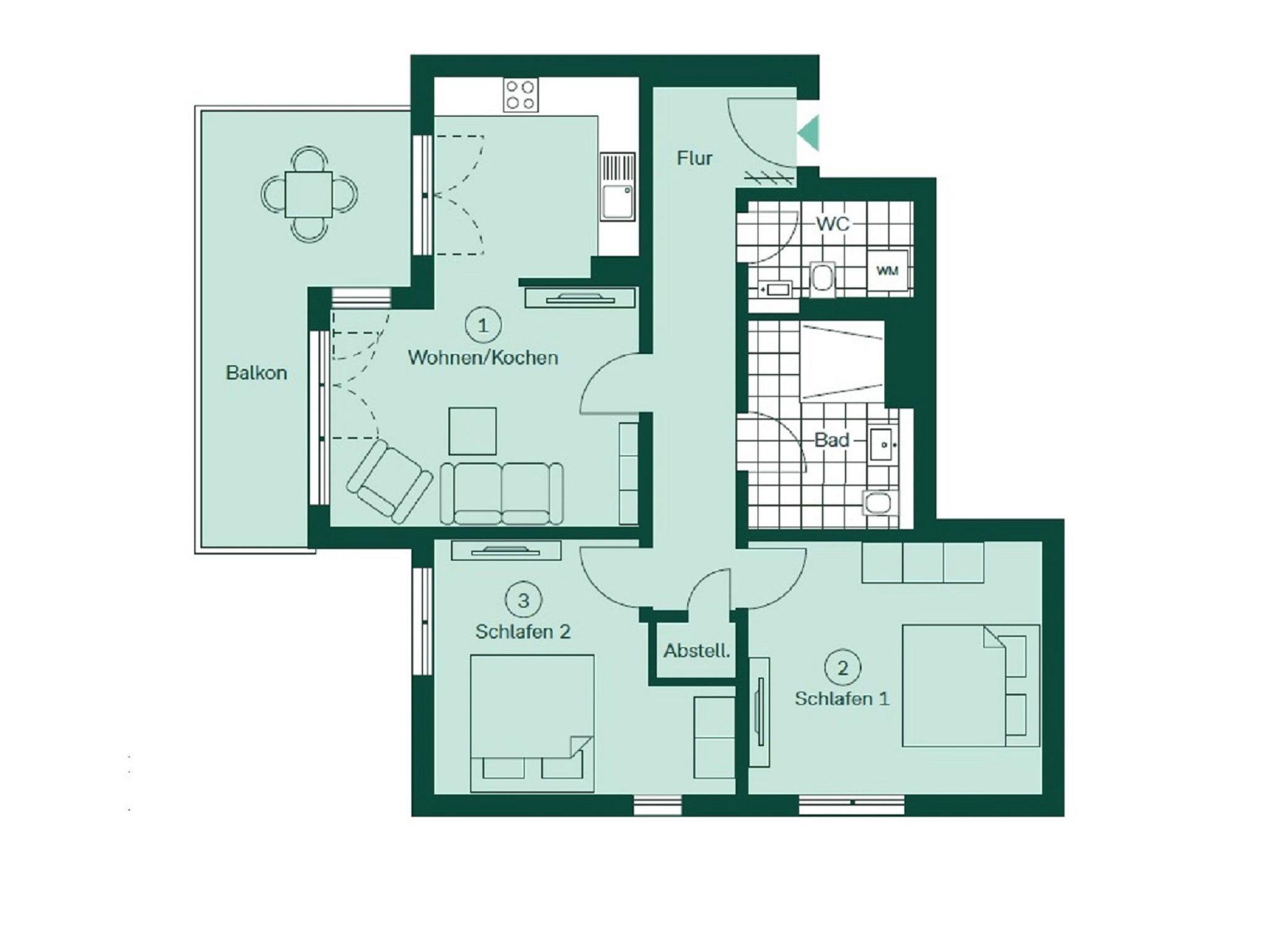 Dieses großzügige Ferienapartment befindet sich in der zweiten Etage (Aufzug vorhanden) des im Jahre 2023 erbauten Gebäudes Nummer 3a und weist viele barrierefreie Merkmale auf.