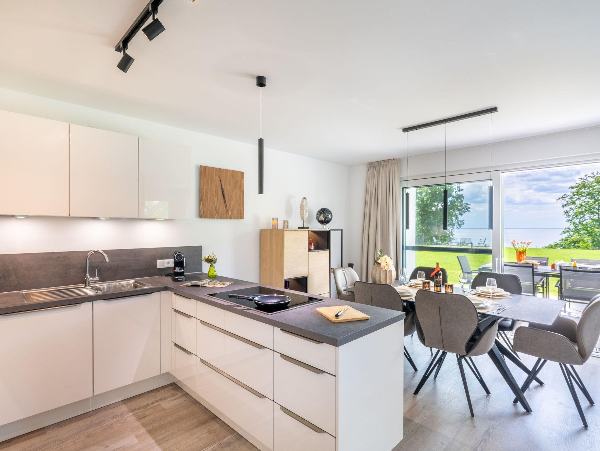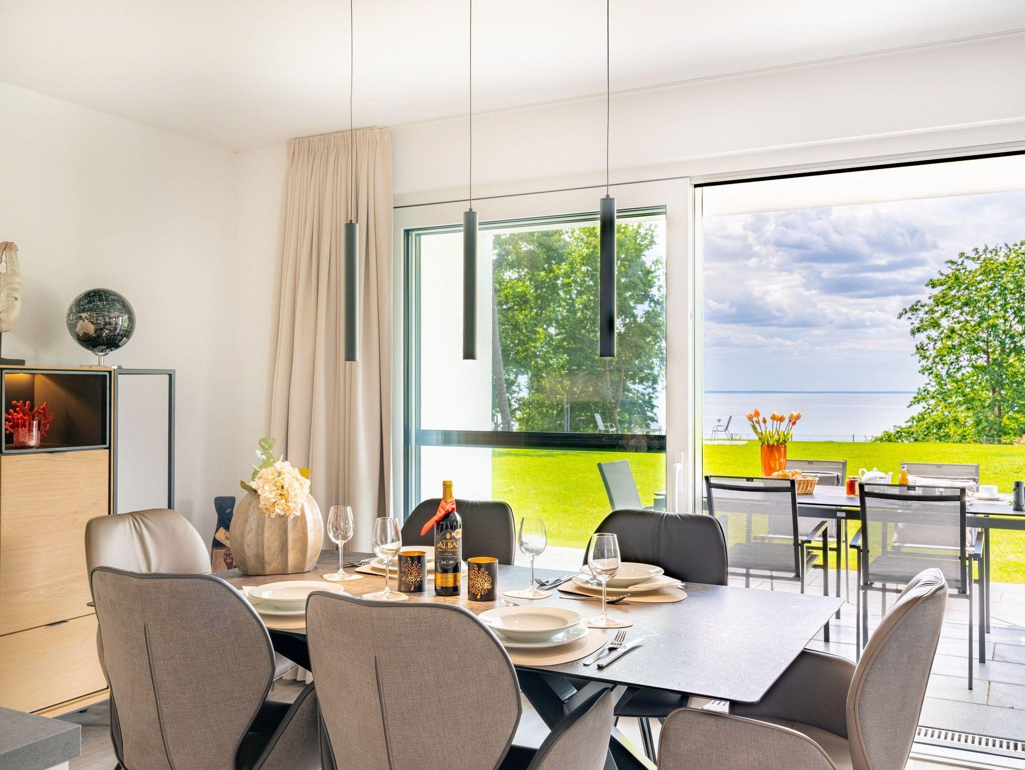 Das Induktionskochfeld mit Bora-Abzug ermöglicht Ihnen beim Kochen einen ungestörten Blick auf das Wasser ? einfach fantastisch!