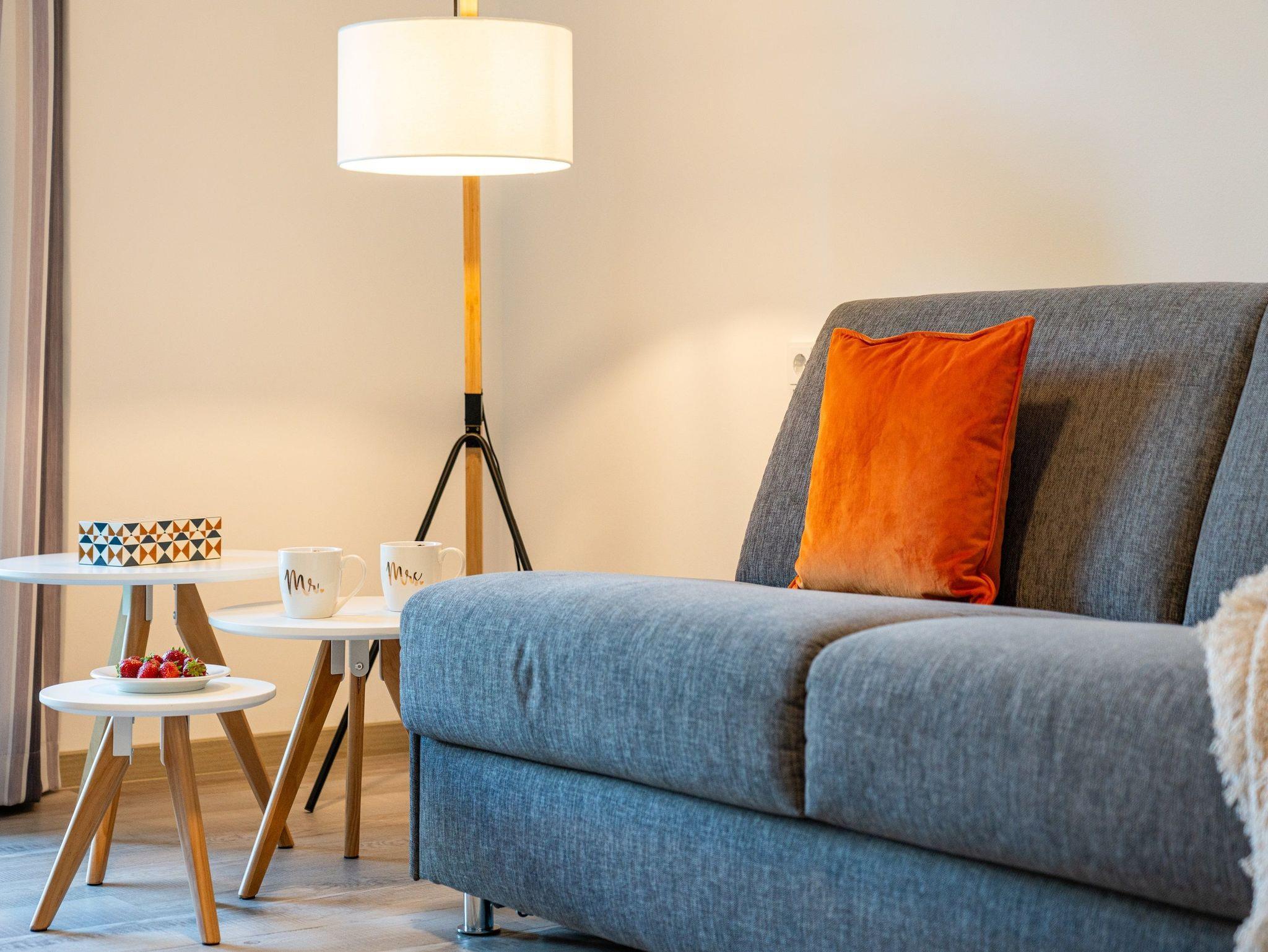 Ihre Gäste oder Kinder finden im dritten Schlafzimmer auf dem äußerst komfortablen Schlafsofa mit Lattenrost und Bultex-Matratze (160 x 200 cm) erholsamen Schlaf. Auch dieses Zimmer ist mit einem Kleiderschrank und einem Smart-TV ausgestattet.