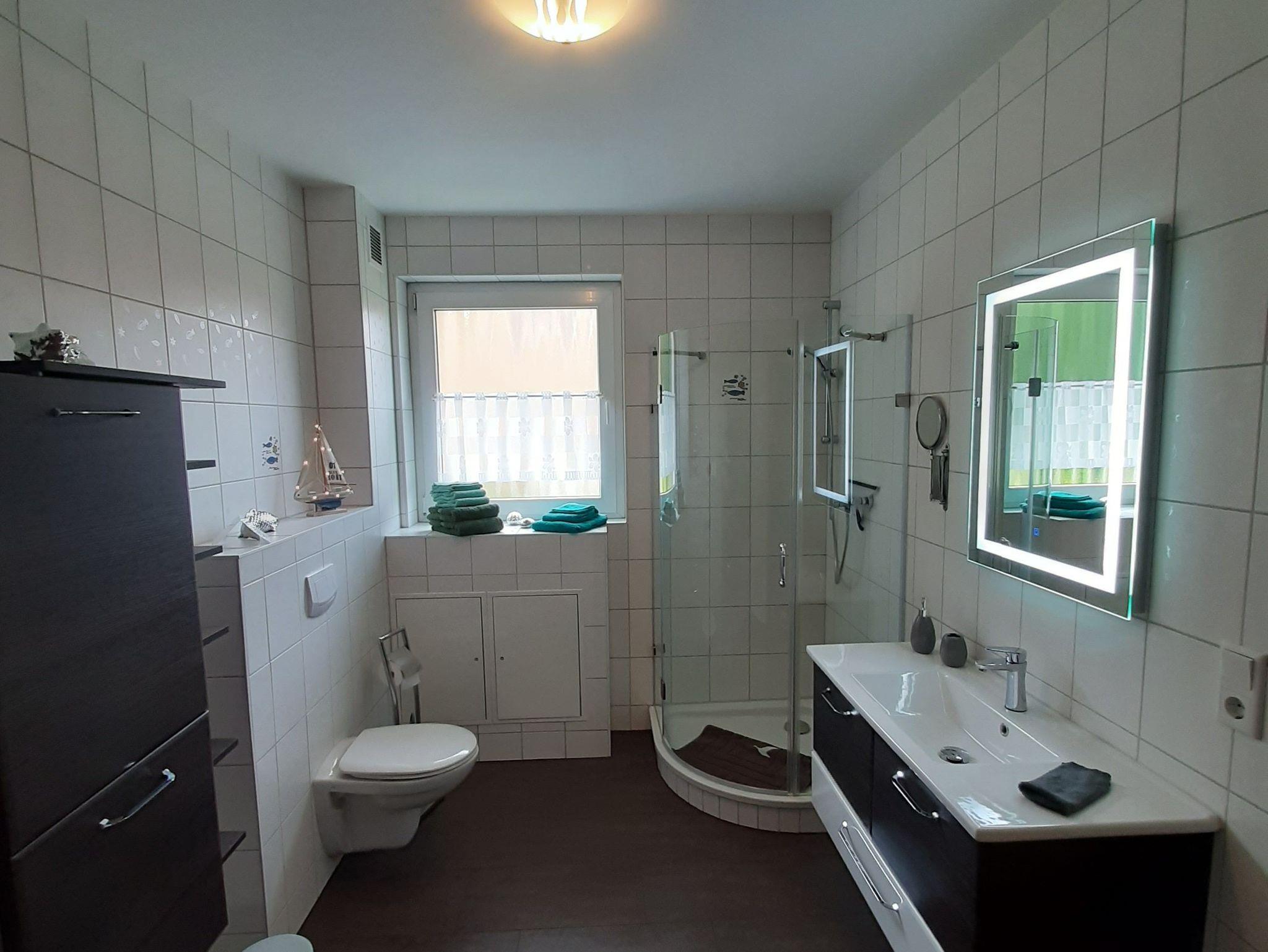 Gemütliche 4-Sterne Wohnung im Erdgeschoss mit 3 Schlafräumen (eines mit Doppelbett, das zweite mit zwei Einzelbetten, das dritte mit einem Einzelbett), großzügigem Bad und Wohnküche sowie Terrasse und Garten zur Belegung bis 5 Personen.