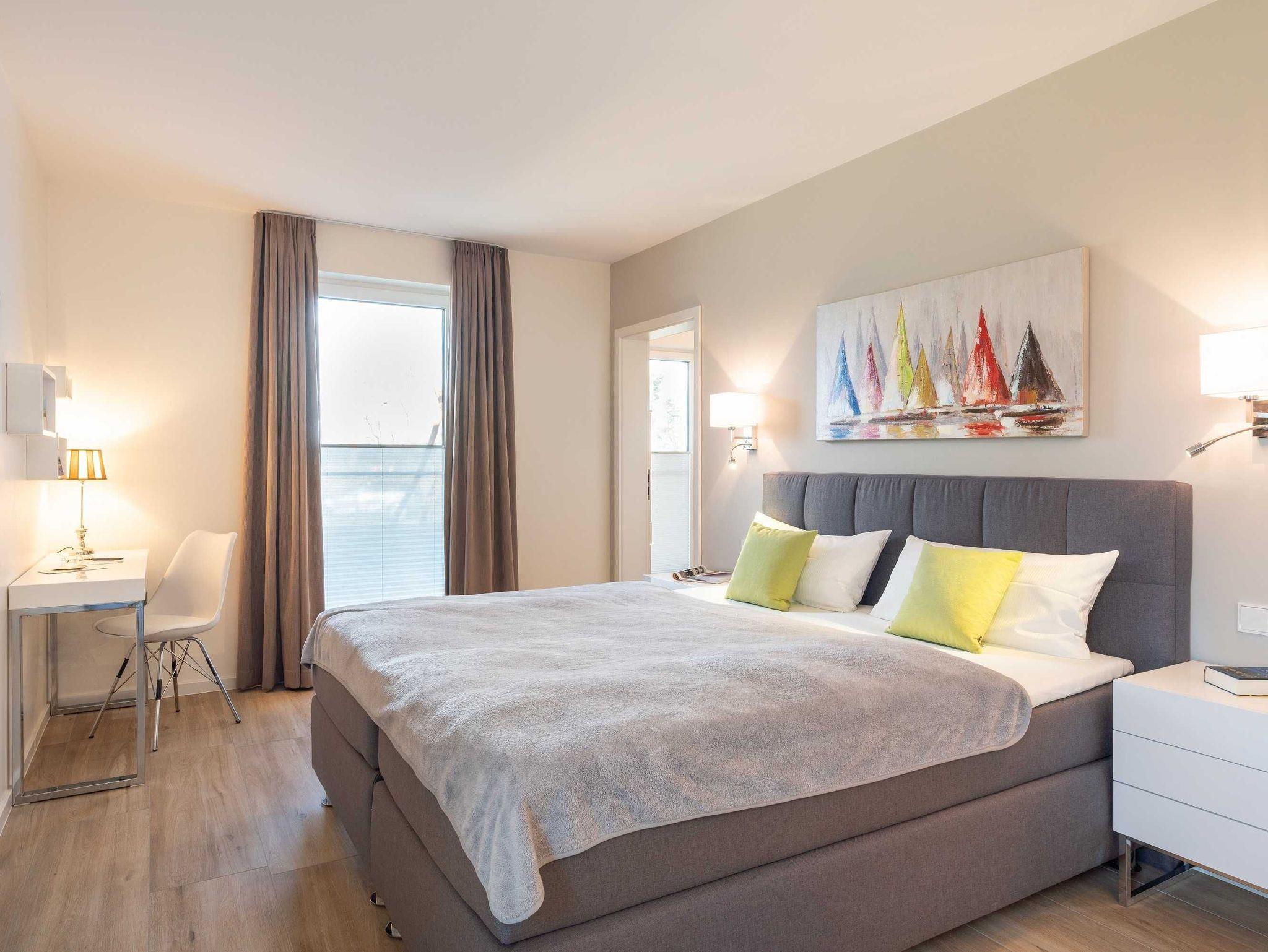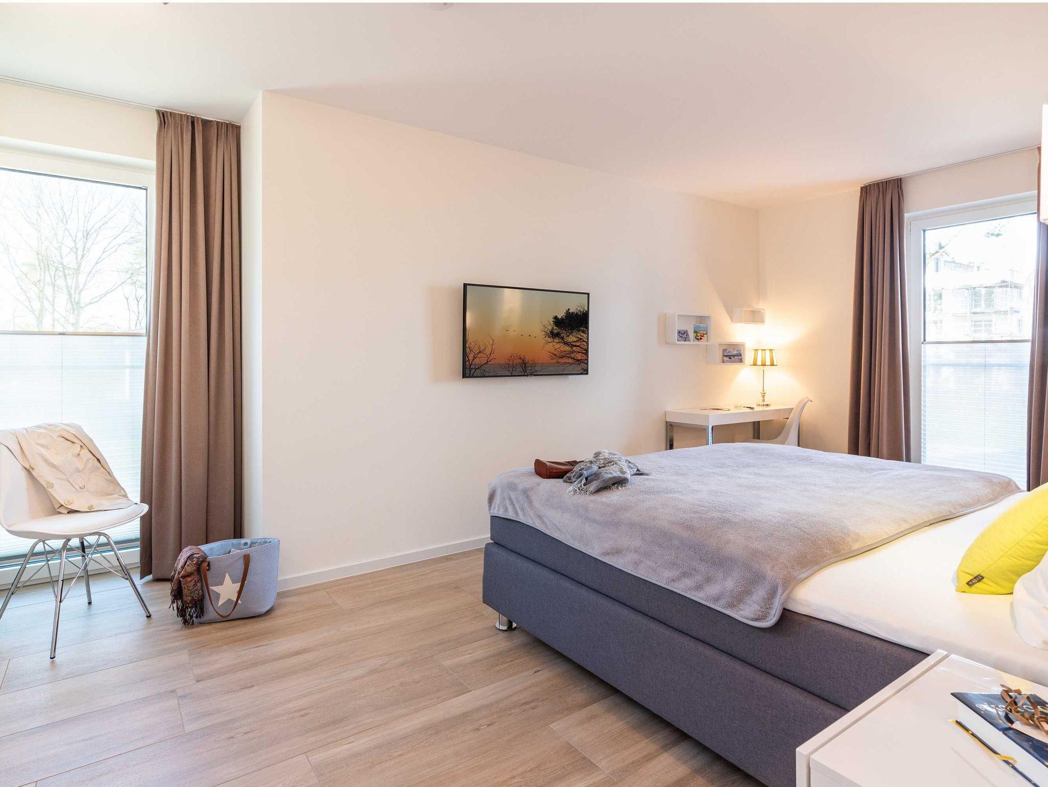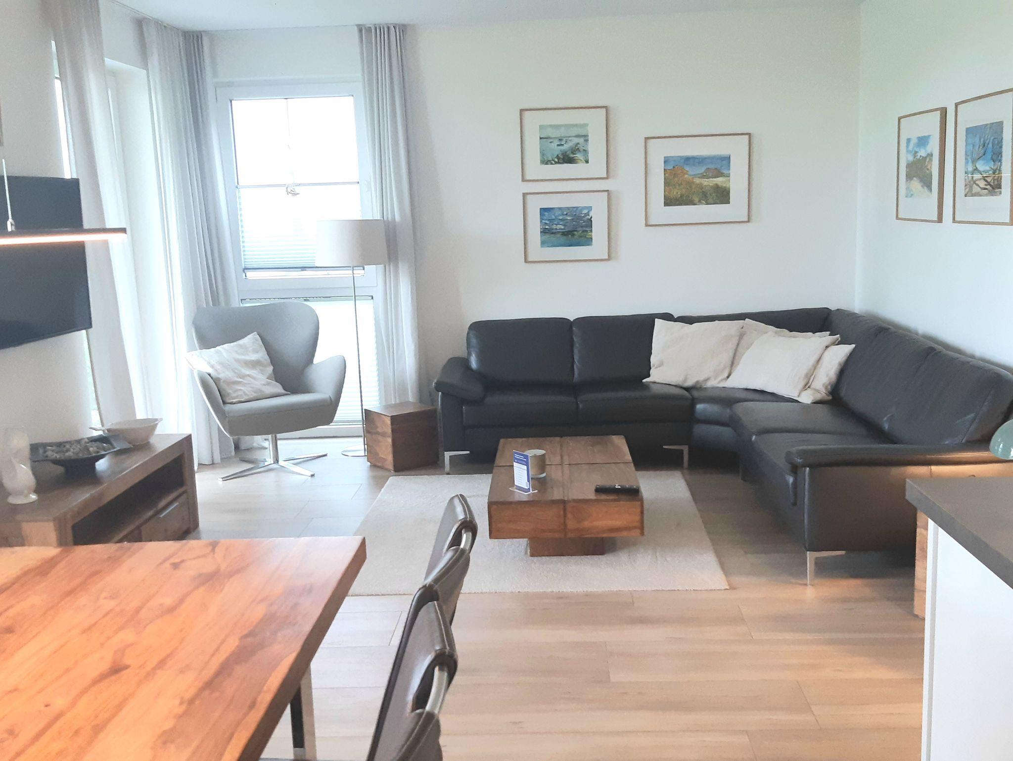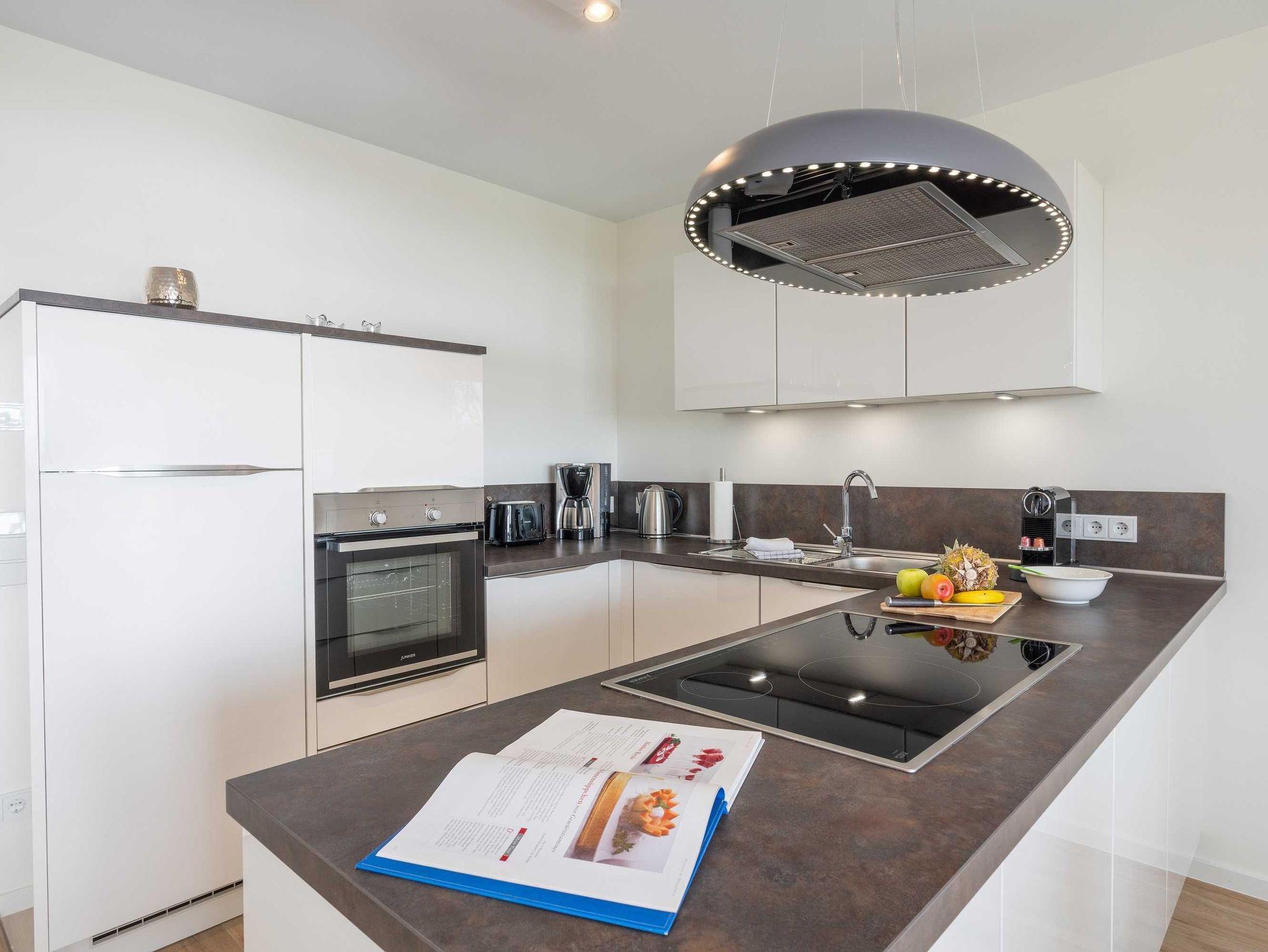 Diese luxuriöse 3-Zimmer-Wohnung im Erdgeschoss von Haus 6 mit Platz für maximal 4 Personen sowie einem Kleinkind bis 2 Jahre im Babybett verfügt über eine Wohnfläche von 101 m² und hat 2 Schlafzimmer sowie 2 voll ausgestattete Duschbäder. Die große Sonnenterrasse mit 21 m² liegt in idealer Süd-Ausrichtung. Die Wohnung ist modern eingerichtet mit offenem Wohn-Essbereich, großem Esstisch, Ledersofa sowie Smart-TV (inkl. Sky-Abo). Die hochwertig ausgestattete Küche, offen zum Wohnbereich, lässt keine Wünsche offen. Erholsamer Schlaf in den beiden Schlafzimmern mit Boxspringbetten und Smart-TV ist garantiert. Das Badezimmer en Suite ist mit einer begehbaren Dusche ausgestattet. Auf der großen, überdachten Sonnenterrasse mit Essgruppe und jeweils zwei Relax-Sesseln, Fußhockern, Sonnenschirm und Sonnenliegen können Sie die Seele baumeln lassen.
