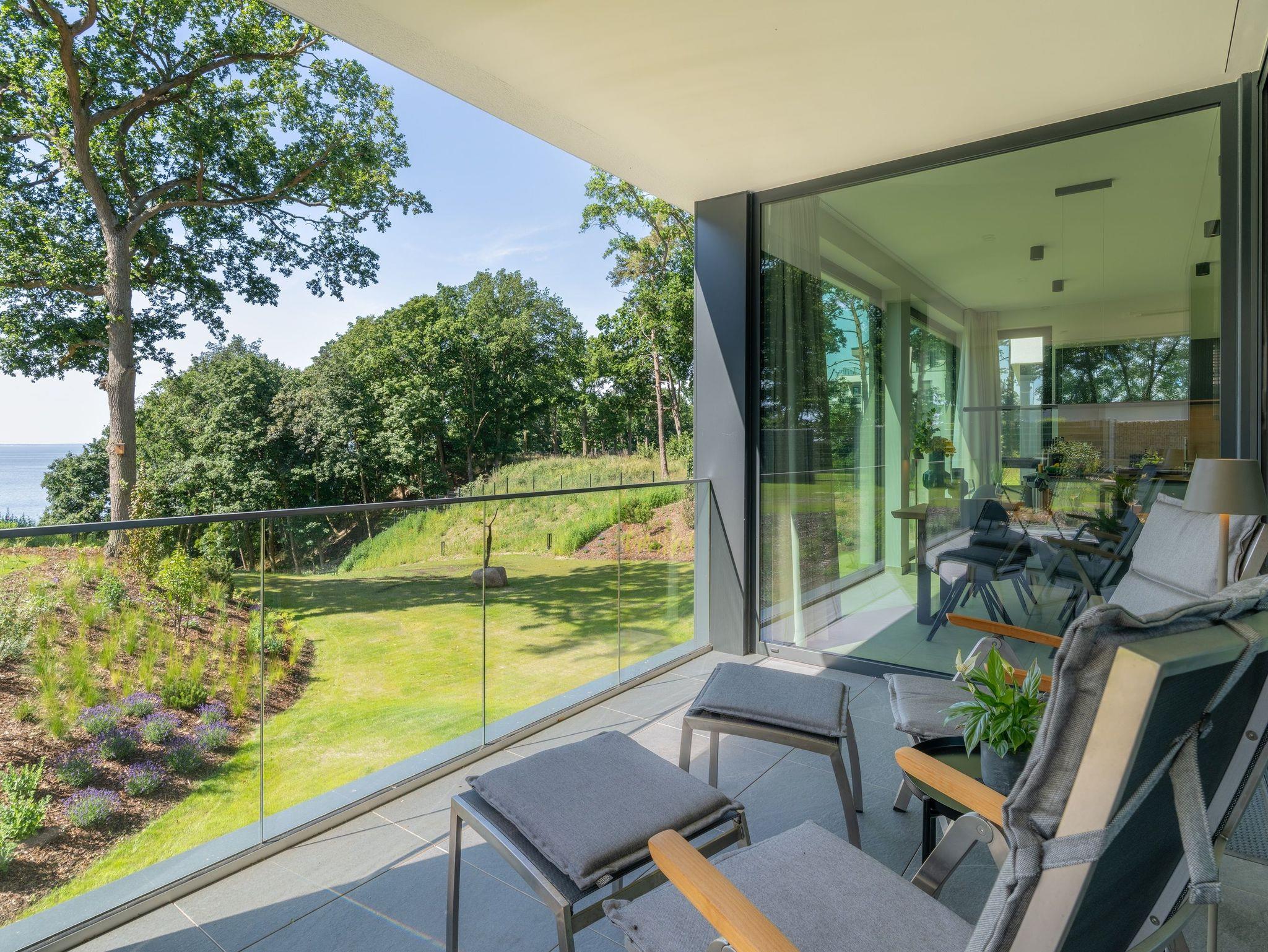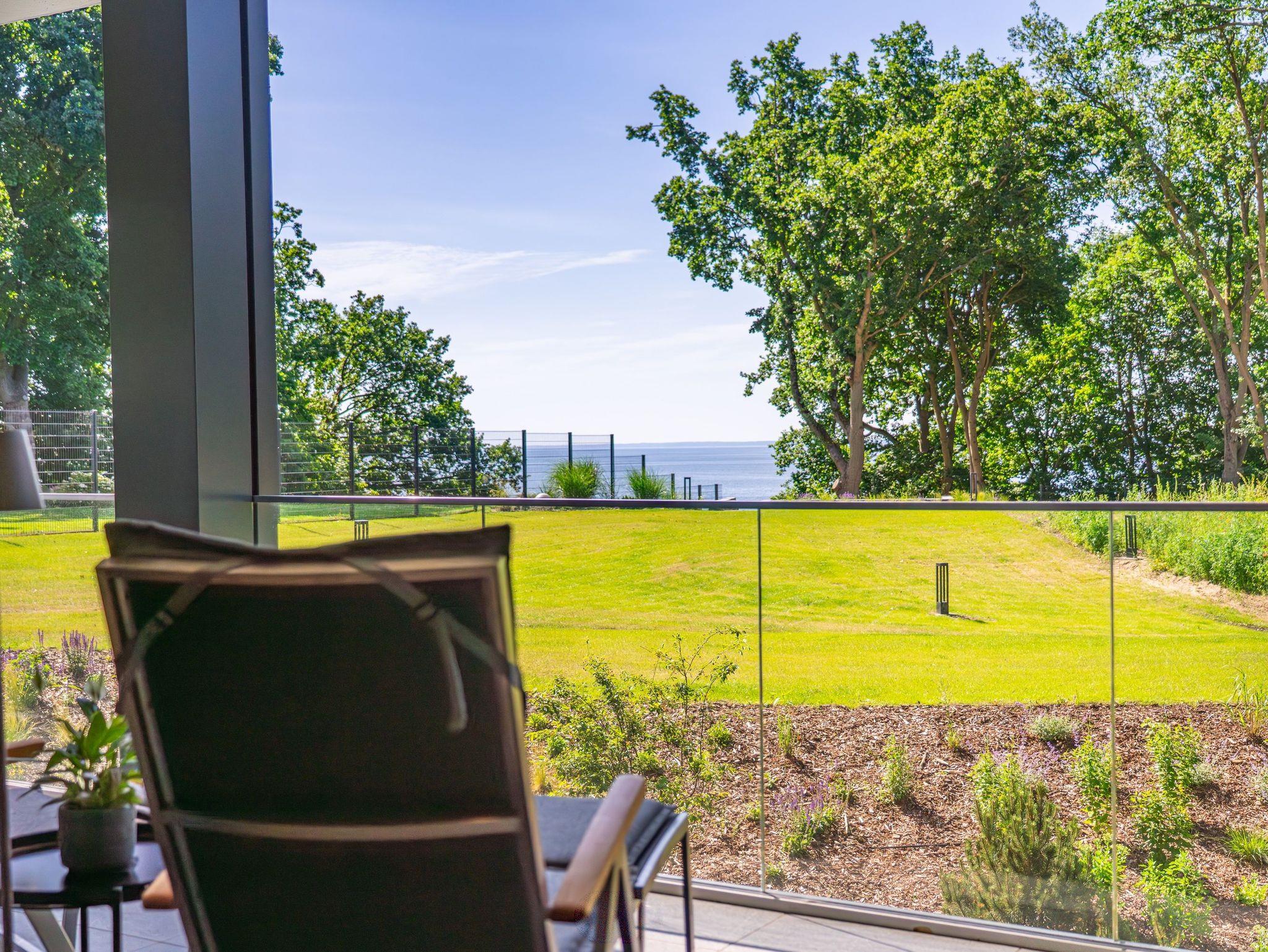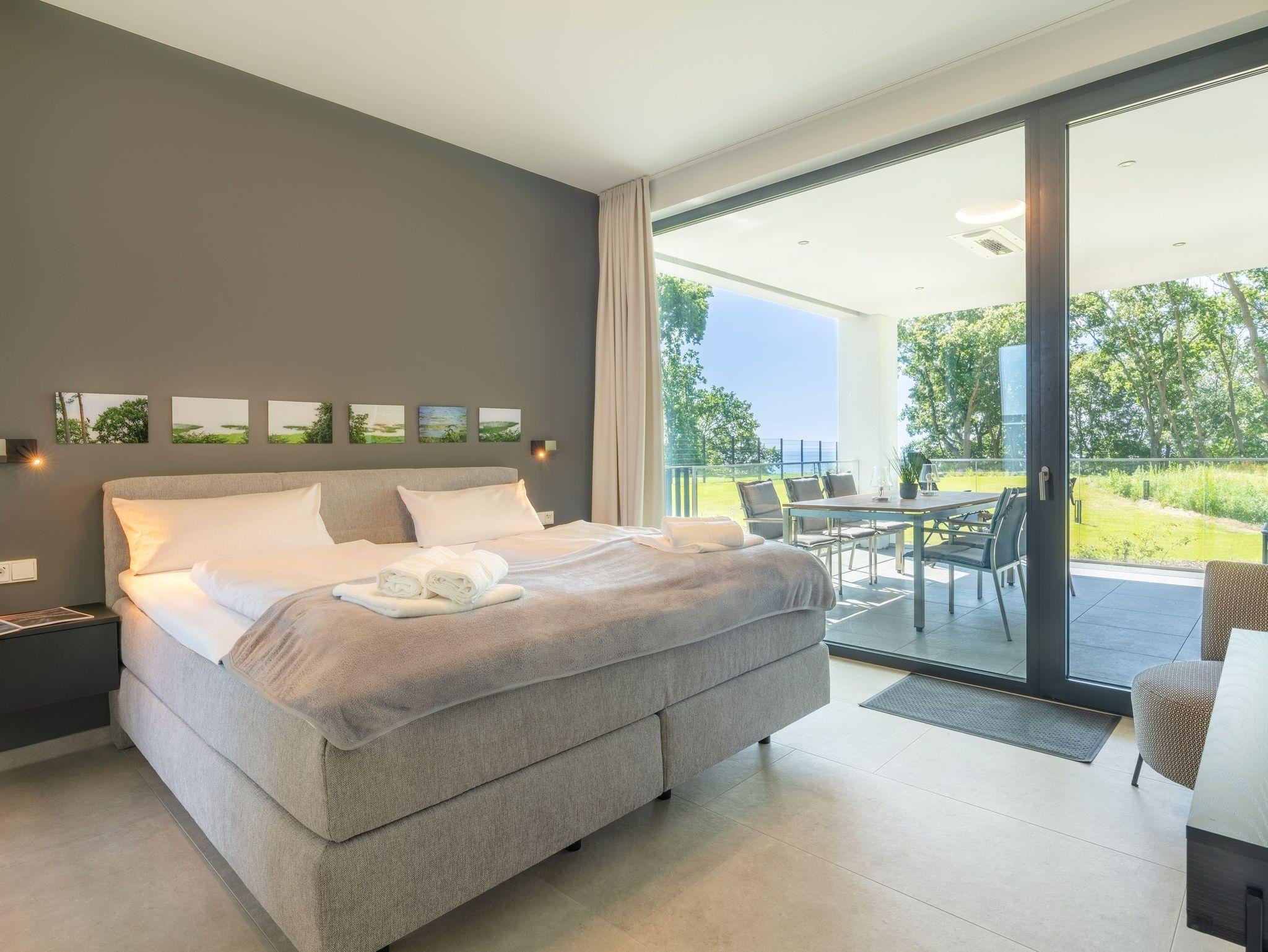 Luxus-Apartment Freya auf Usedom mit traumhaftem Haffblick, exklusiver Ausstattung und großzügiger Terrasse für erholsame Urlaubsmomente.