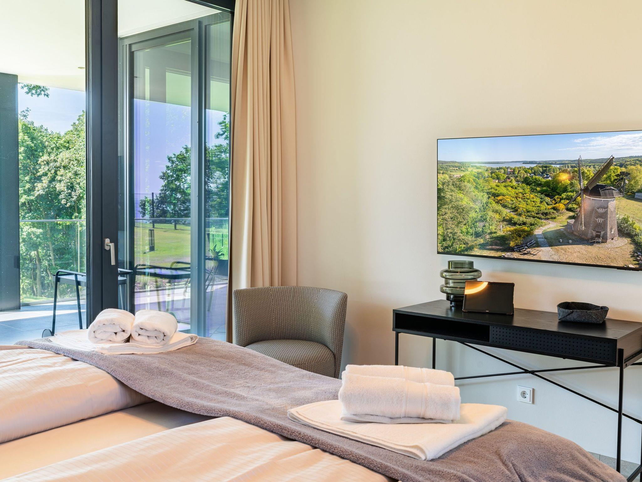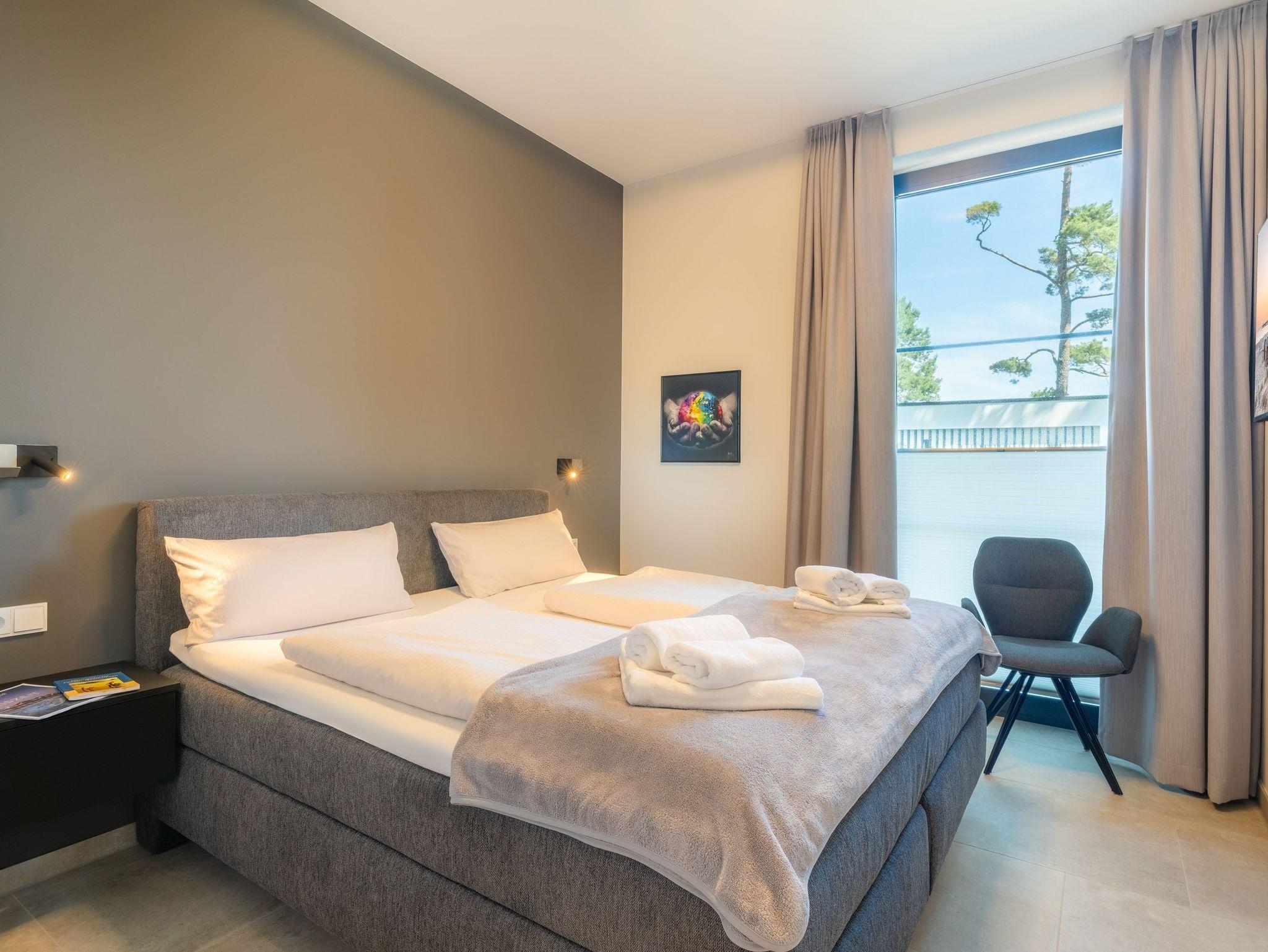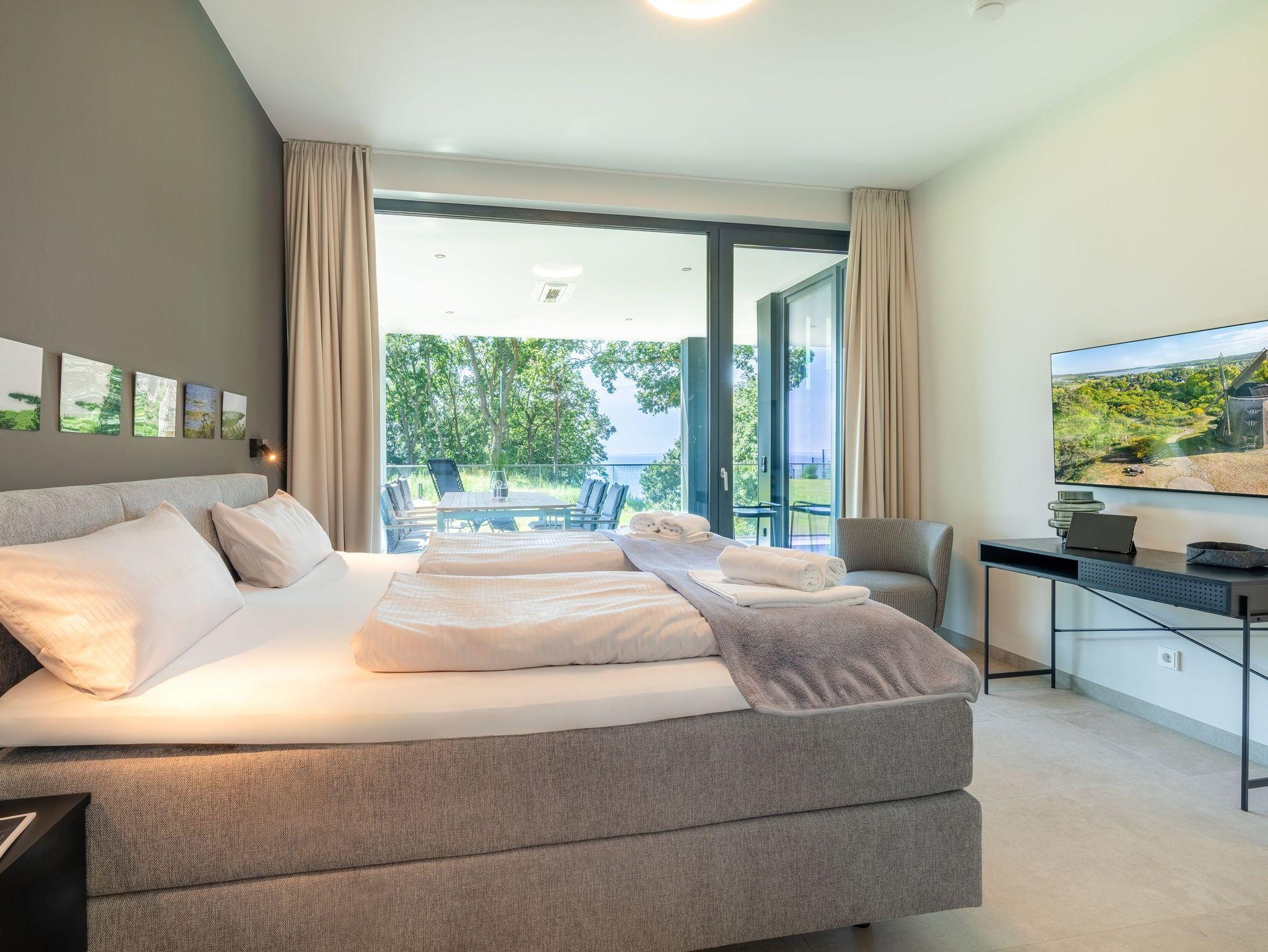 Luxus-Apartment Freya auf Usedom mit traumhaftem Haffblick, exklusiver Ausstattung und großzügiger Terrasse für erholsame Urlaubsmomente.