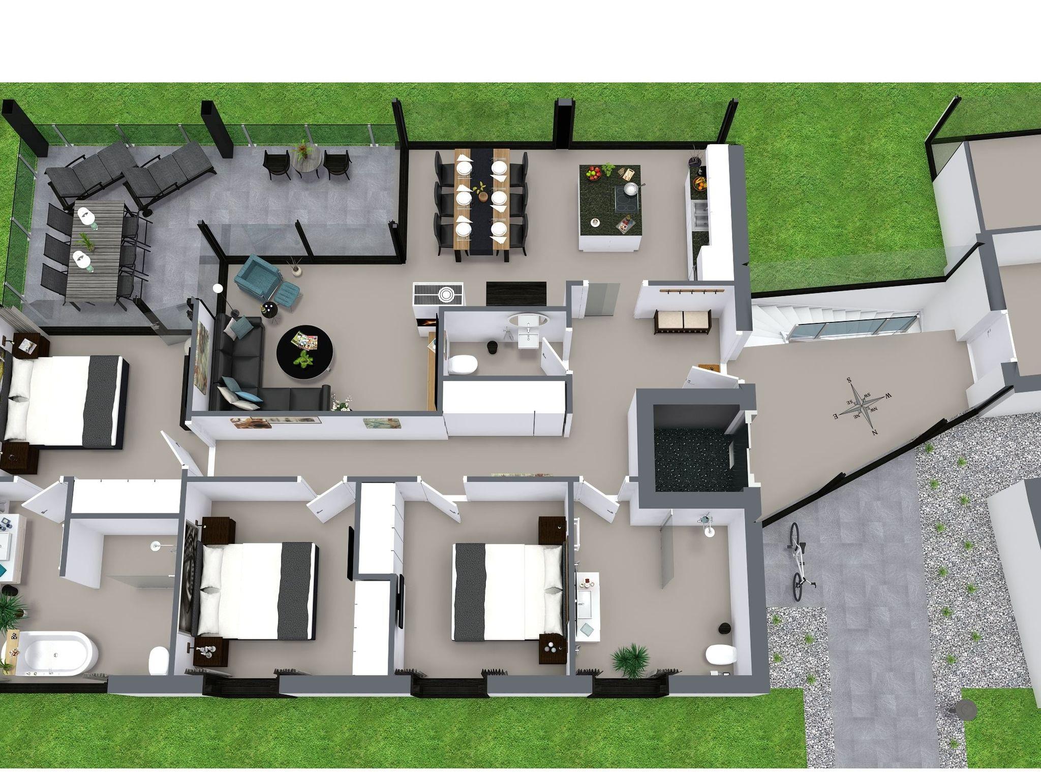 Drei stilvoll eingerichtete Schlafzimmer, zwei hochwertige Badezimmer, ein zusätzliches Gäste-WC sowie ein offener Wohn- und Essbereich mit voll ausgestatteter Design-Küche und Zugang zur großzügigen Sonnenterrasse lassen keine Wünsche offen. Für besondere Wohlfühlmomente sorgt der Gemeinschaftsbereich im Souterrain mit Sauna, Whirlpool, Bar, Fitnessraum und Kinderspielecke.