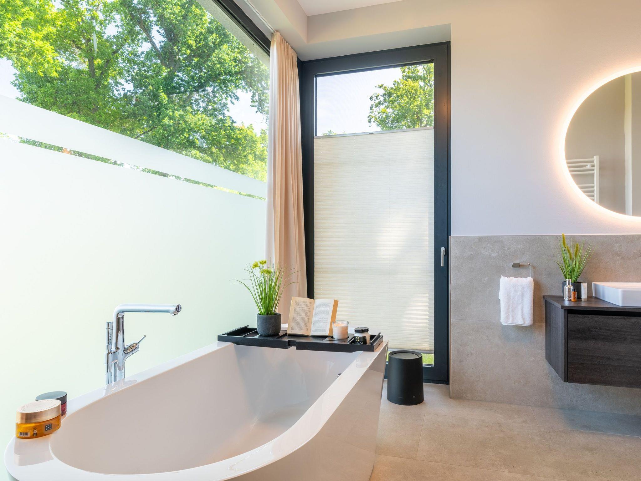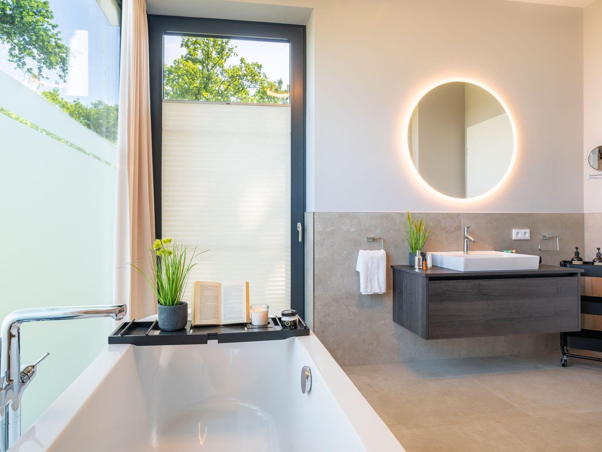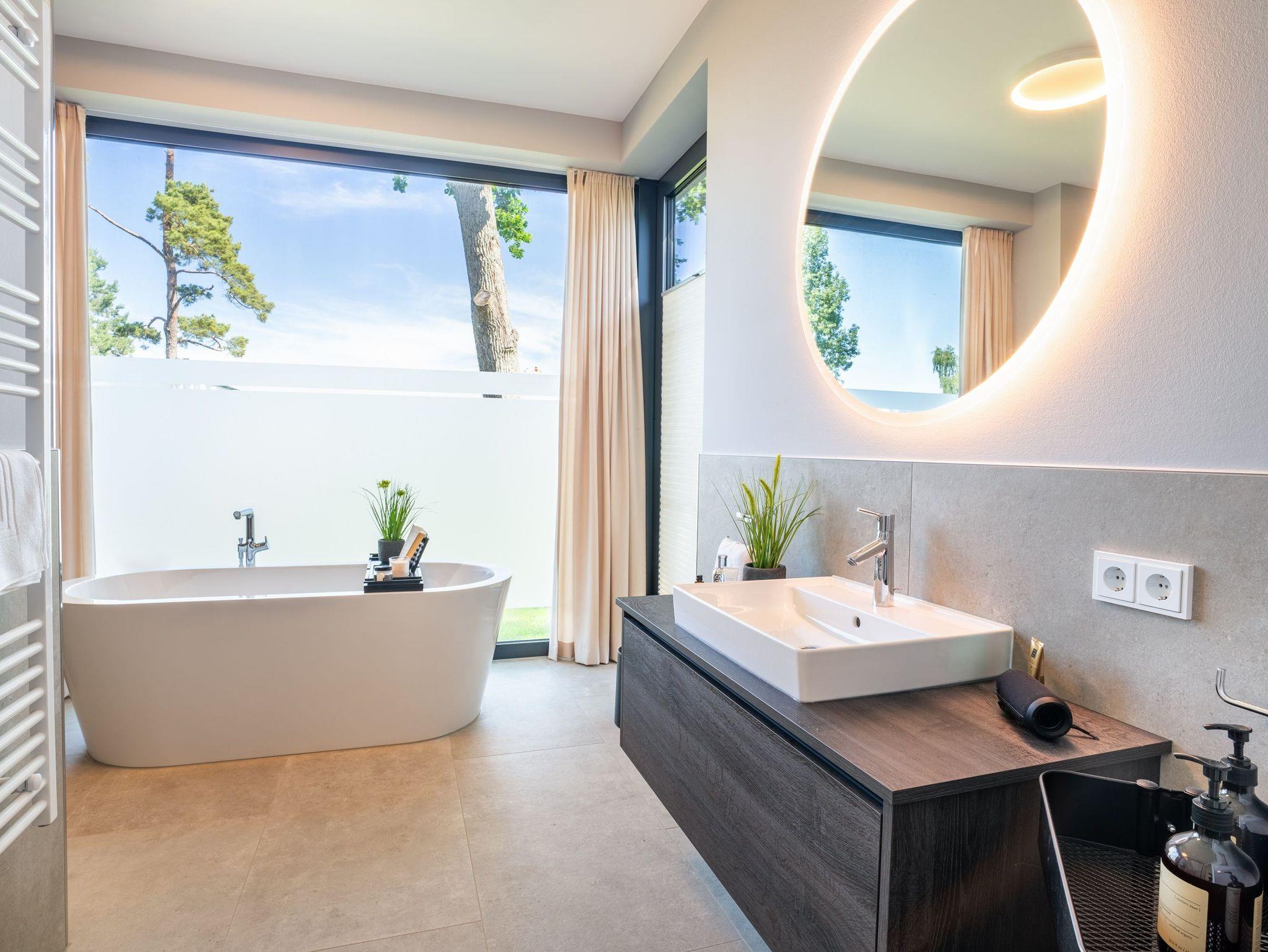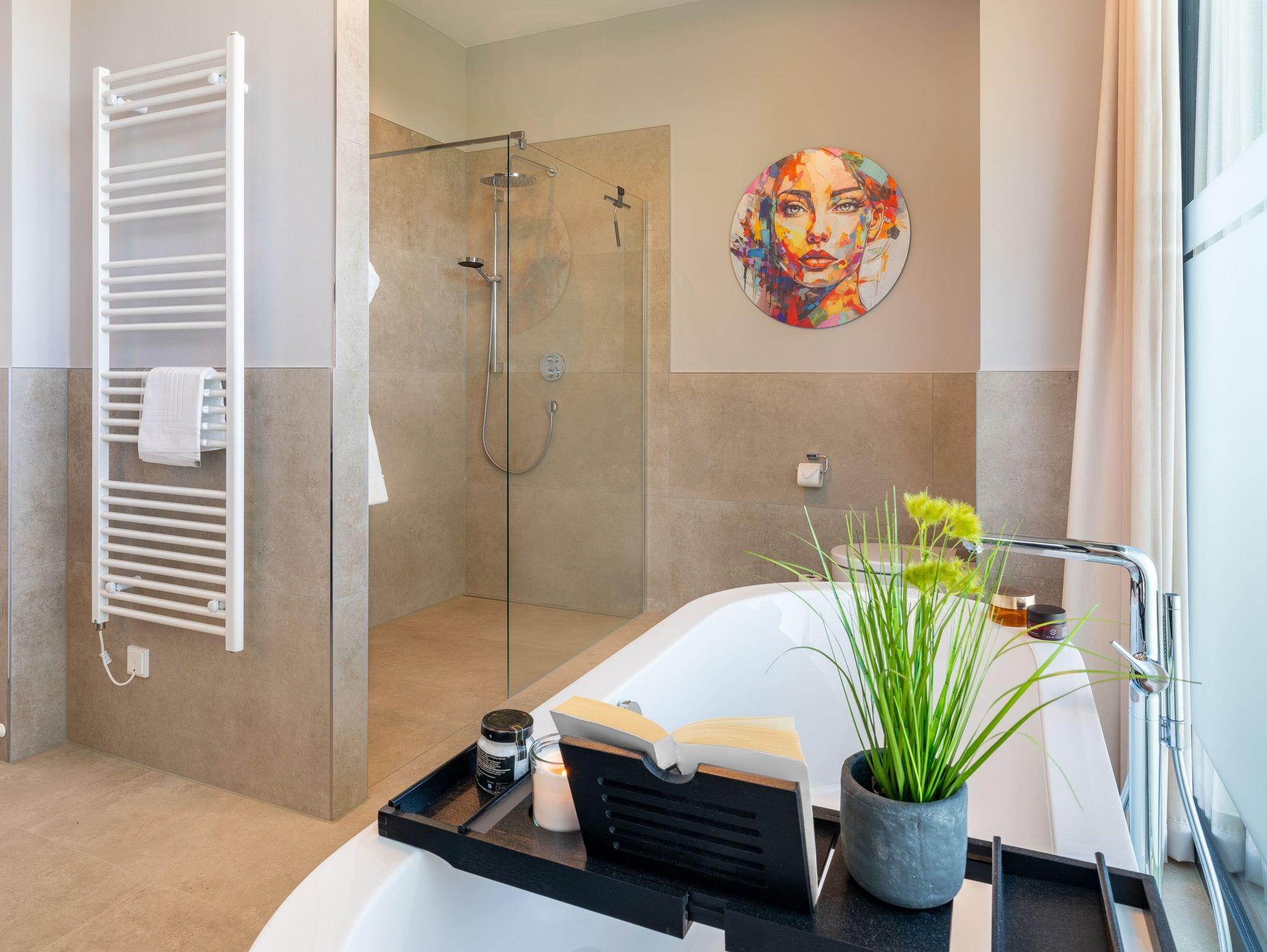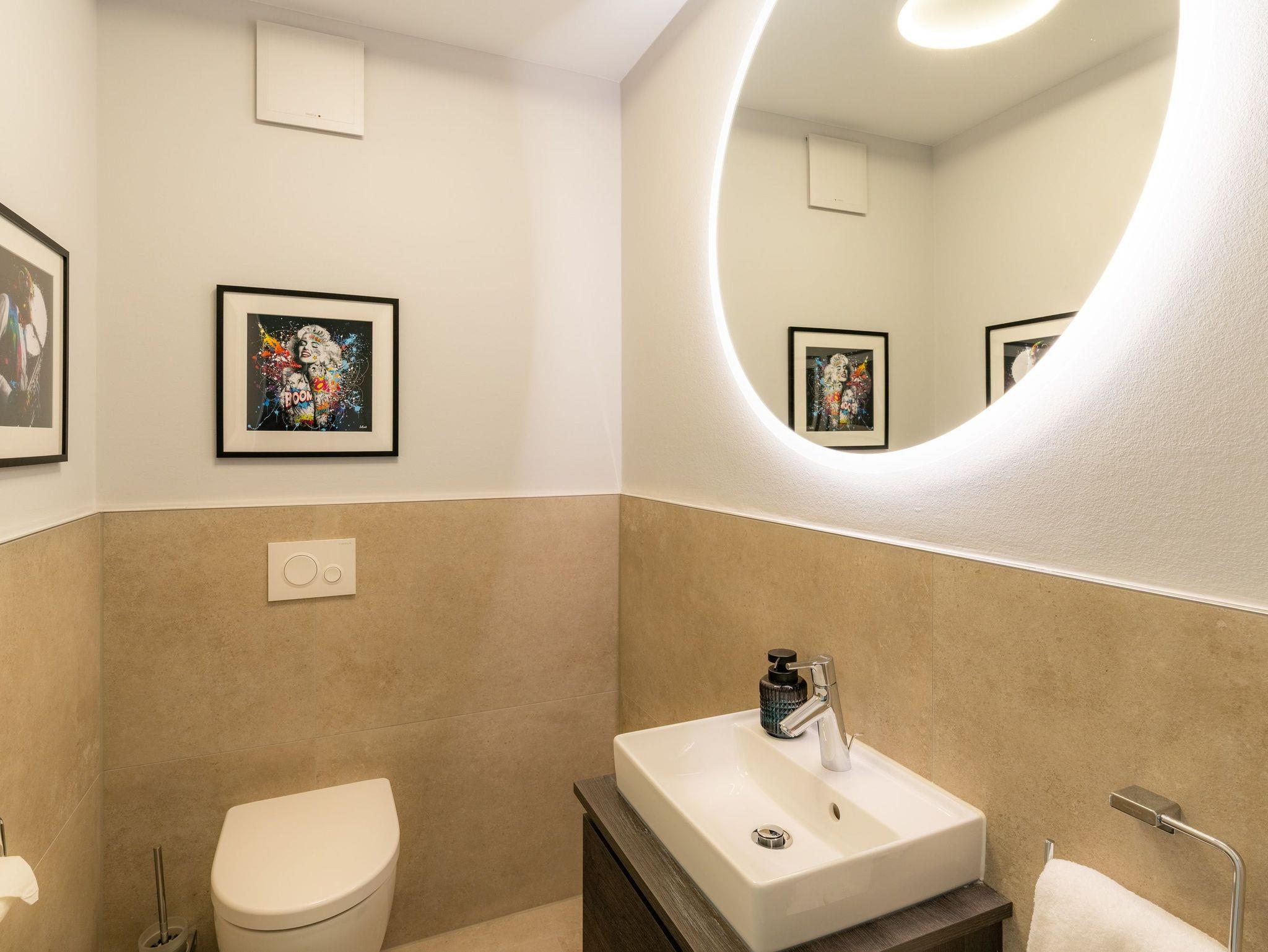 Ein zweites, ebenfalls hochwertig ausgestattetes Badezimmer mit bodengleicher Dusche steht allen Gästen zur Verfügung.