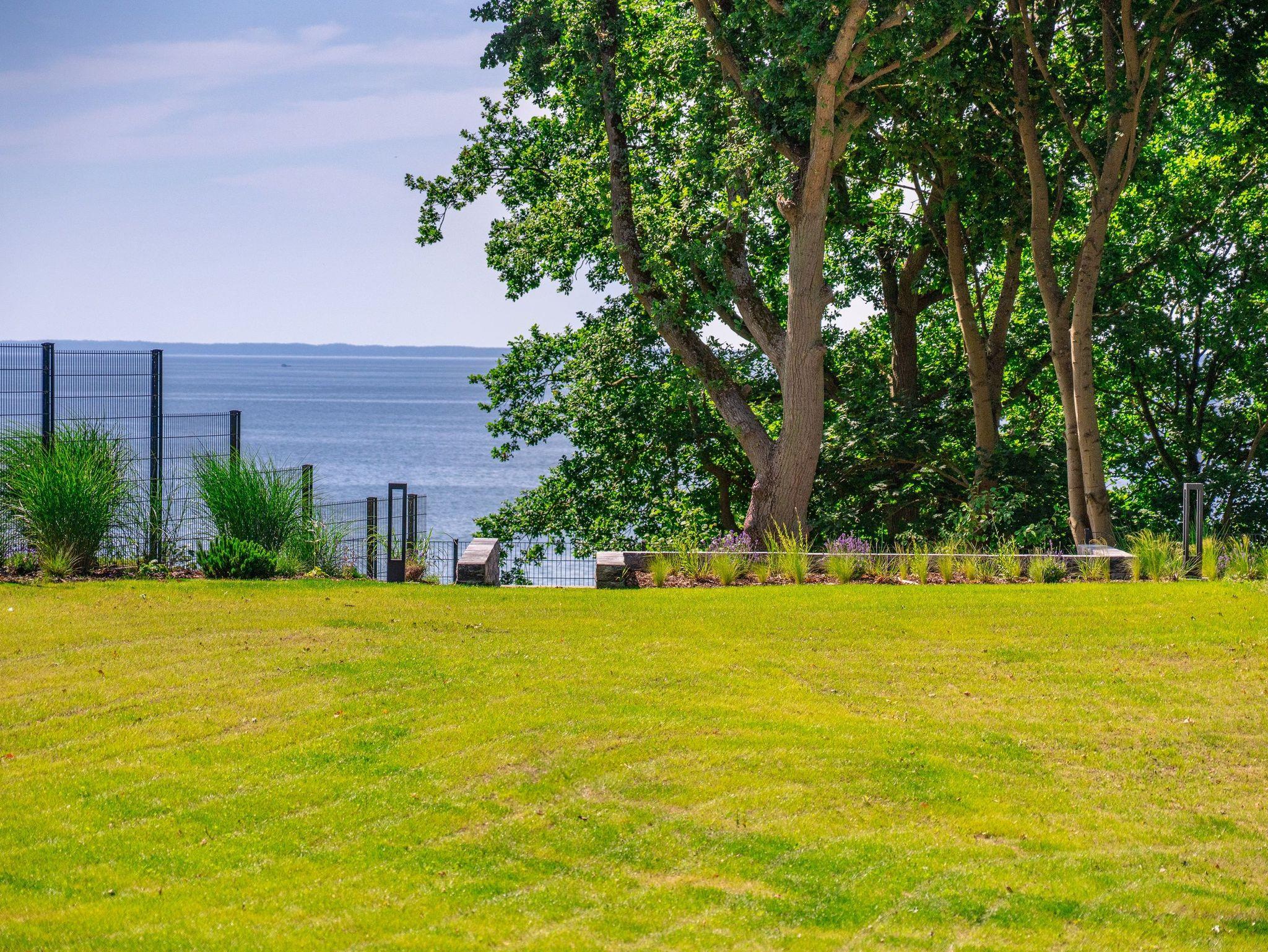 Das weitläufige Grundstück bietet ein hohes Maß an Privatsphäre und lädt mit Gartenmöbeln, Sonnenliegen, Liegewiese und einem geschützten Grillplatz mit Elektrogrill zum Verweilen ein. Eine Außendusche sorgt nach dem Strandbesuch für Erfrischung.