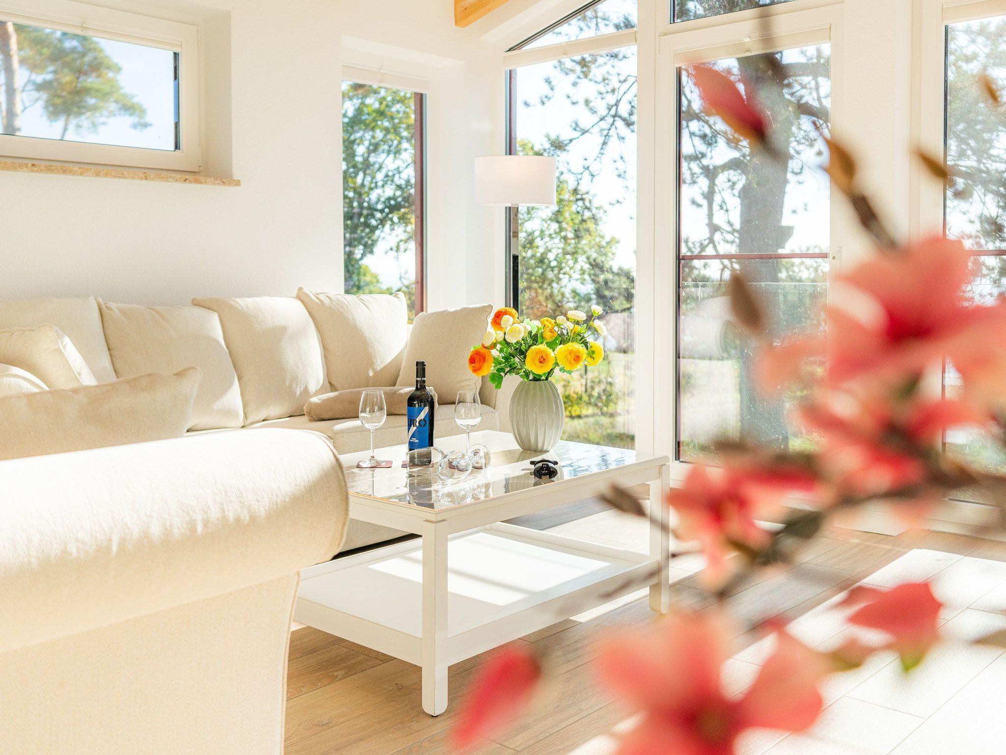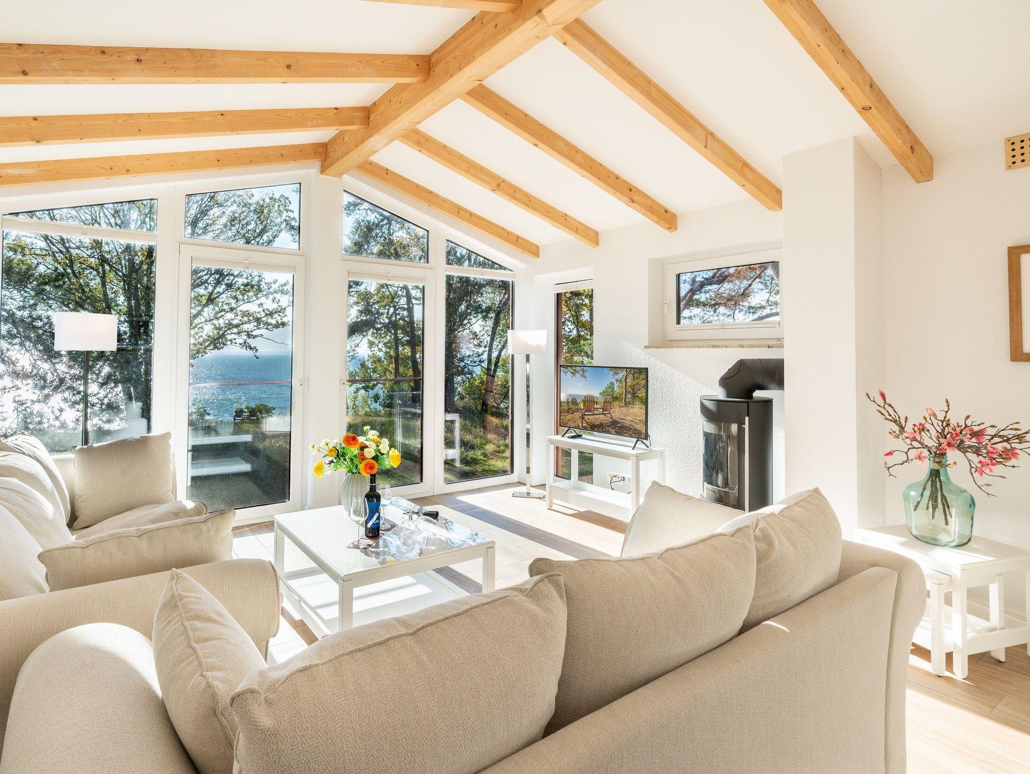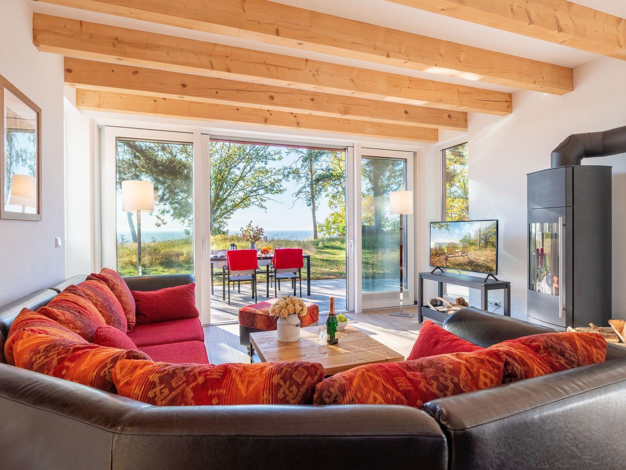 Betreten Sie dieses mit 5 Sternen (DTV) ausgezeichnete Feriendomizil und lassen Sie es auf sich wirken. Warme Sonnenstrahlen fluten durch die nach Süden ausgerichtete Glasfront mit bodentiefen Fenstern und tauchen das komfortabel eingerichtete Wohnzimmer in ein helles Licht. Ganz im Sinne von Baumeister Biber besteht das Gebäude vor allem aus Holz.